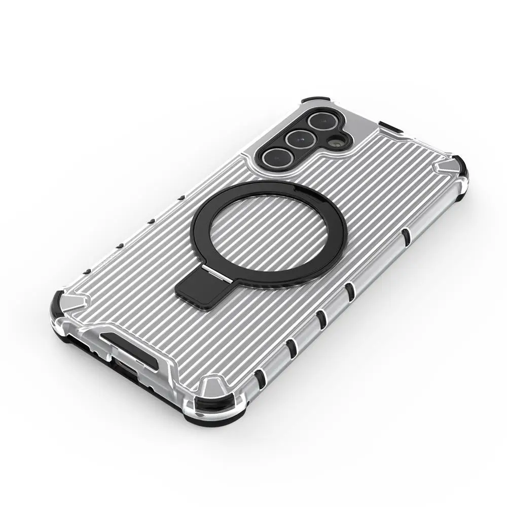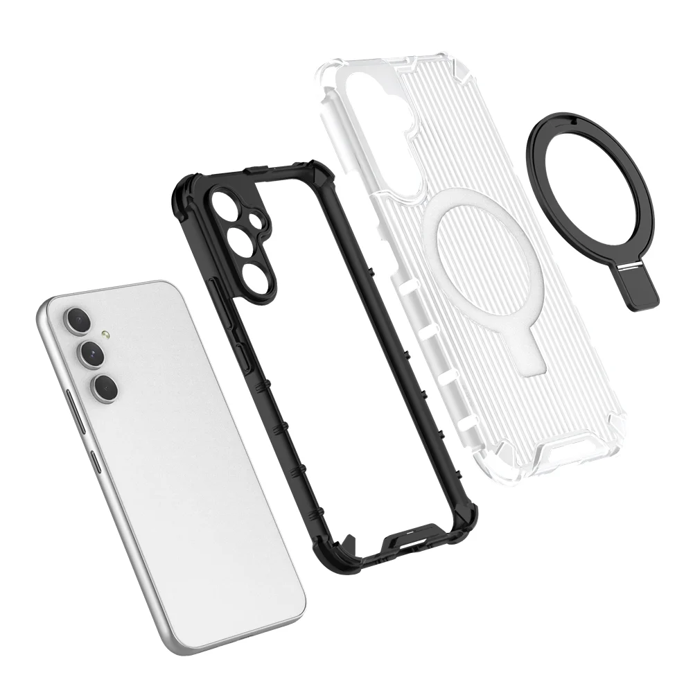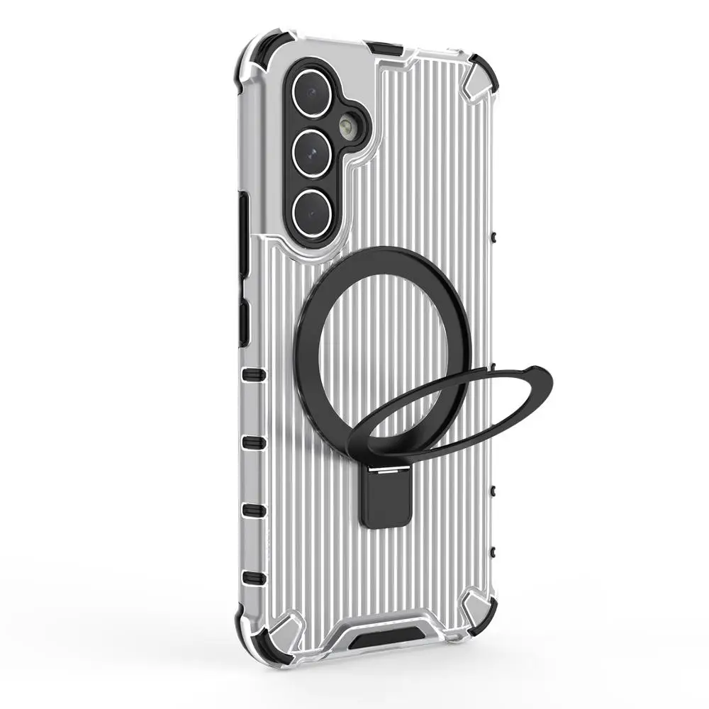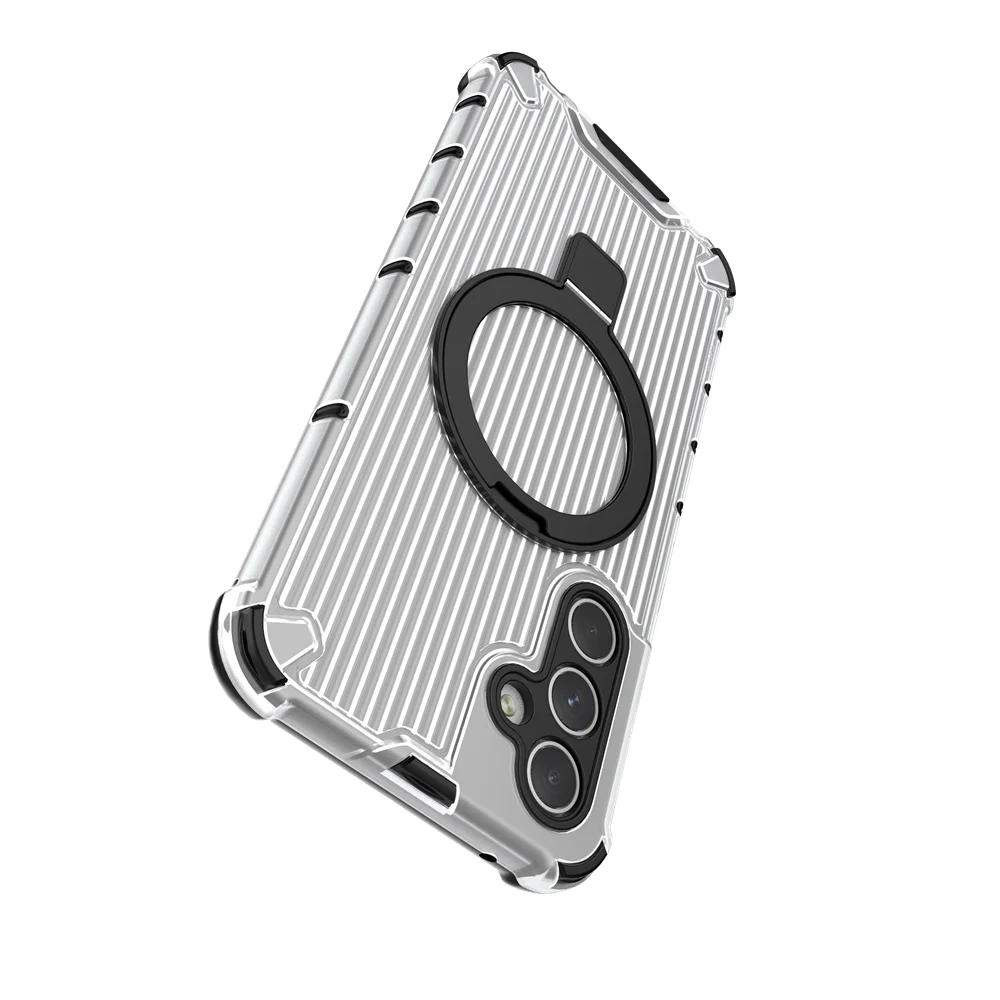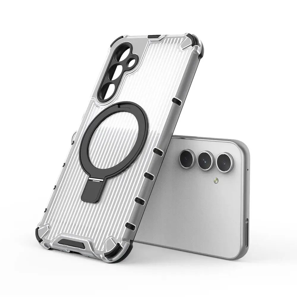 Comprar Funda de teléfono transparente con soporte de Metal magnético corrugado para Magsafe Samsung Galaxy A15 A14 A13 A34 A54 A35 A55 A25 cubierta completa
