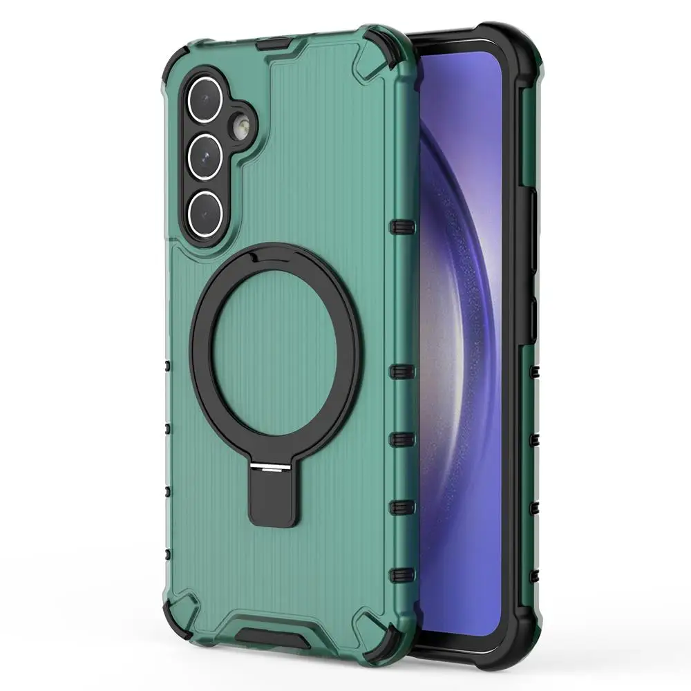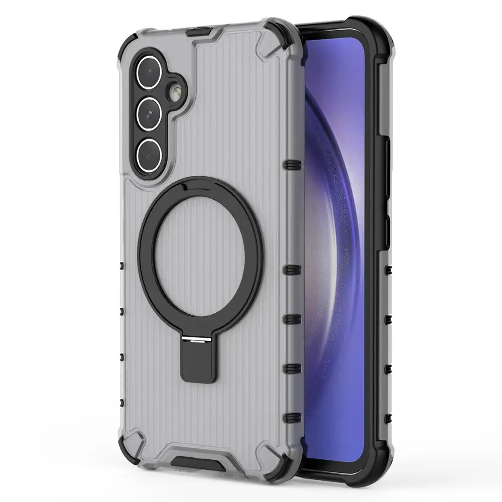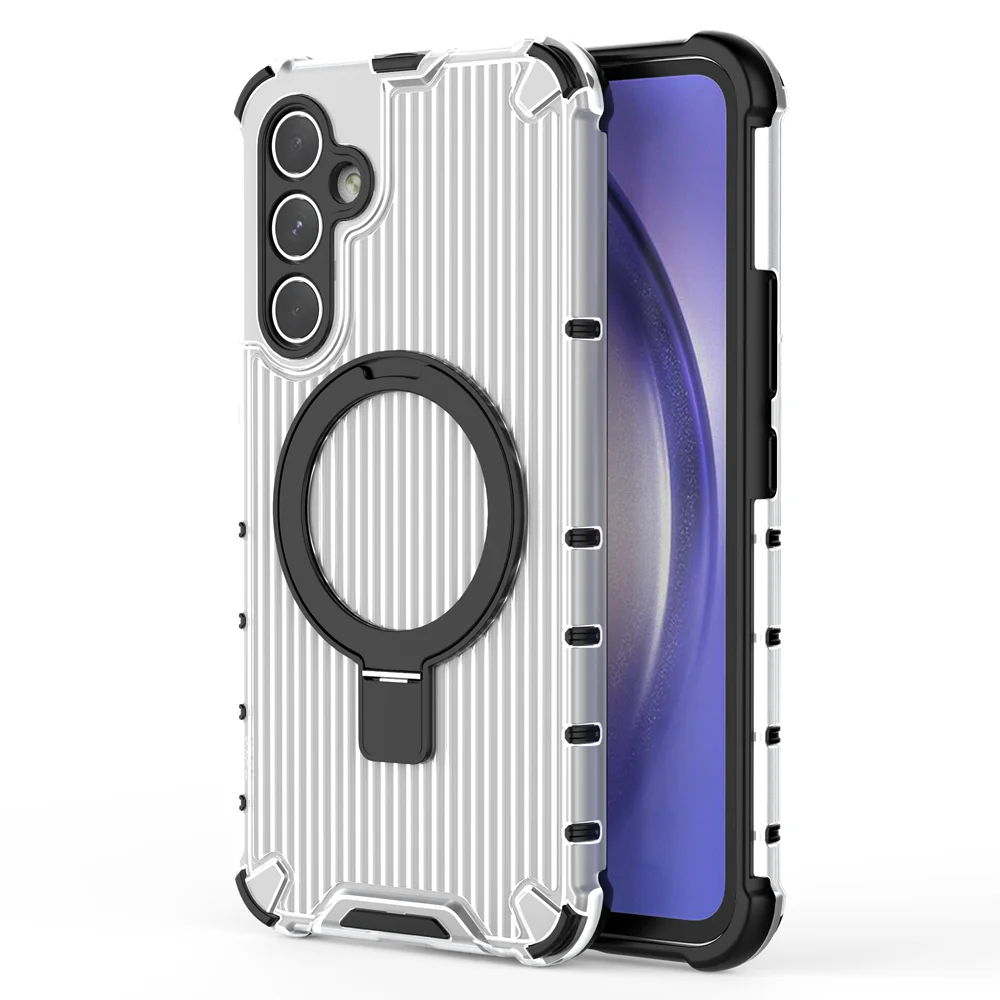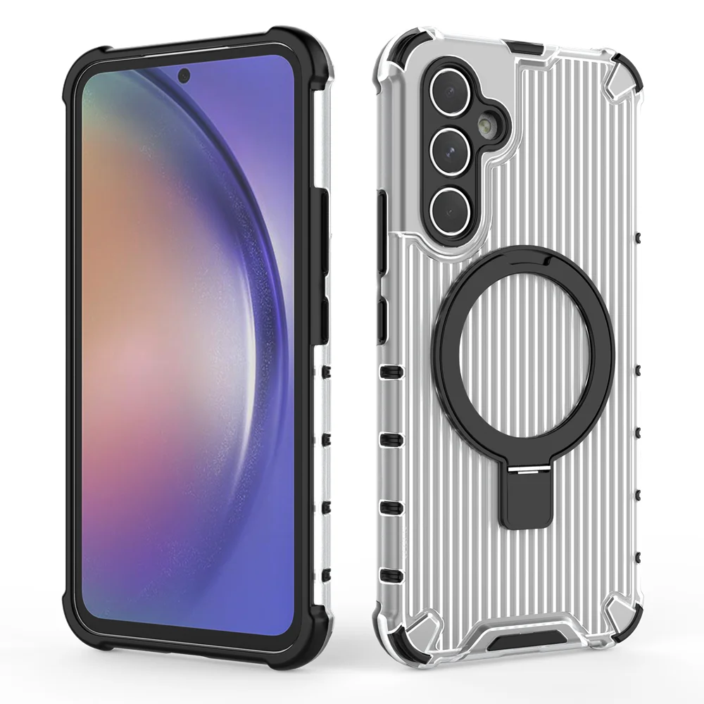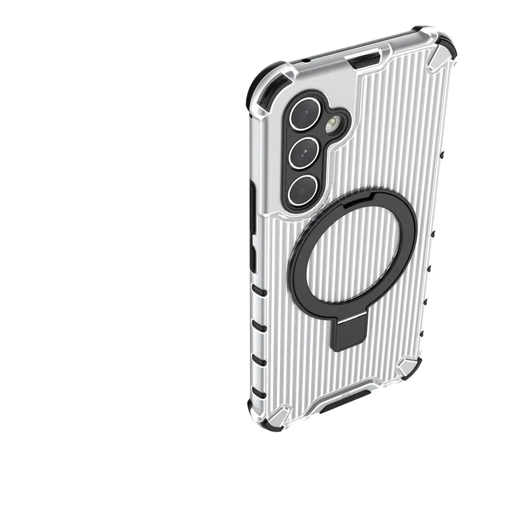 Comprar Funda de teléfono transparente con soporte de Metal magnético corrugado para Magsafe Samsung Galaxy A15 A14 A13 A34 A54 A35 A55 A25 cubierta completa