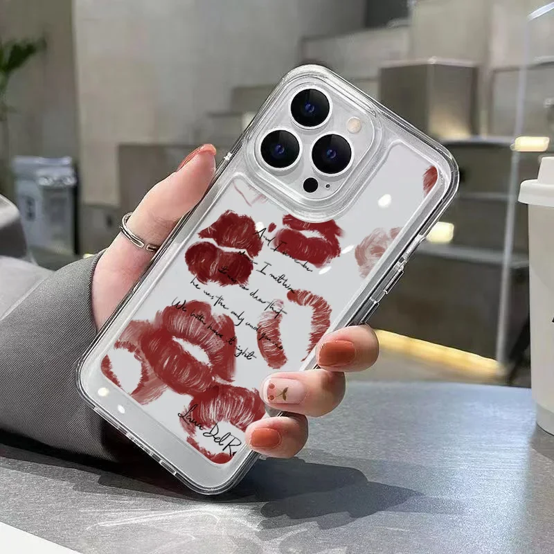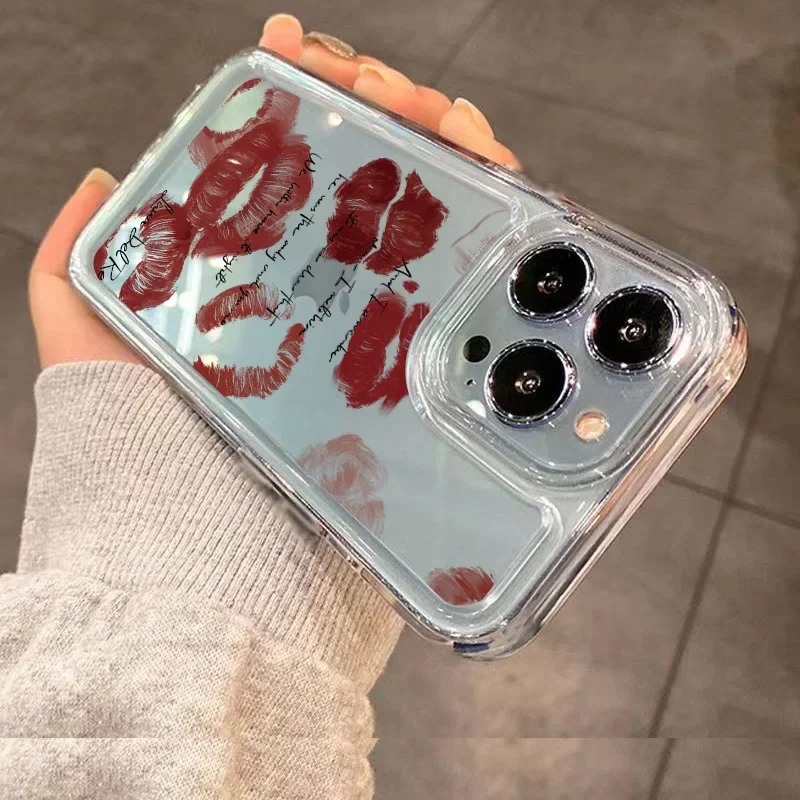 Funda de teléfono transparente suave a prueba de golpes de lujo para iPhone 16 15 14 Pro Max 13 12 11 XS X XR 7 8 Plus SE 3 2022 cubierta de labios rojos de chica Sexy