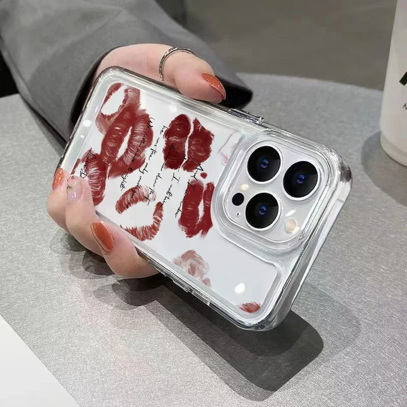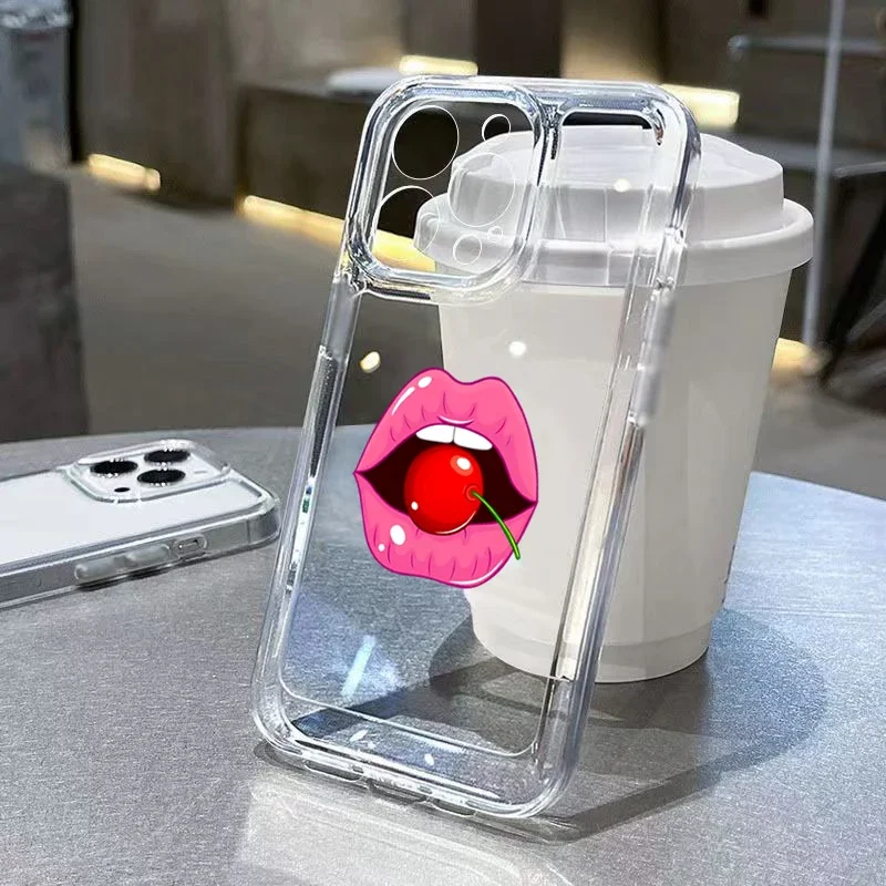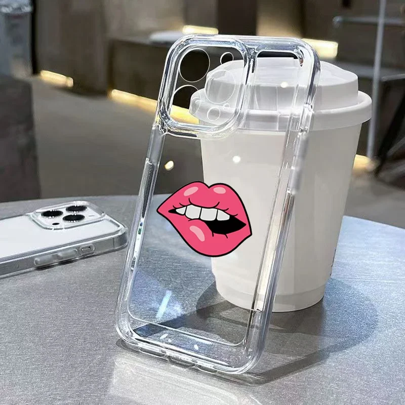 Comprar Funda de teléfono transparente suave a prueba de golpes de lujo para iPhone 16 15 14 Pro Max 13 12 11 XS X XR 7 8 Plus SE 3 2022 cubierta de labios rojos de chica Sexy
