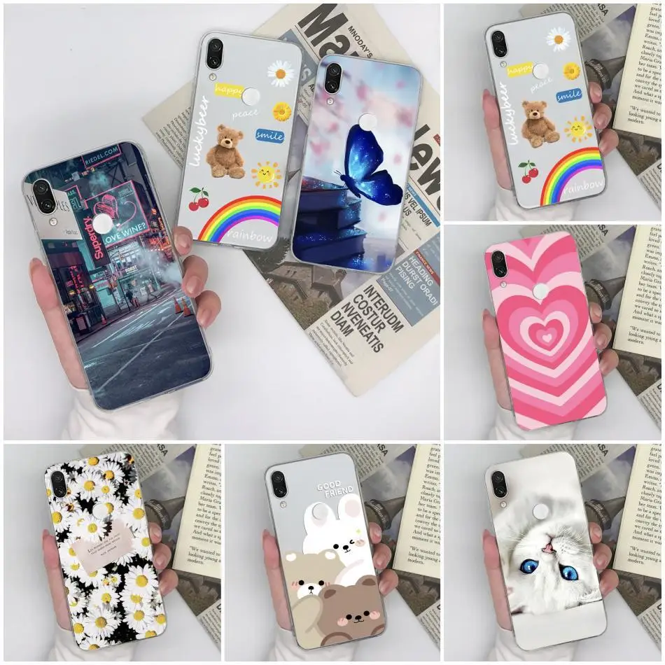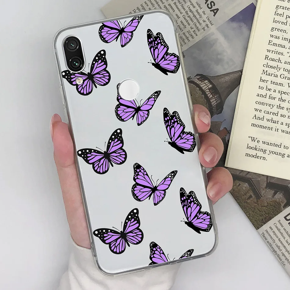 Comprar Funda de teléfono transparente para Xiaomi Redmi note 7 7Pro 7S, carcasa de TPU de silicona suave con patrón de dibujos animados de mariposa bonita, nueva moda