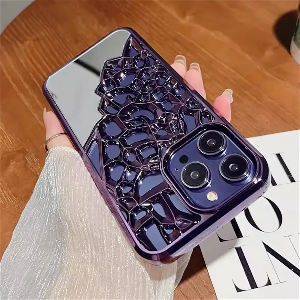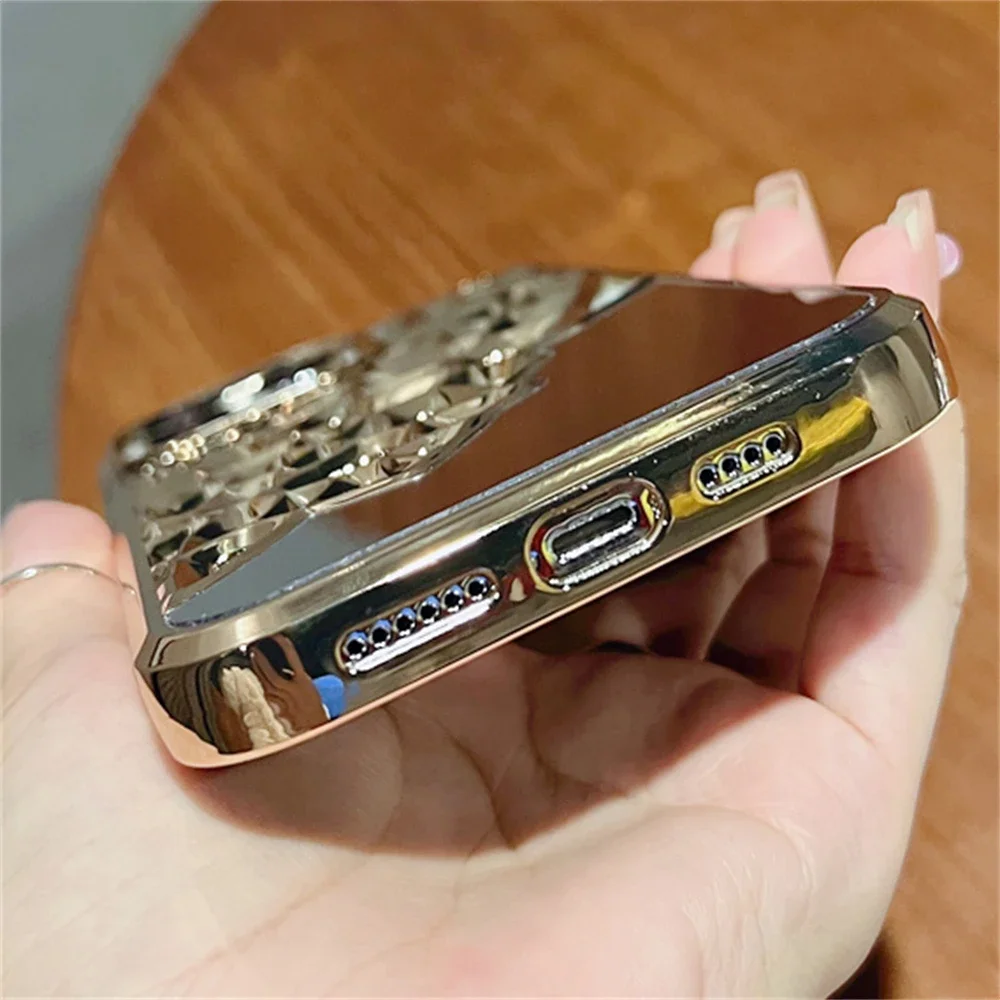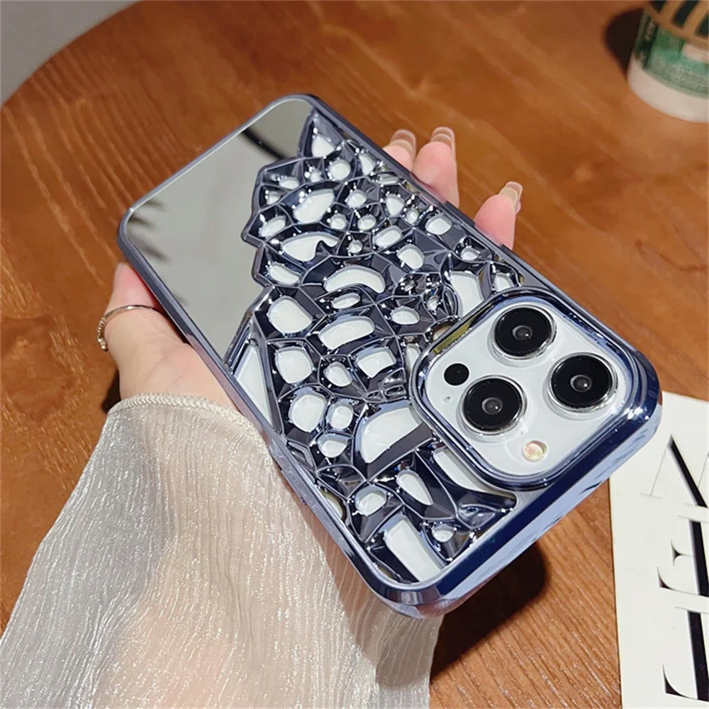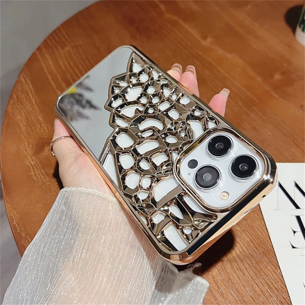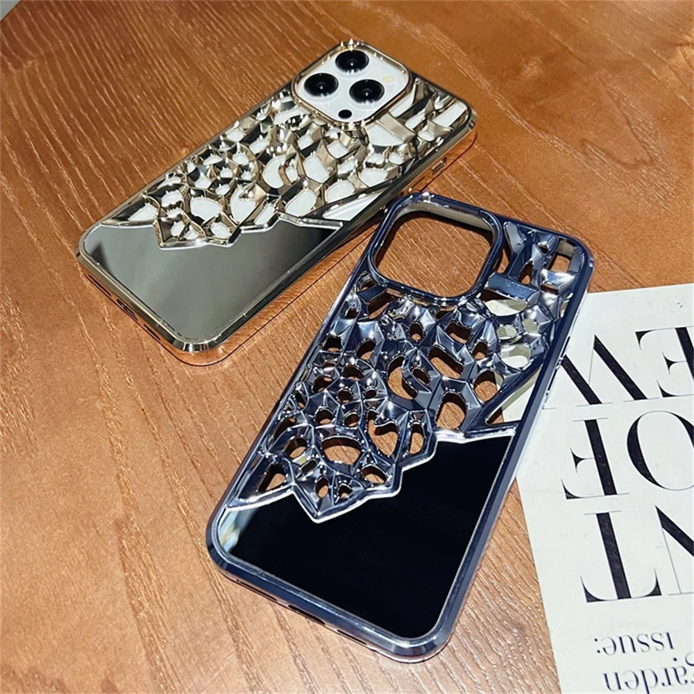 Funda de teléfono transpirable con espejo calado chapado de lujo para iphone 14, 15, 13, 12 Pro Max 13, 14, 11, cubierta trasera dura transparente a prueba de golpes