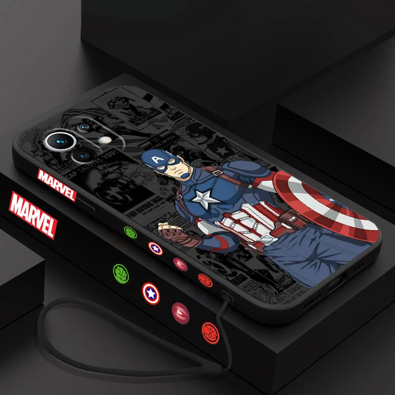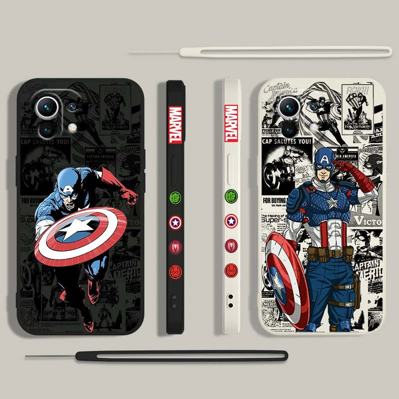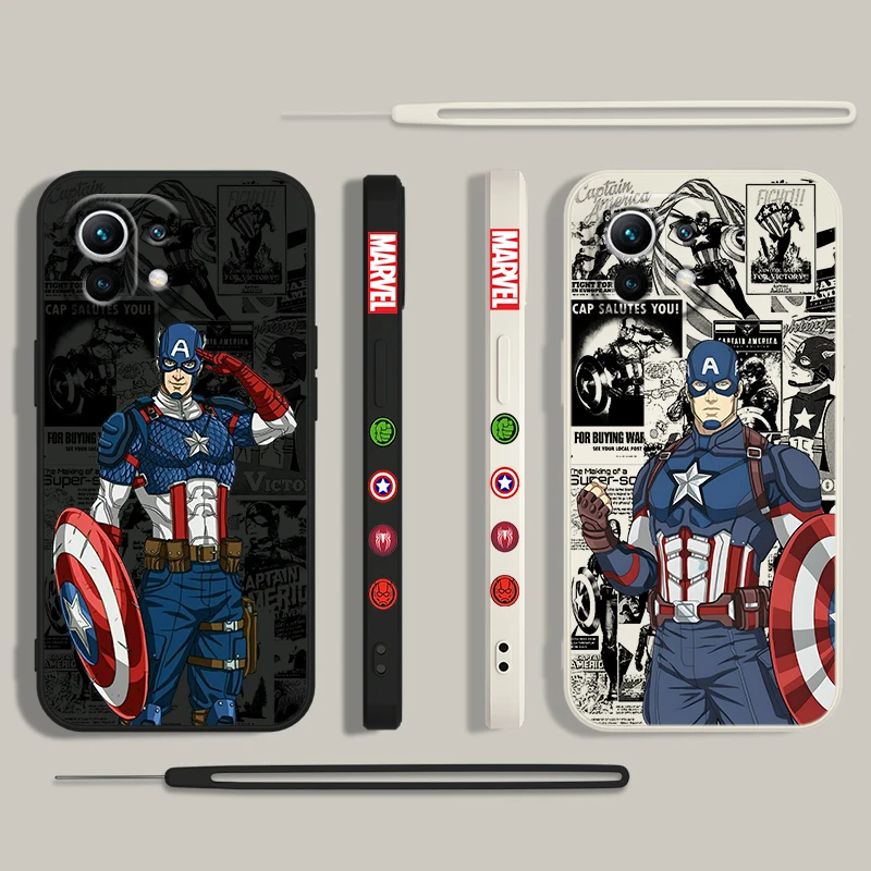 Funda de teléfono de los Vengadores Capitán América para Xiaomi, 14, 13, 12, 11, 10 T Pro, Ultra Lite, 5G, cuerda líquida izquierda, 5G, cubierta suave