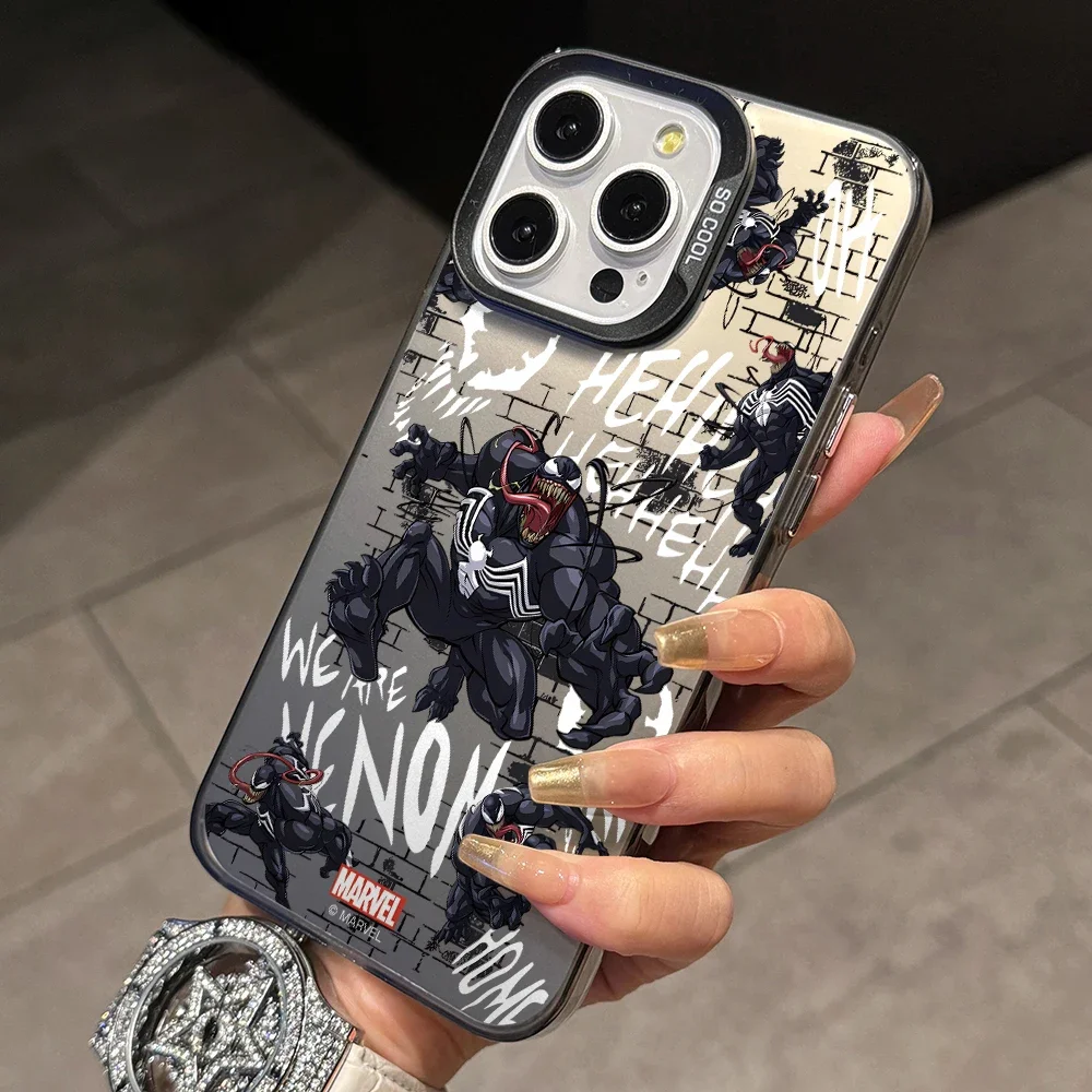 Comprar Funda de teléfono Venom Spider-Man para iPhone 16 15 14 Plus 13 12 11 Pro Max X Xs XR 8 7 cubierta dura plateada colorida mate