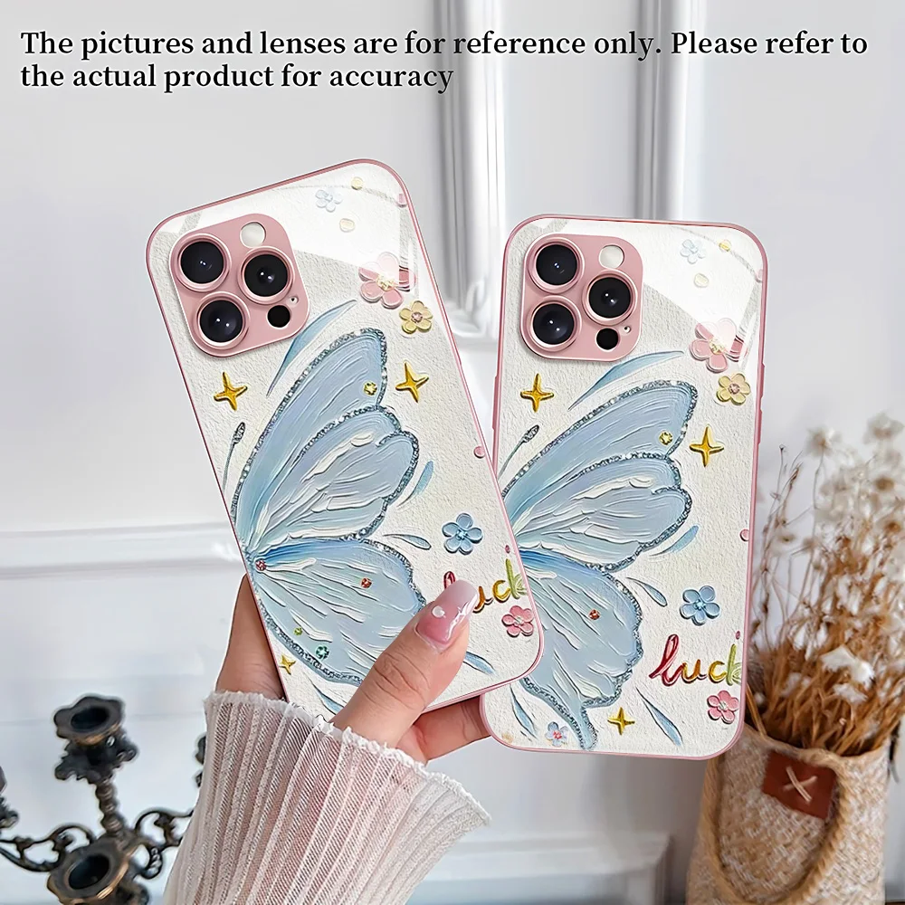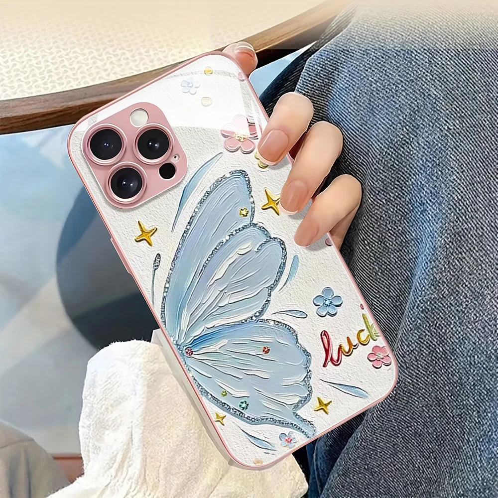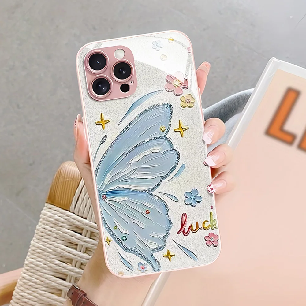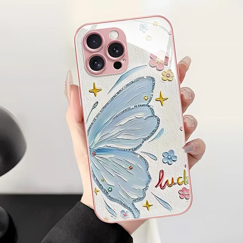 Tempered Glass Phone Case For iPhone 17 13 11 16 14 15 Pro Max 12 17 Air 16E XR X Xs 7 8 Plus Shockproof Butterfly Cover Funda