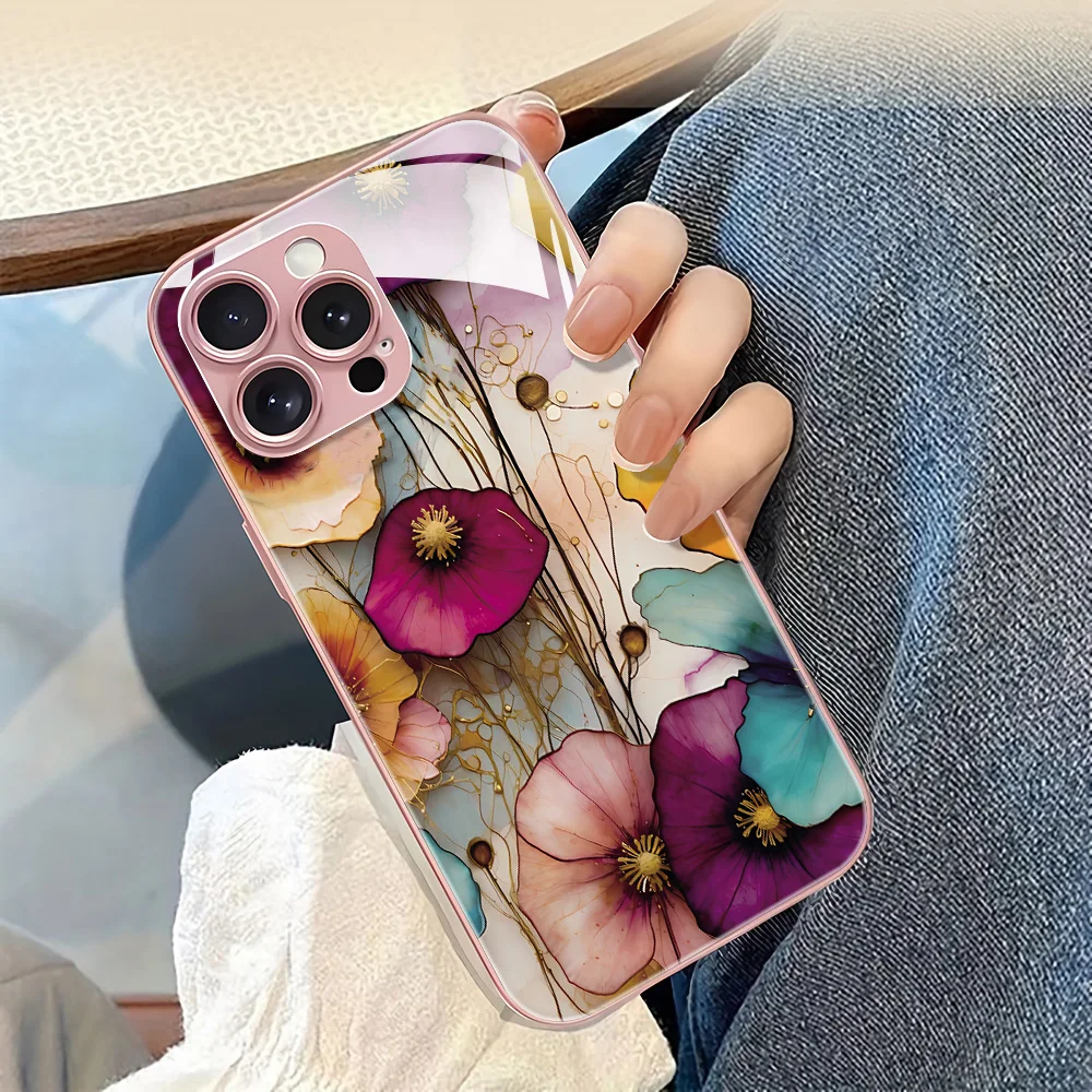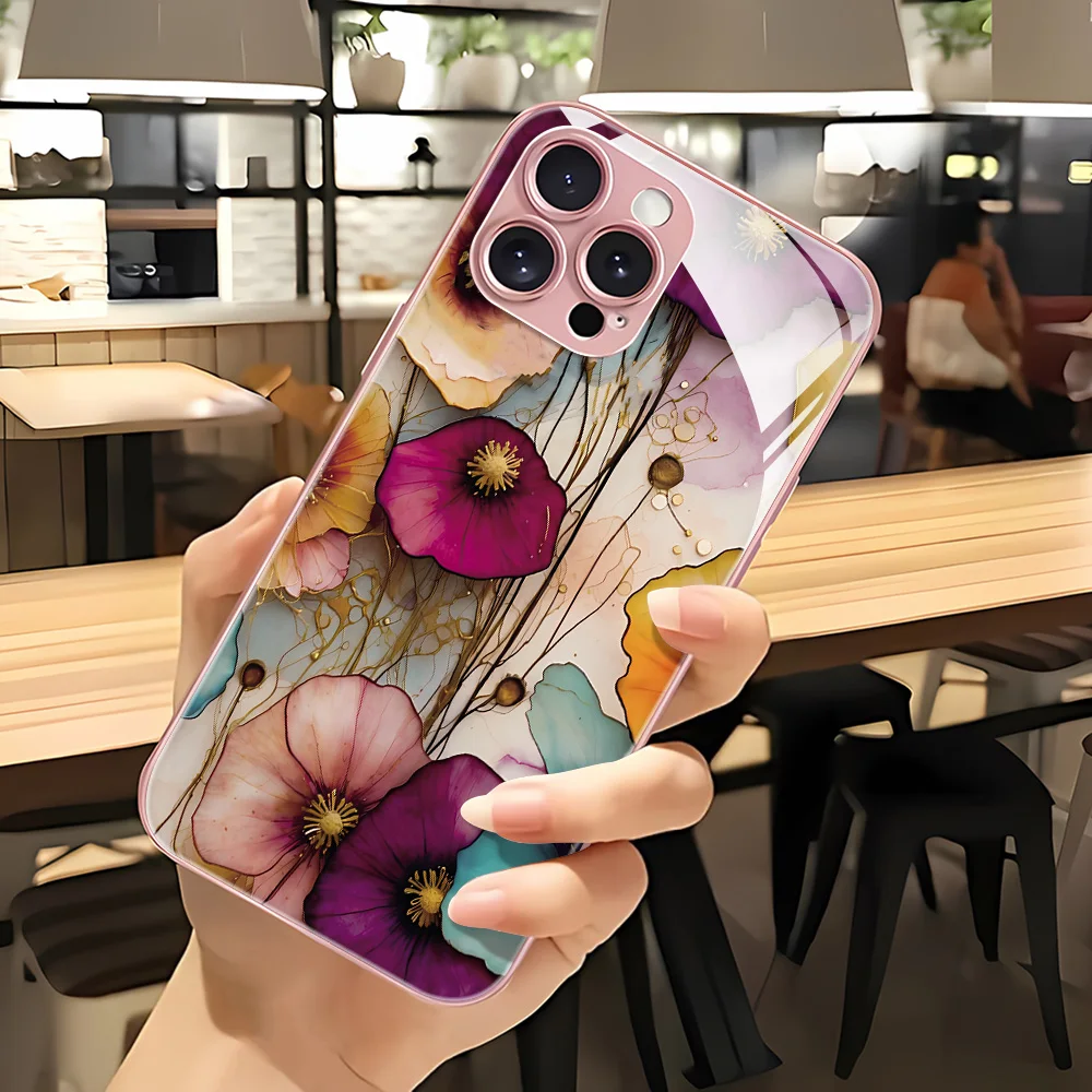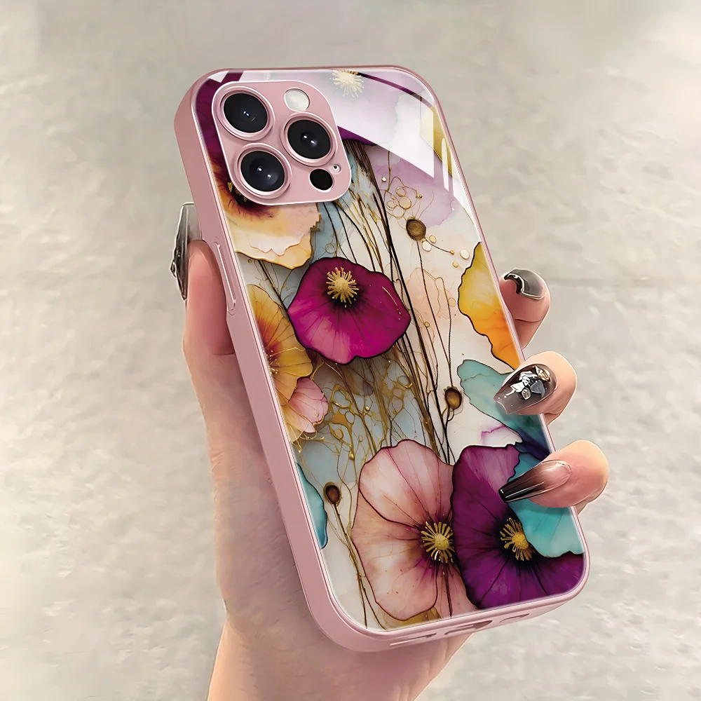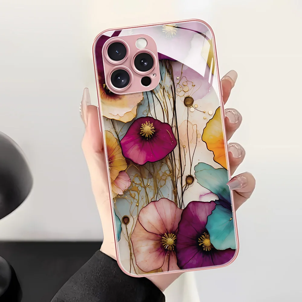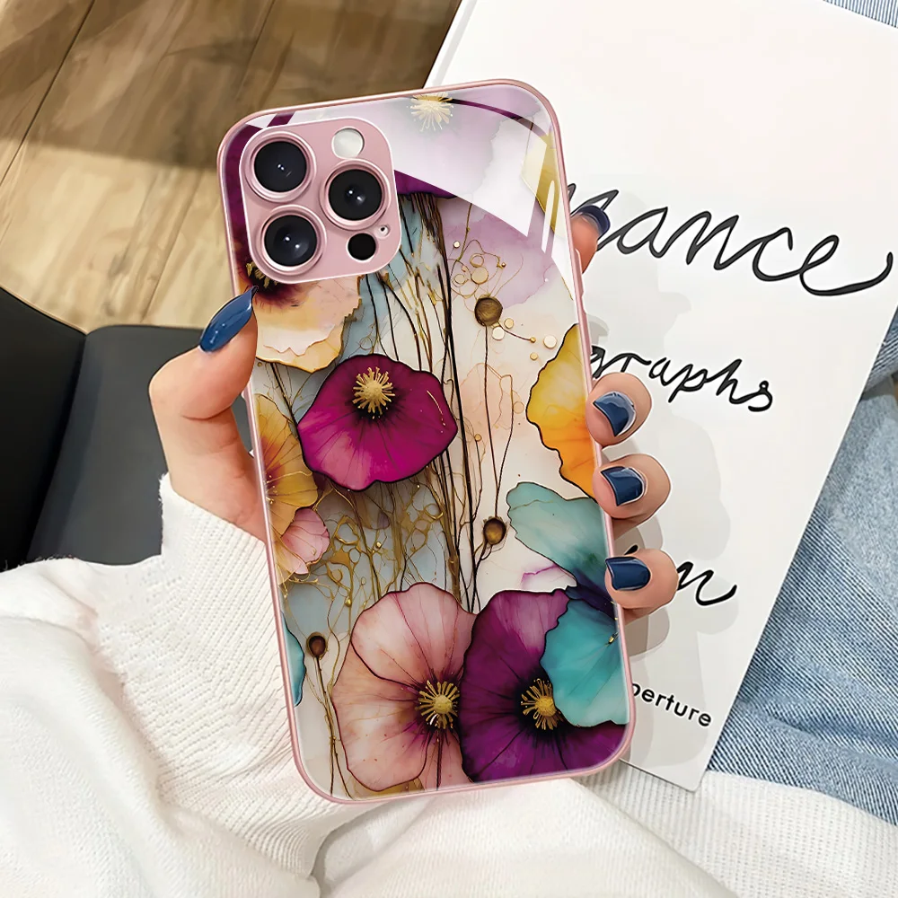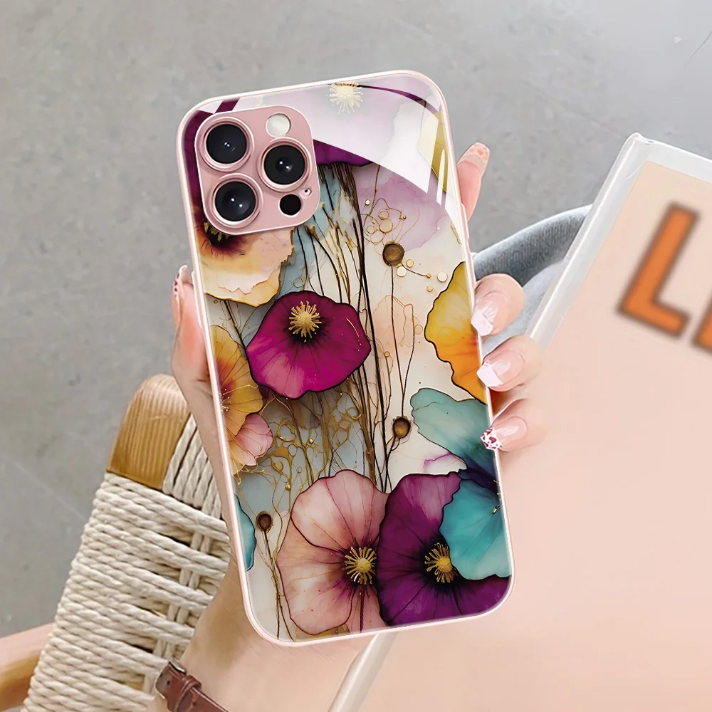 Tempered Glass Phone Case For Samsung S24 Ultra Galaxy A56 5G A55 A54 S25 Plus S23 S22 Ultra S21 S20 FE A 56 Flower Funda Cover