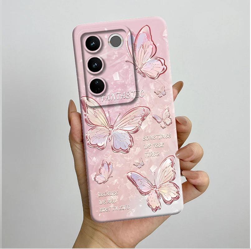 Funda de teléfono para Vivo V27 Pro V27E 5G, bonita mariposa, flores, silicona líquida suave, funda trasera a prueba de golpes, Fundas antideslizantes