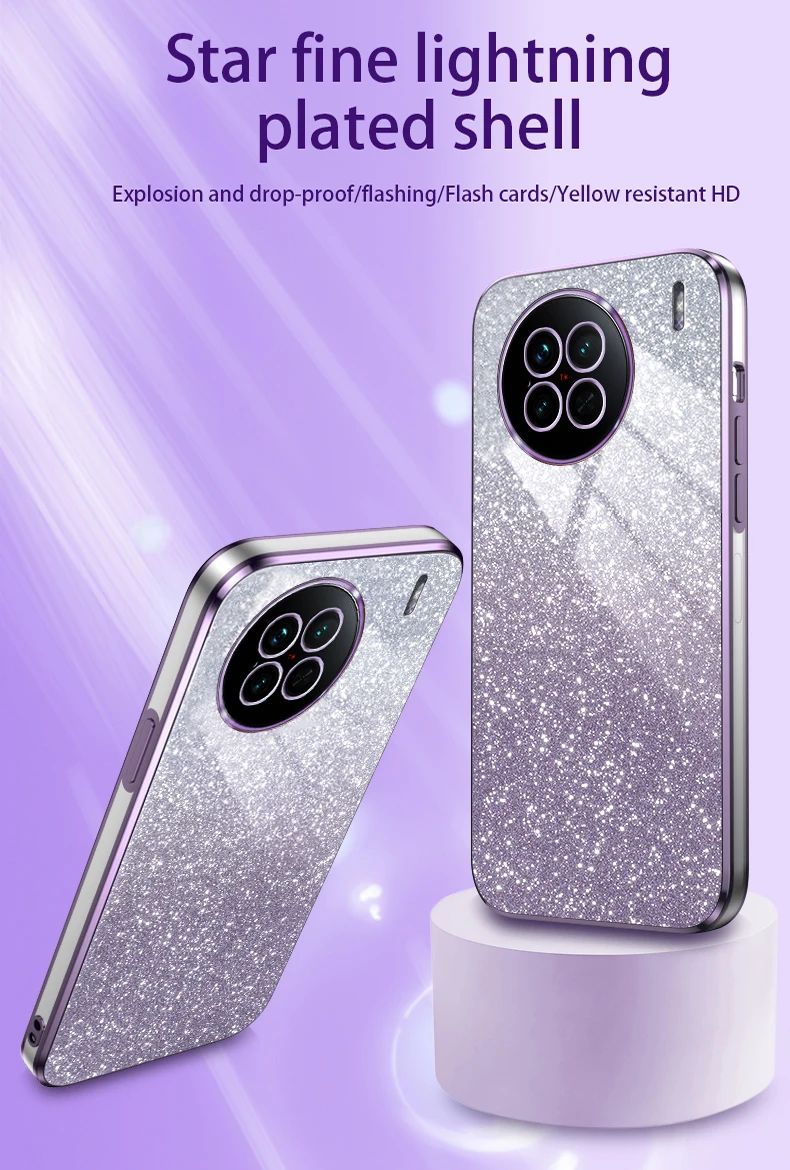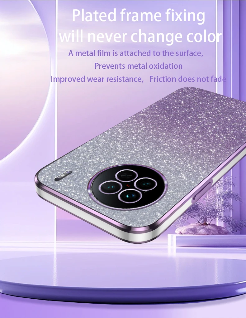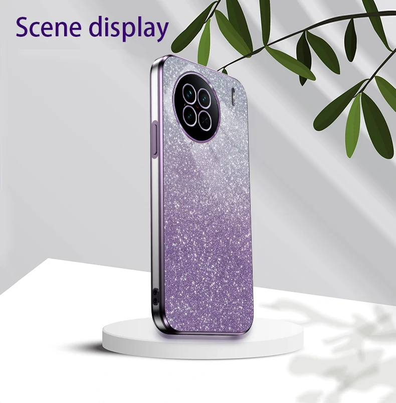 Comprar Funda de teléfono Vivo X90 Pro, carcasa trasera de silicona chapada en purpurina, gradiente de lujo