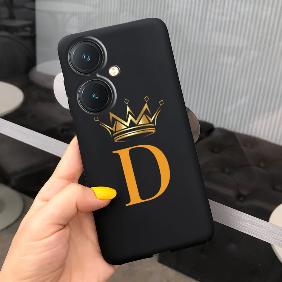 Para Vivo Y27 5G Funda encantadora corona flor letras pareja funda de teléfono para Vivo Y27 4G V2249 contraportada suave Coque para VivoY27 Funda
