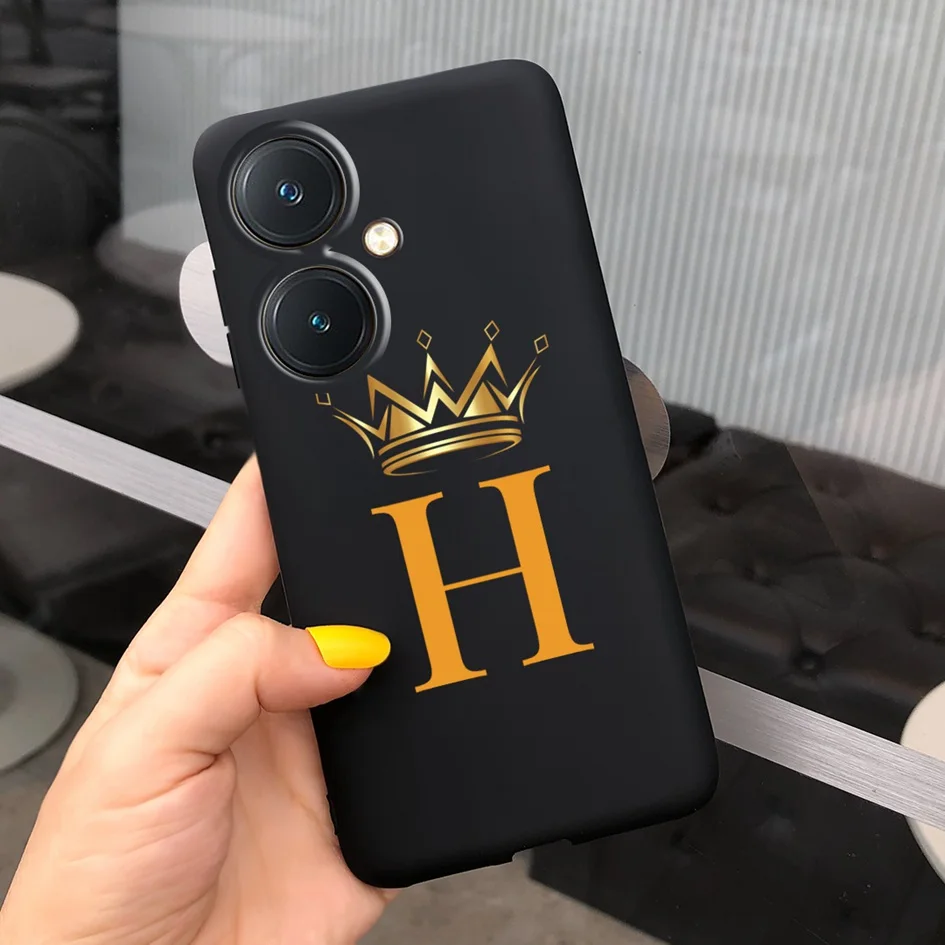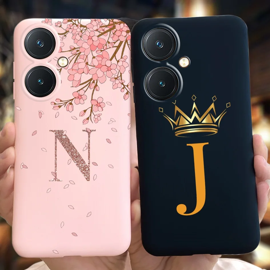 Para Vivo Y27 5G Funda encantadora corona flor letras pareja funda de teléfono para Vivo Y27 4G V2249 contraportada suave Coque para VivoY27 Funda