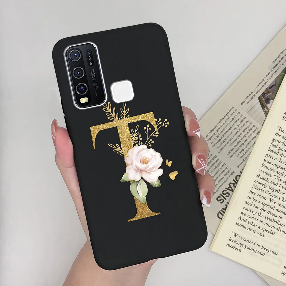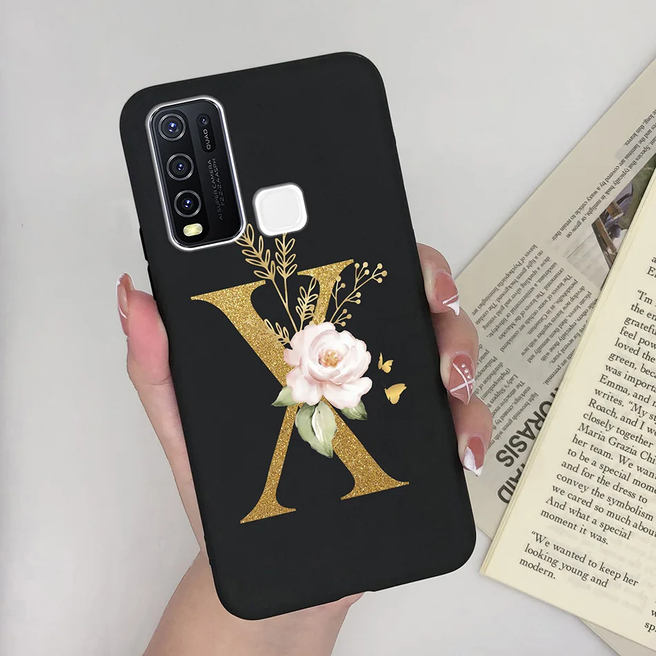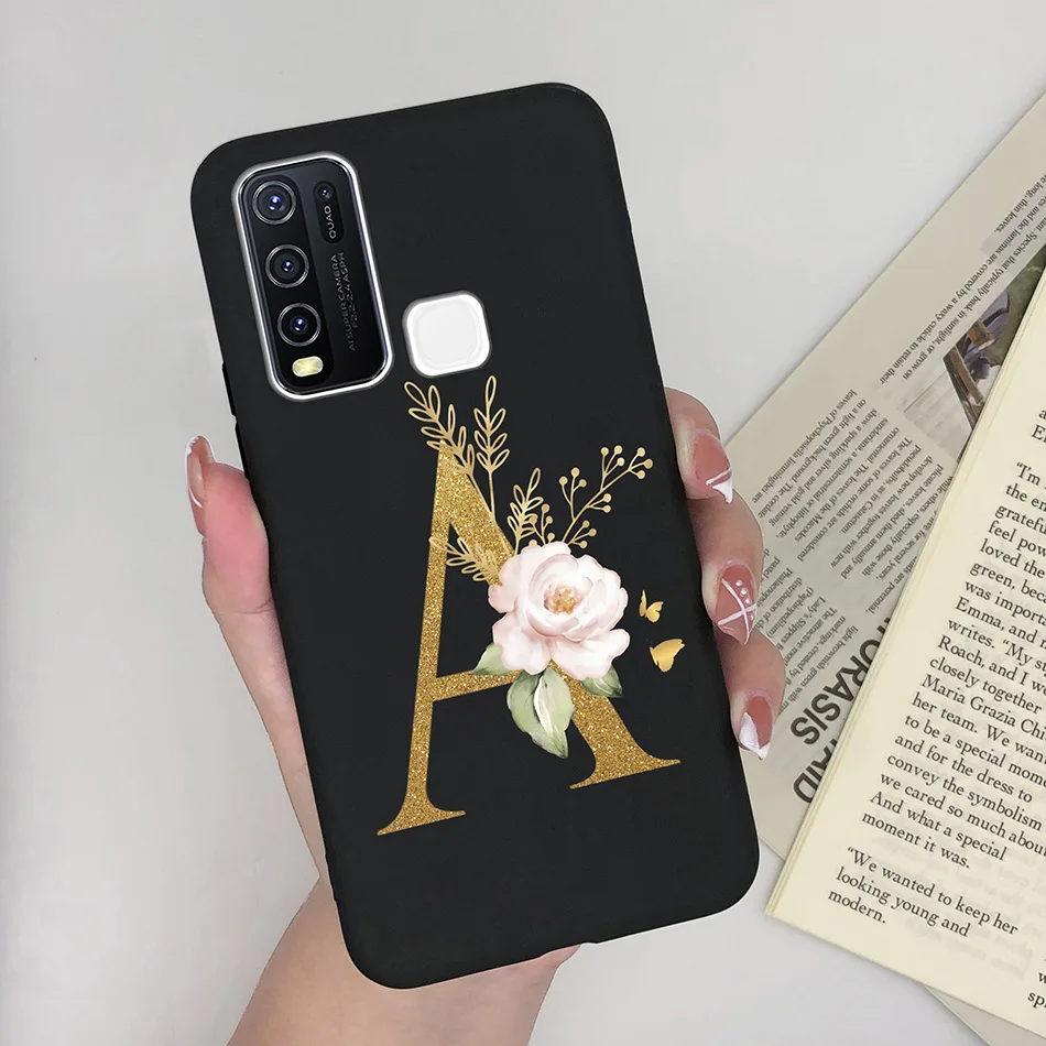 Comprar Funda de teléfono para Vivo Y30 Y30i, carcasa de silicona suave mate con letras de A-Z, antideslizante, carcasa trasera para Vivo Y 30 4G 5G