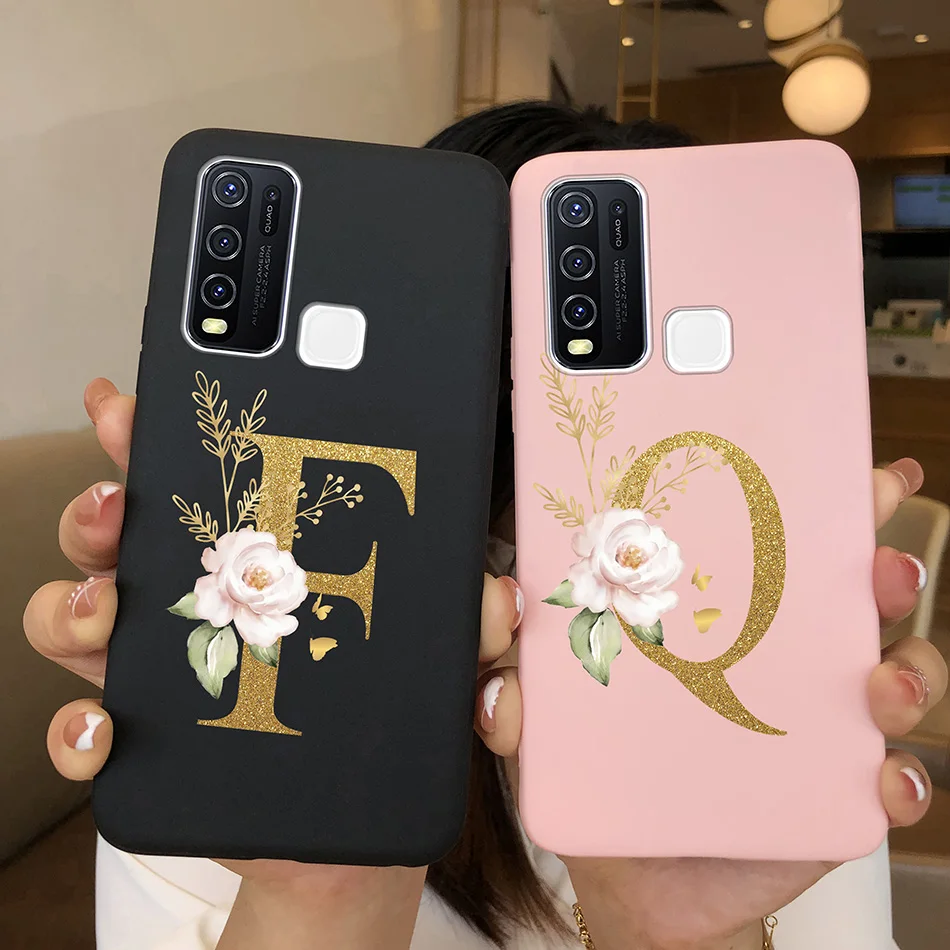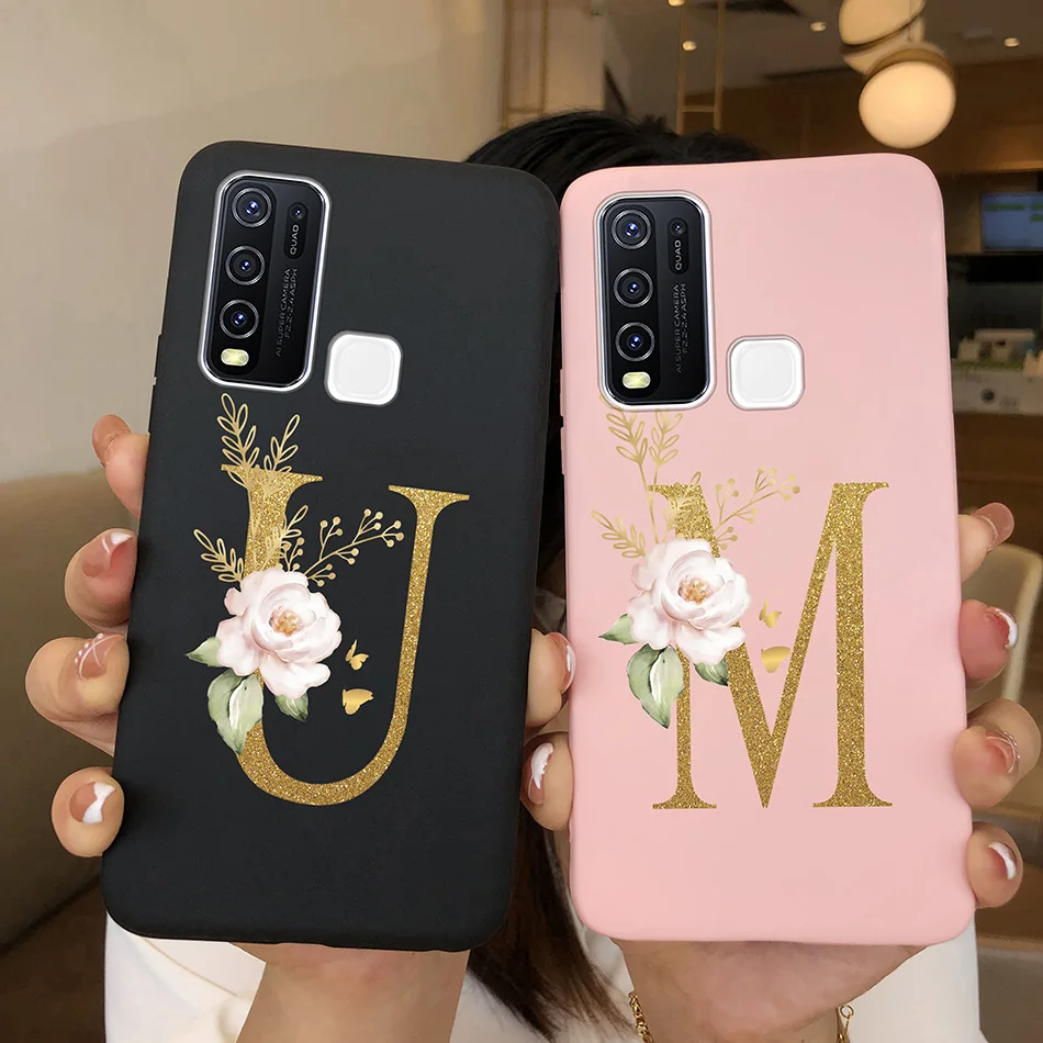Comprar Funda de teléfono para Vivo Y30 Y30i, carcasa de silicona suave mate con letras de A-Z, antideslizante, carcasa trasera para Vivo Y 30 4G 5G