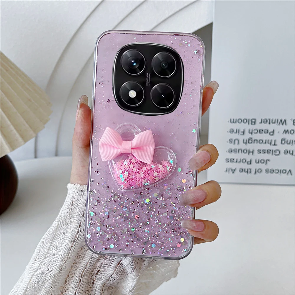 Funda de teléfono POCO X7 3D Quicksand Love Heart para Xiaomi 14T Pro POCO X7 X6 X5 X3 F6 M6 Pro C65 C75 funda suave con purpurina ostentosa