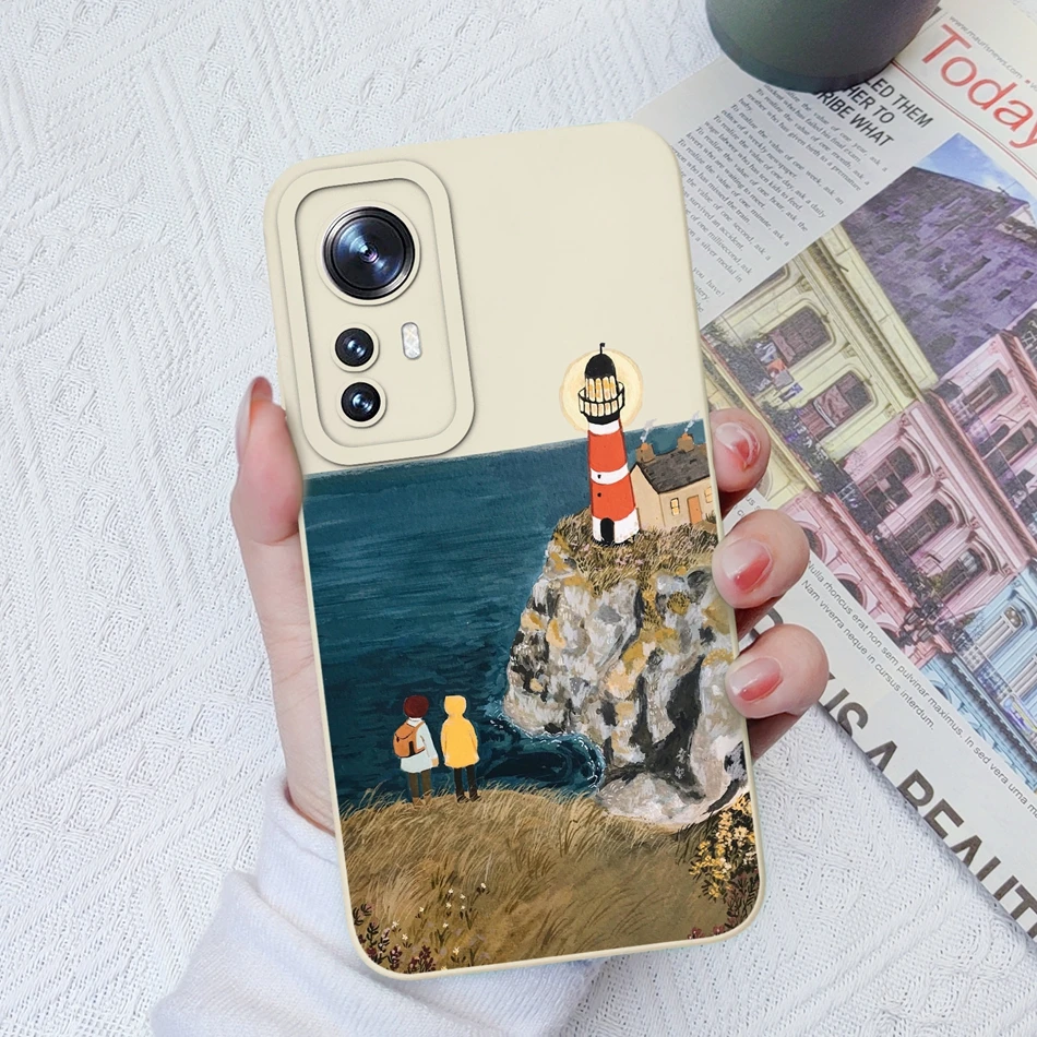 Funda de teléfono para Xiaomi 12 Pro Lite Ultra Color caramelo estampado silicona líquida cobertura completa carcasa antideslizante para Xiaomi12 Coque