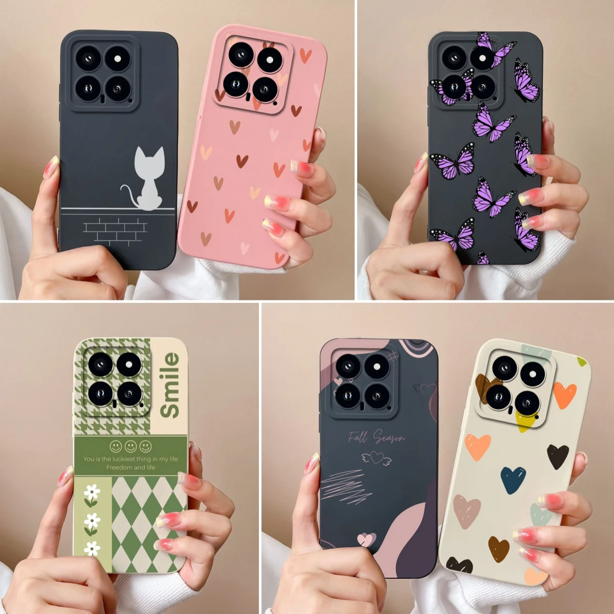 Viene en cuatro colores: negro oscuro, verde bosque, Rosa femenino y blanco cremoso. Cada color tiene un estilo diferente y un patrón de dibujos animados único, agregando un toque de diversión y personalidad a su teléfono para adaptarse a sus preferencias.
