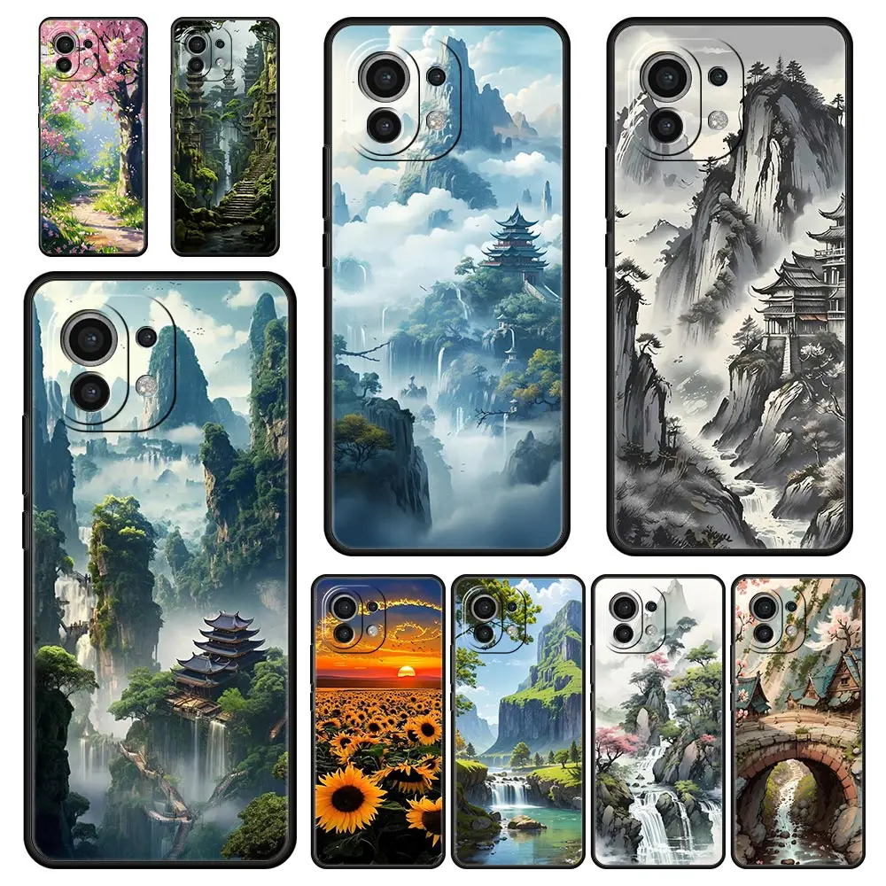 Comprar Funda de teléfono para Xiaomi Mi 14, 13, 12, 11 Lite, 13T, 12T, 11x, 11T, 10T Pro, 9T, Note 10 Lite, cubierta negra de silicona suave, arte paisajístico