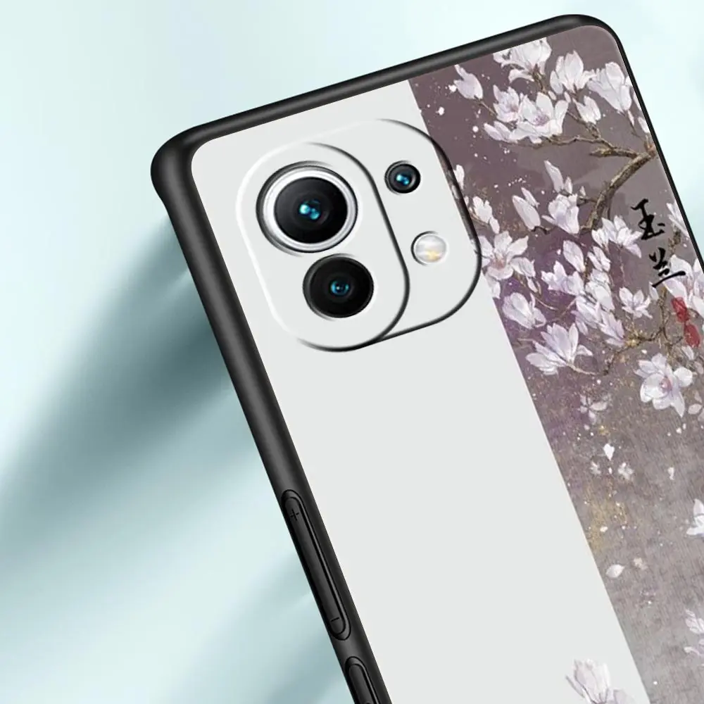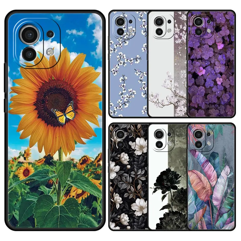 Funda de teléfono para Xiaomi Mi 14, 13, 12, 11 Lite, 13T, 12T, 11x, 11T, 10T Pro, 9T, Note 10 Lite, de silicona suave funda negra, flor 12