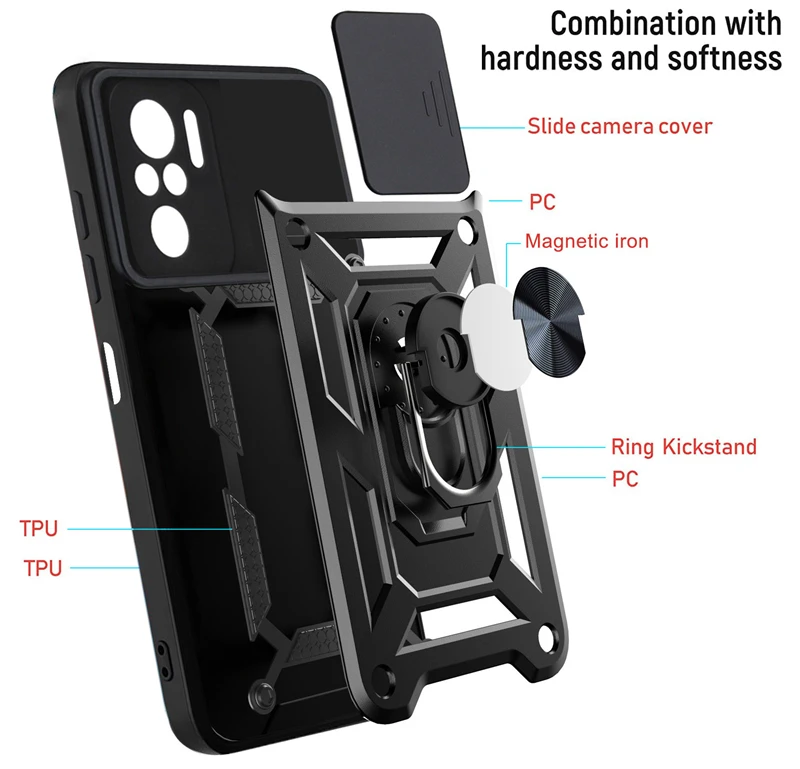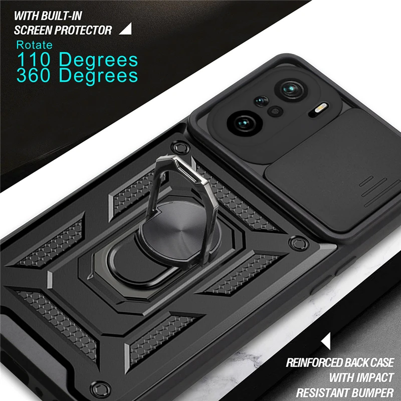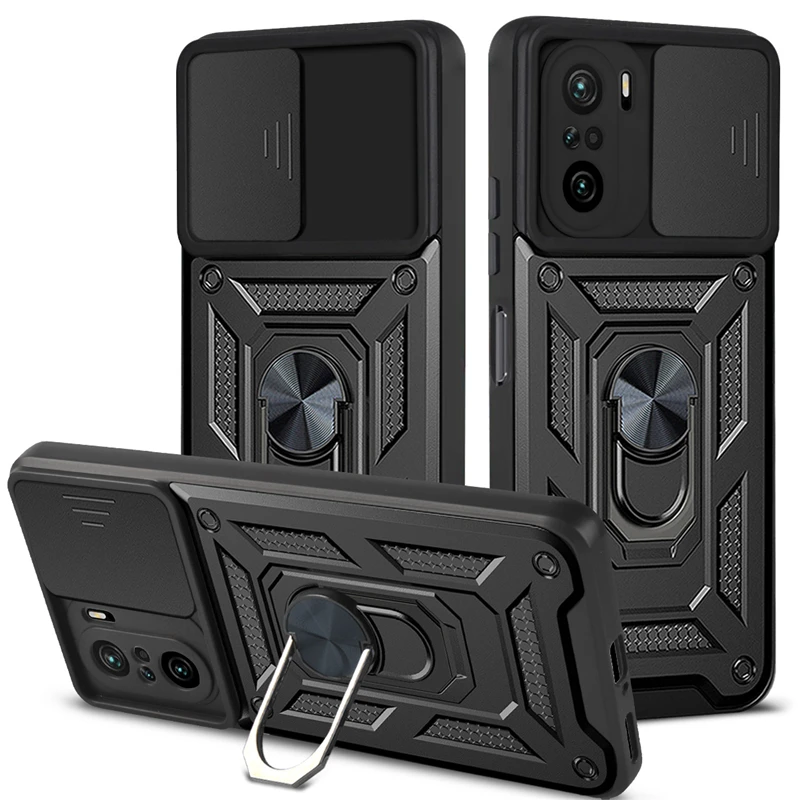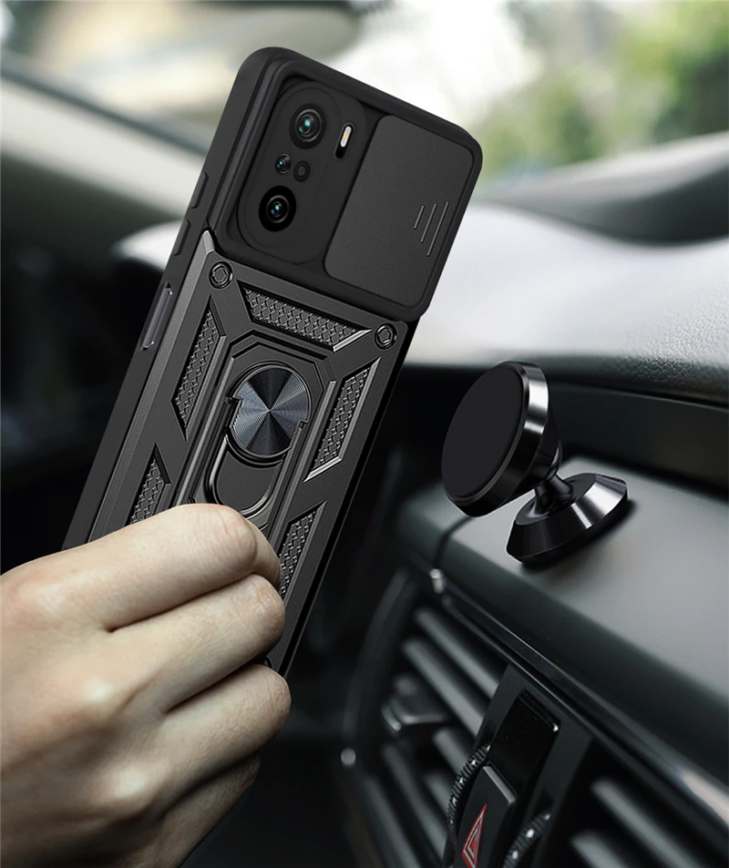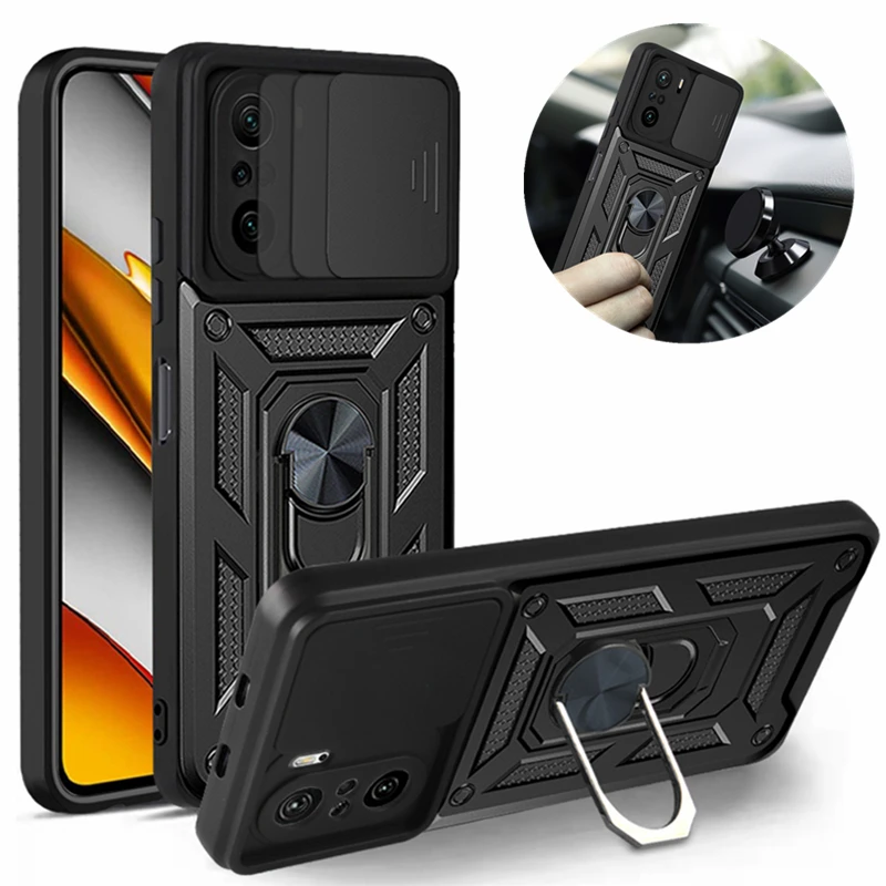 Funda de teléfono para Xiaomi Pocophone F3, carcasa protectora de cámara Push Pull para Poco F3 POCOF3 F 3, soporte de anillo de coche magnético de 6,67"