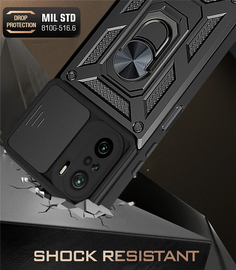 Comprar Funda de teléfono para Xiaomi Pocophone F3, carcasa protectora de cámara Push Pull para Poco F3 POCOF3 F 3, soporte de anillo de coche magnético de 6,67"