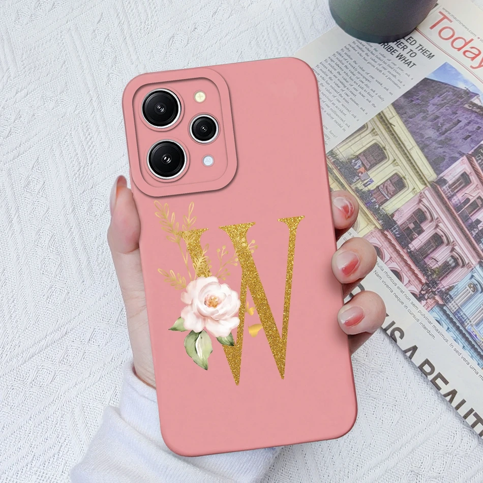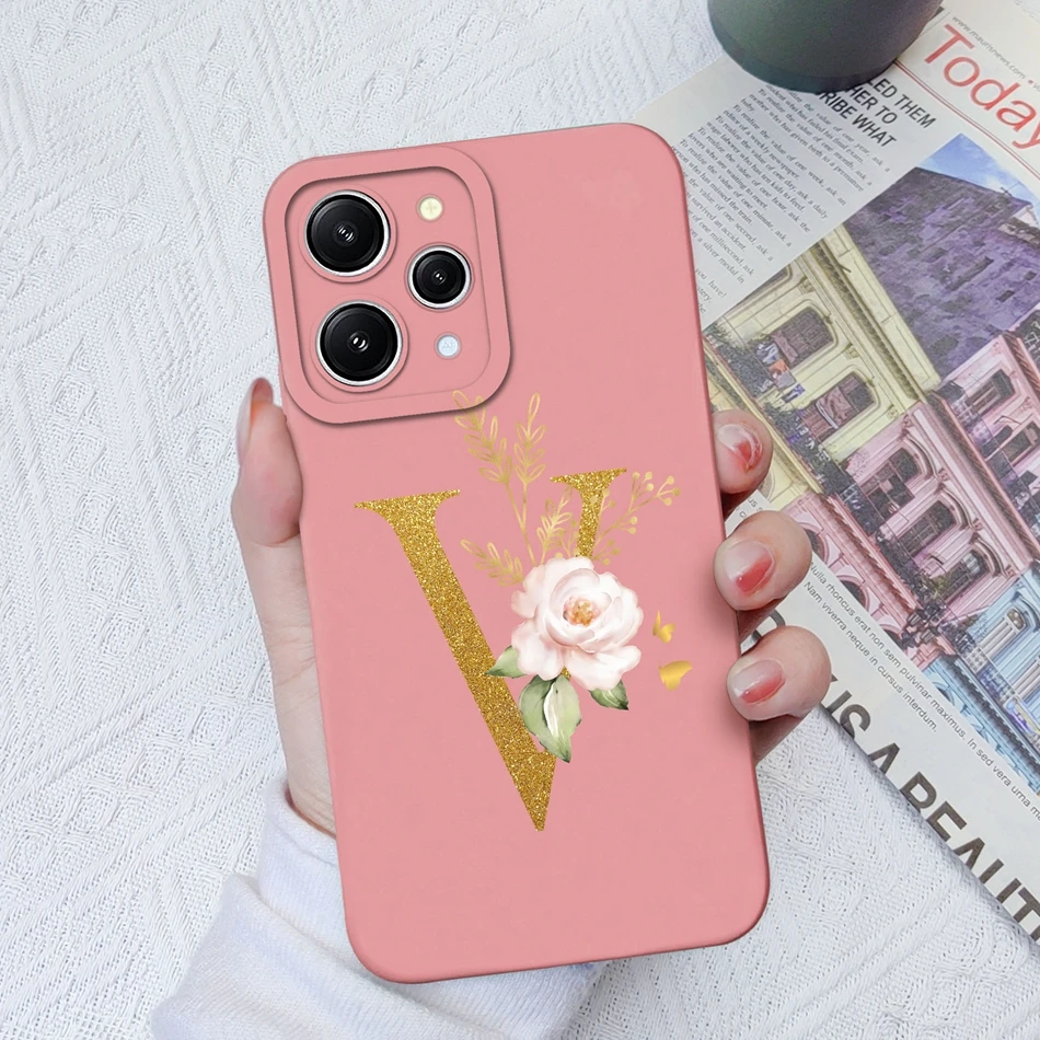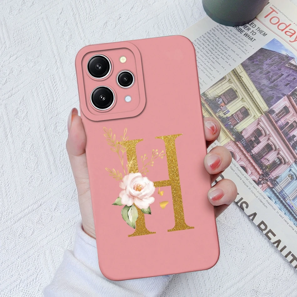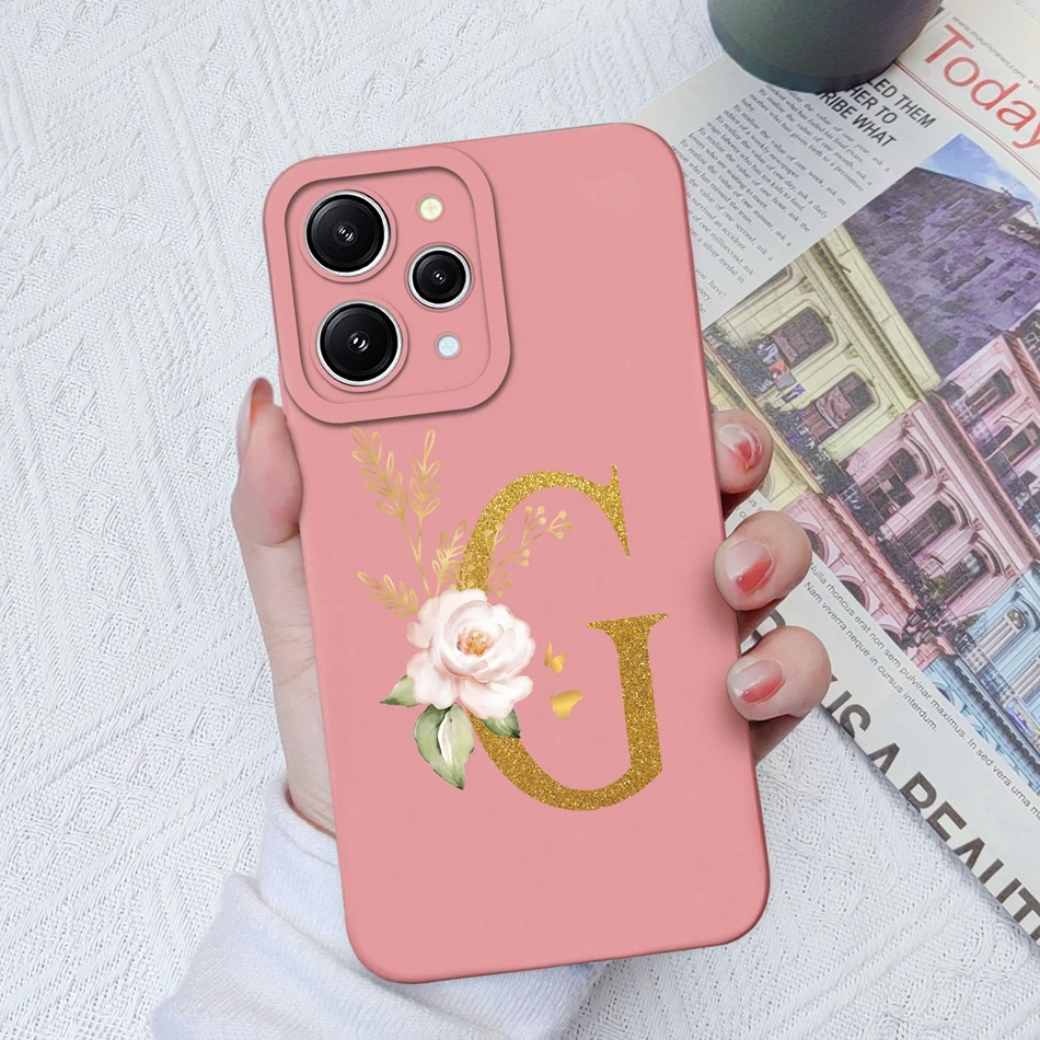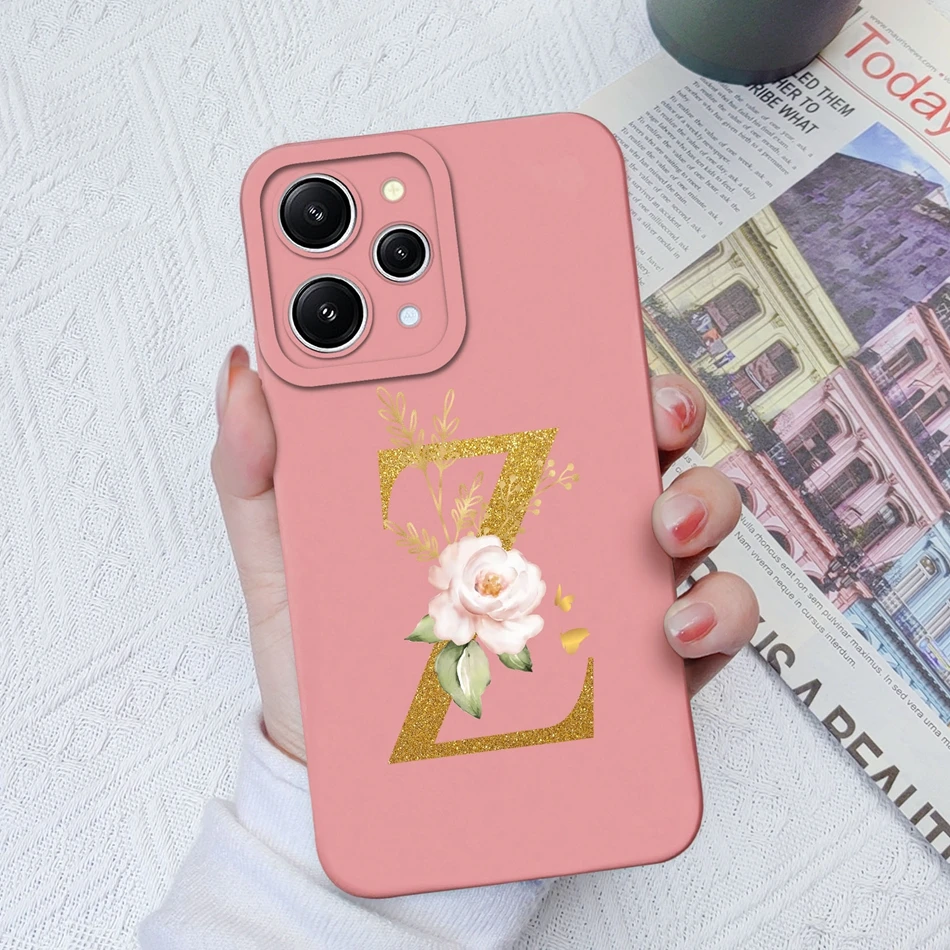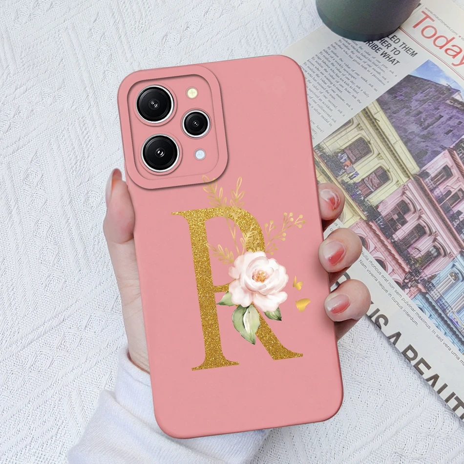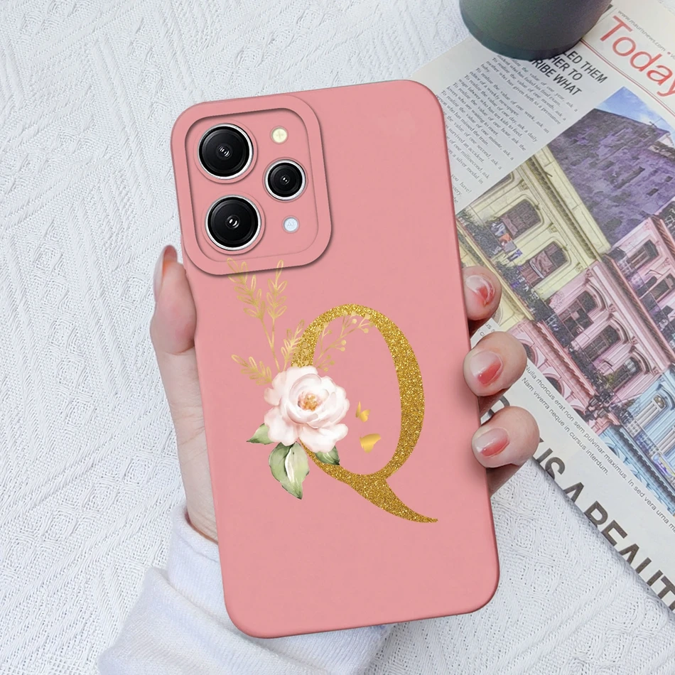 Fundas de teléfono para Xiaomi Redmi 12 12C 11A Rose 26 Letter Smooth Liquid Silicone a prueba de golpes Pink Cover para Redmi 12 C 11 A Capa
