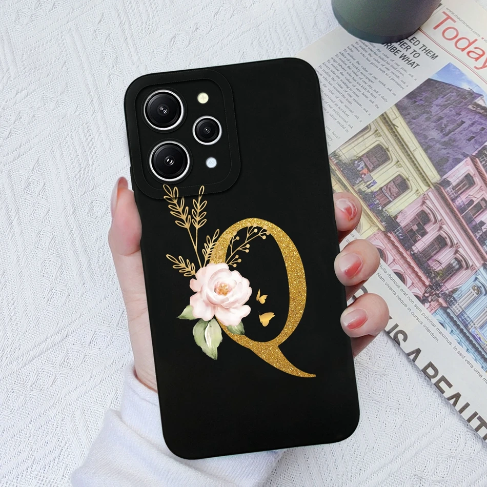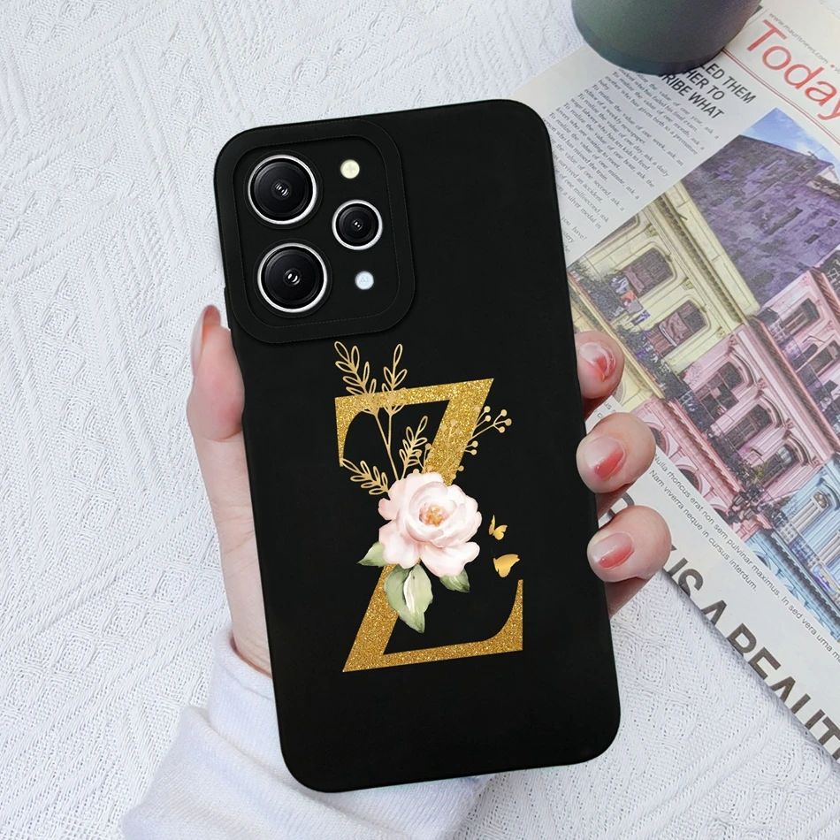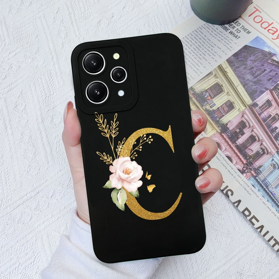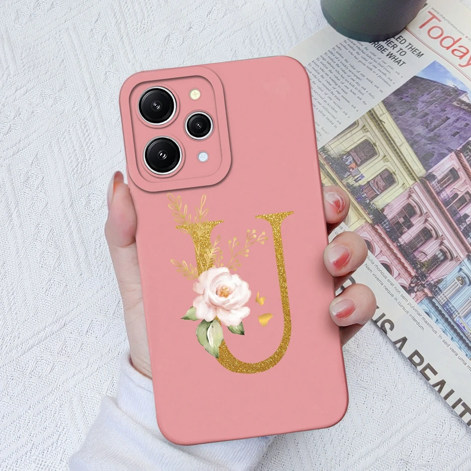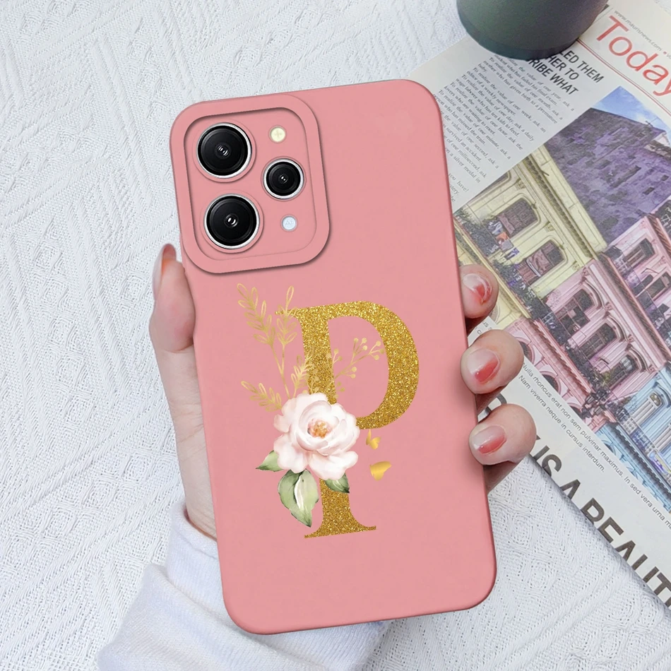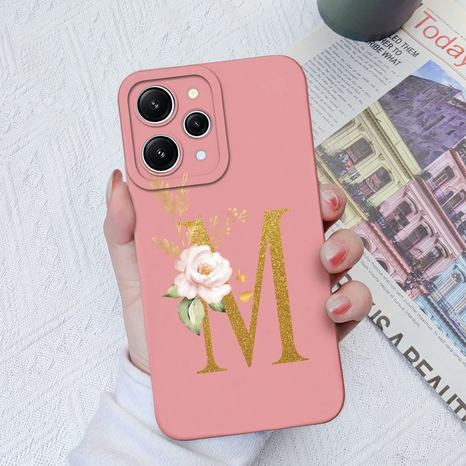 Fundas de teléfono para Xiaomi Redmi 12 12C 11A Rose 26 Letter Smooth Liquid Silicone a prueba de golpes Pink Cover para Redmi 12 C 11 A Capa