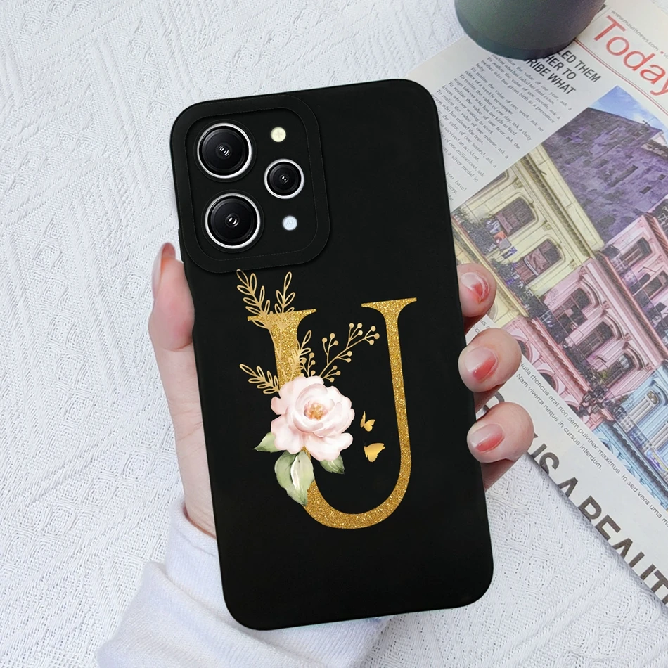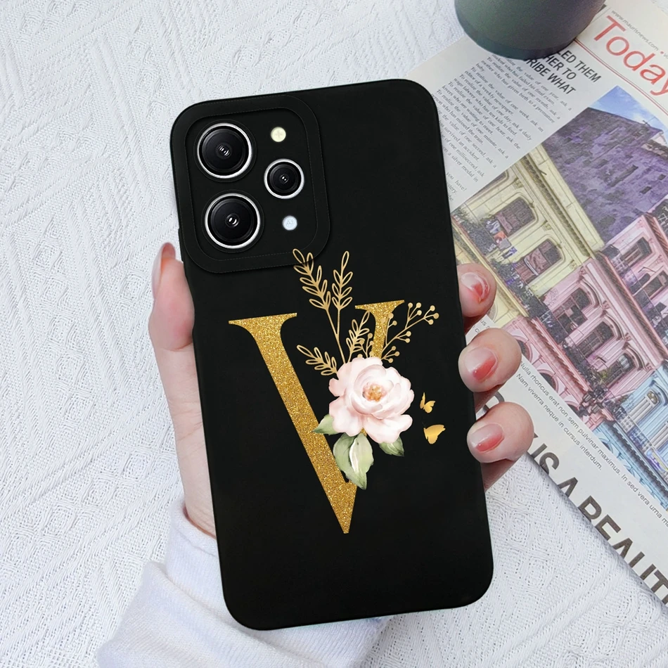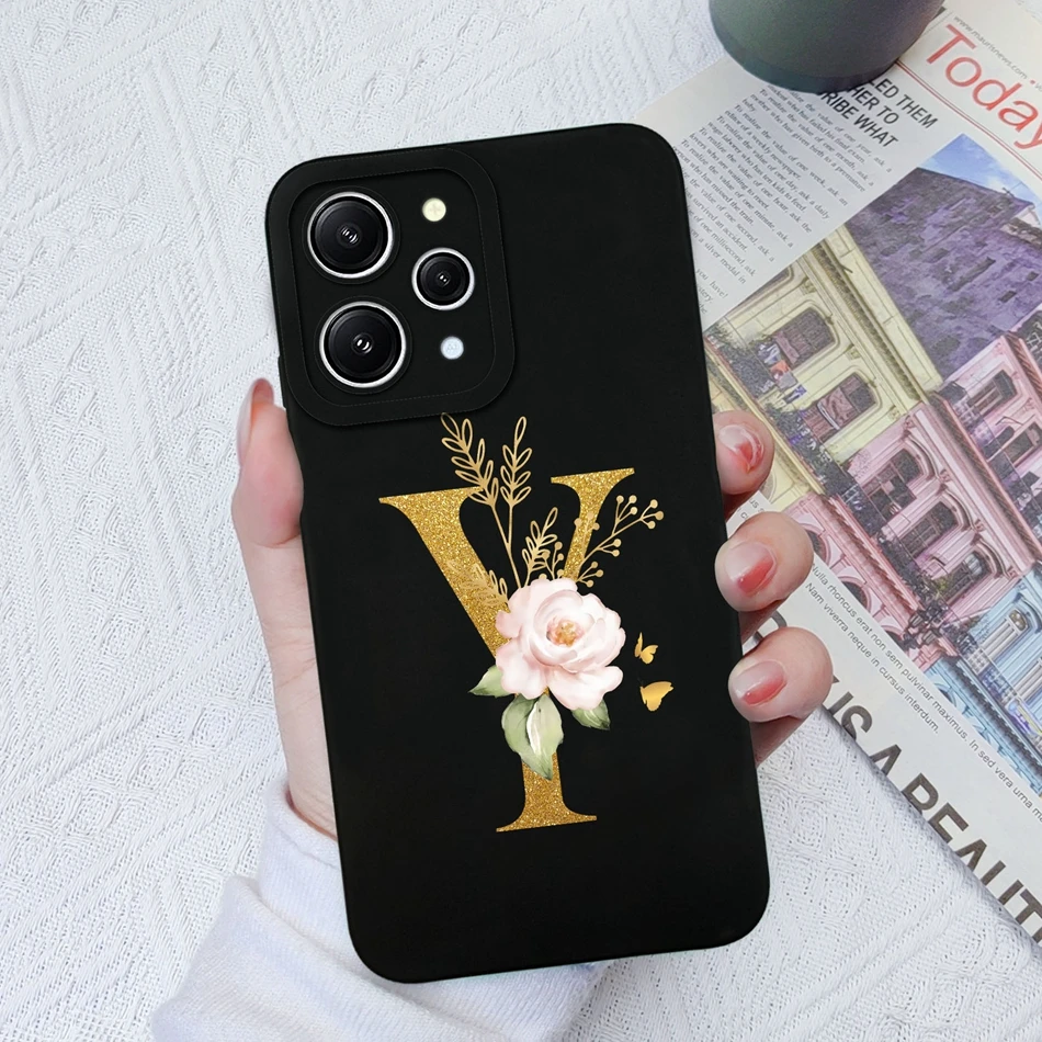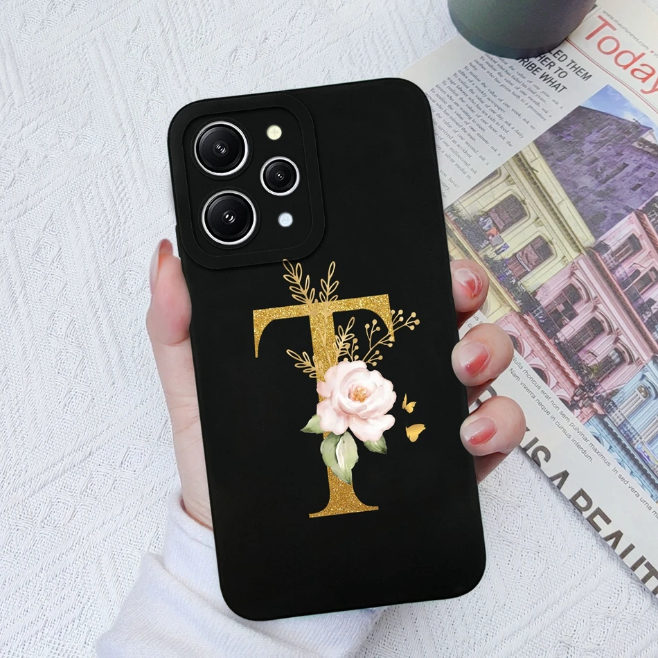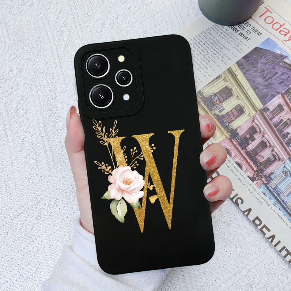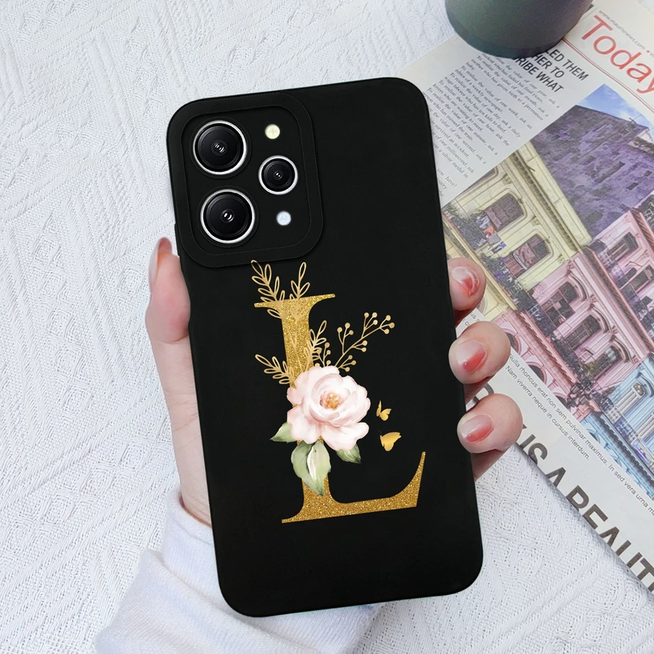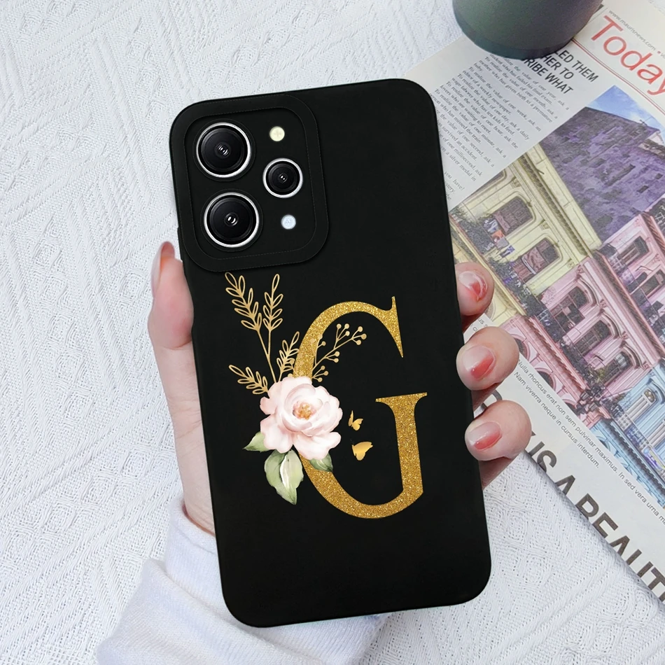 Fundas de teléfono para Xiaomi Redmi 12 12C 11A Rose 26 Letter Smooth Liquid Silicone a prueba de golpes Pink Cover para Redmi 12 C 11 A Capa