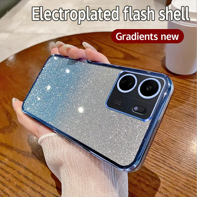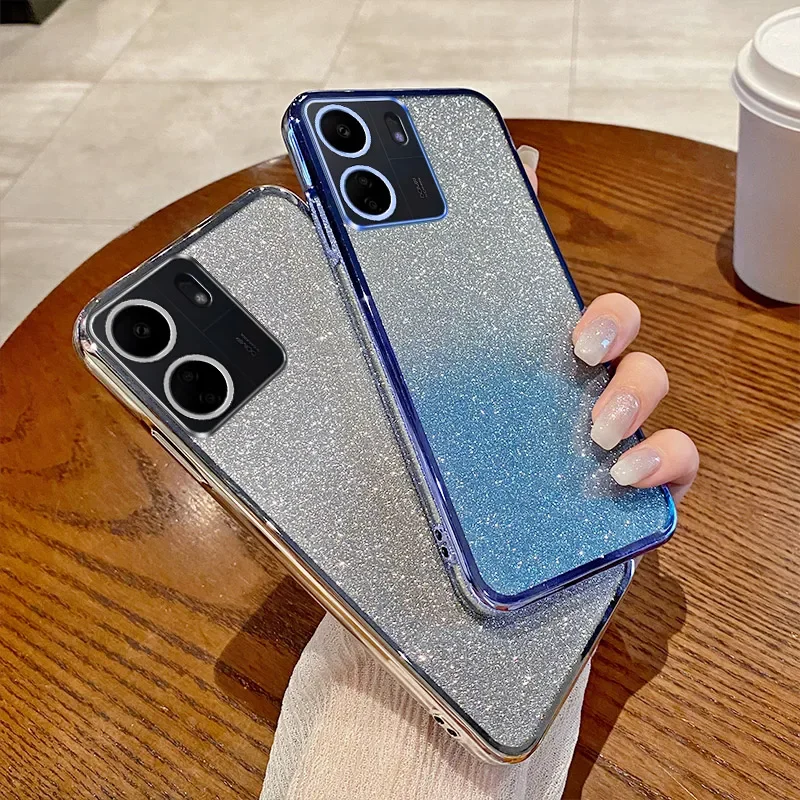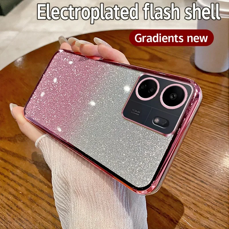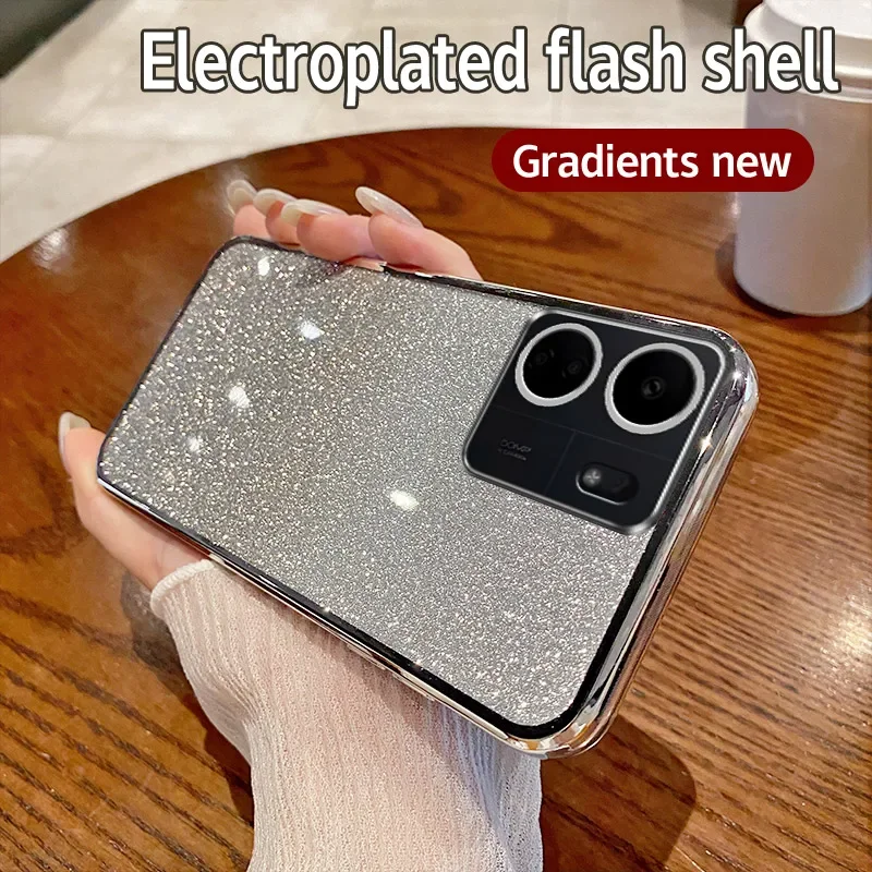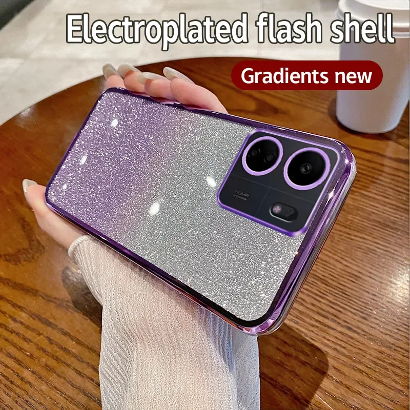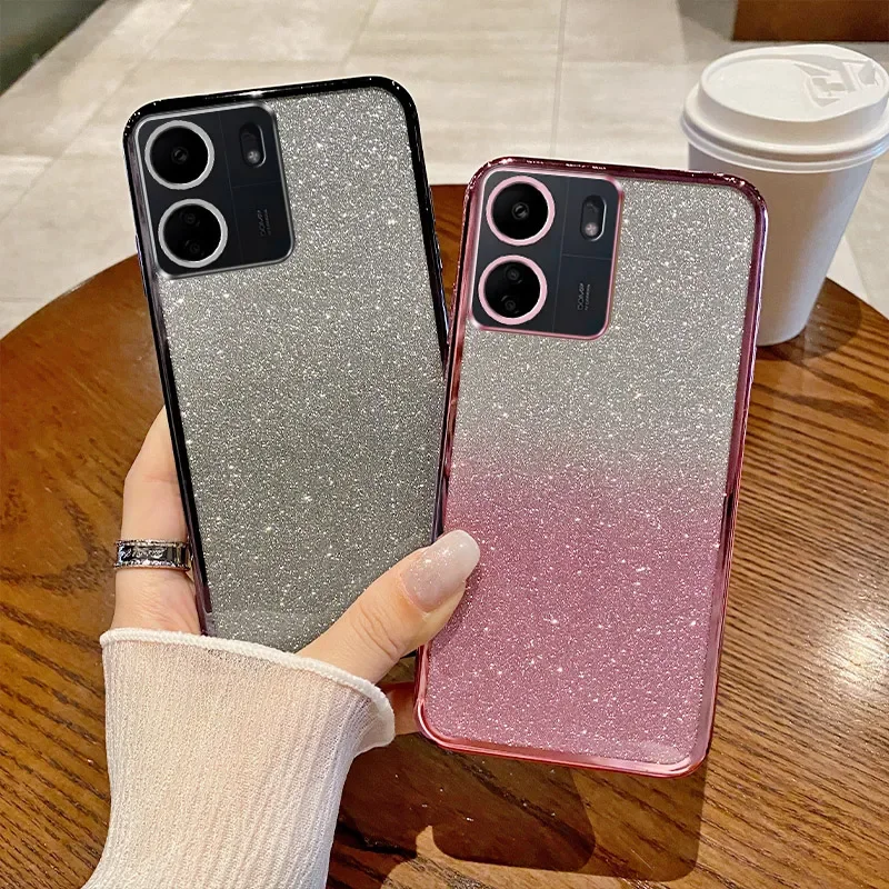 Comprar Funda de teléfono para Xiaomi Redmi 13C, carcasa trasera transparente con purpurina galvanizada de lujo, POCO C65