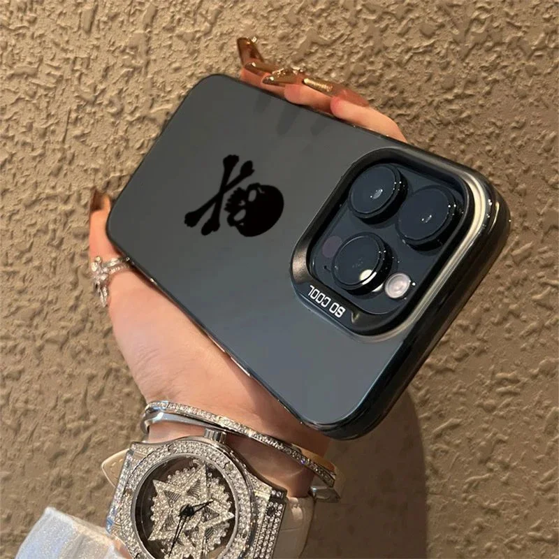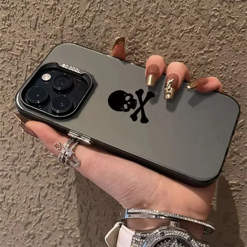 Comprar Funda de teléfono para Xiaomi Redmi 14C 13C 12C Redmi Note 14 13 12 11 Pro Plus 12S 11S 10 10S cubierta electrochapada mate con calavera negra
