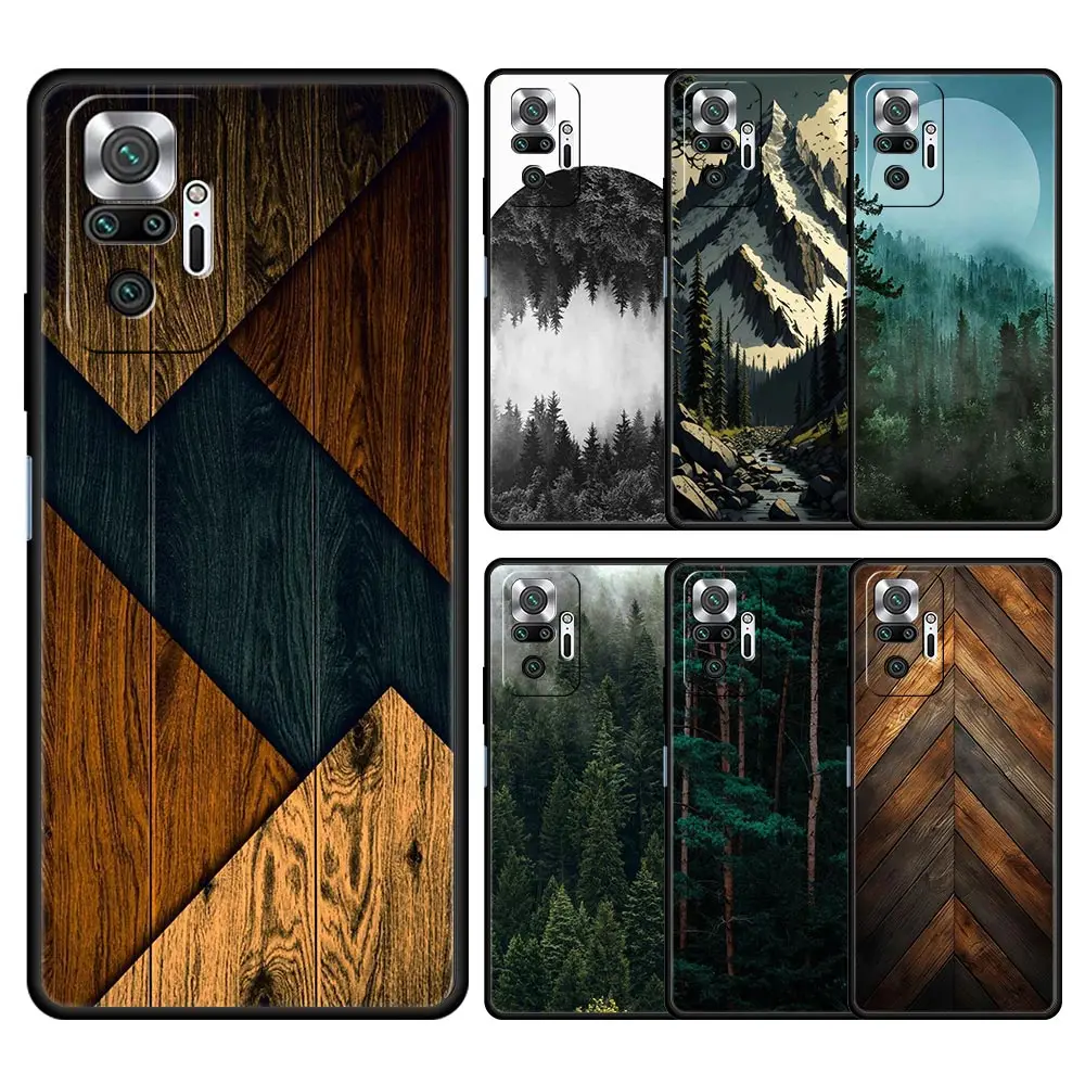 Funda de teléfono para Xiaomi Redmi Note 13, 12, 5G, 9S, 9, 8, 10, 11 Pro, 9T, 13C, 12C, 10C, 9C, 9A, 7 Pro, cubierta de silicona suave, geometría del bosque, madera