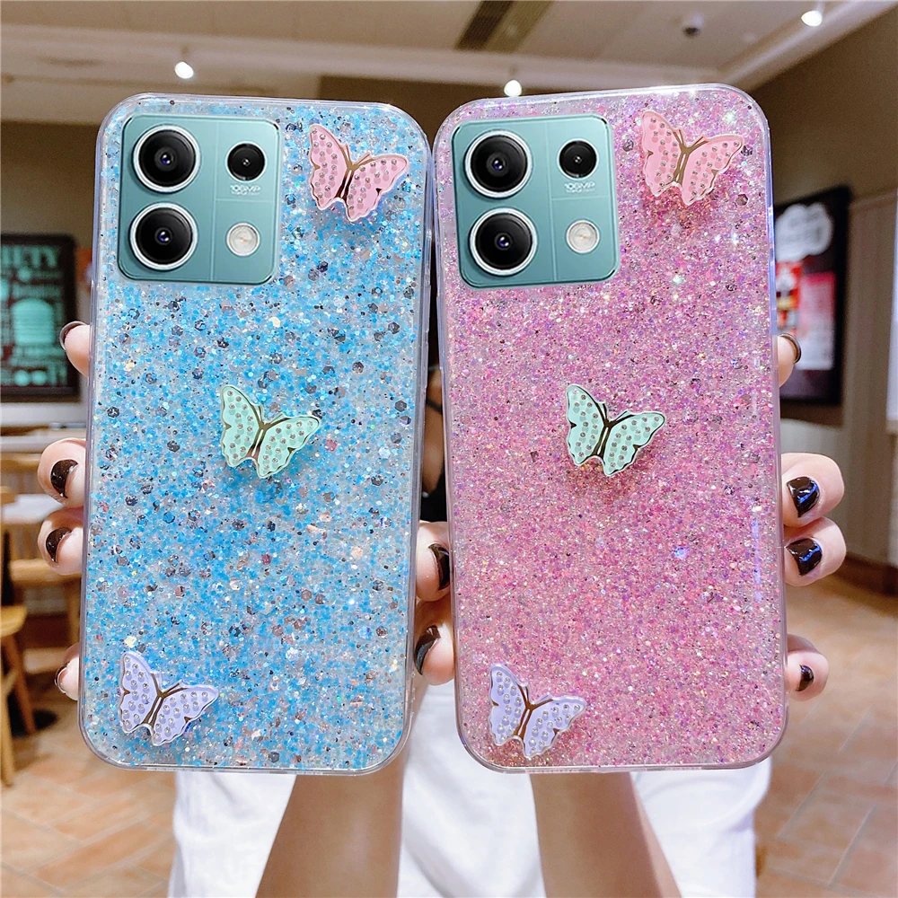 Funda de teléfono para Xiaomi Redmi Note 13 Pro Plus 13C Mi POCO C65 X6 Pro 4G mariposa suave brillo Xiomi Redmi Note 13