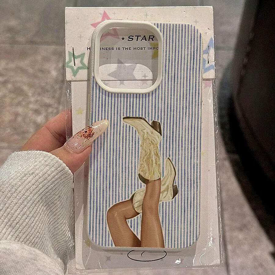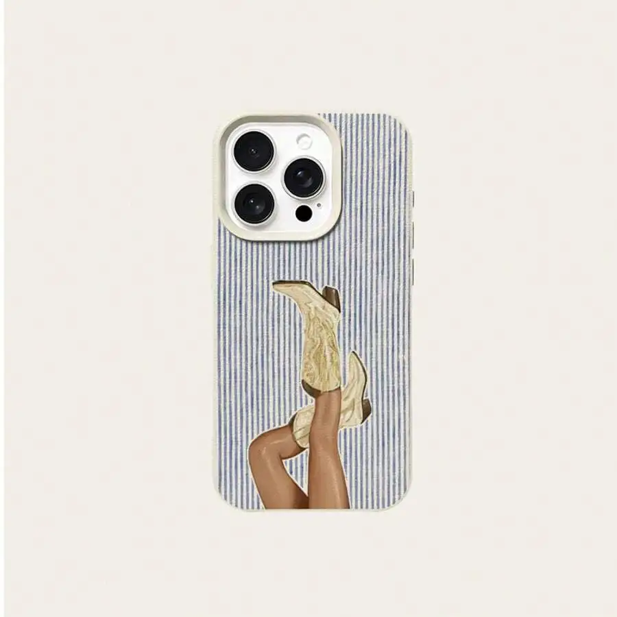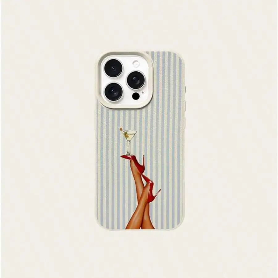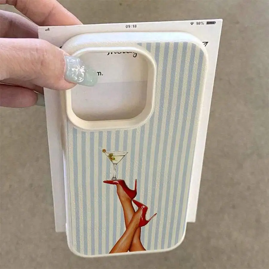 Funda de teléfono con zapato de tacón alto a rayas, elegante y moderna, para iPhone 17 16 Pro 15 13 11 12 14 Pro Max 17 Air, funda suave a prueba de golpes