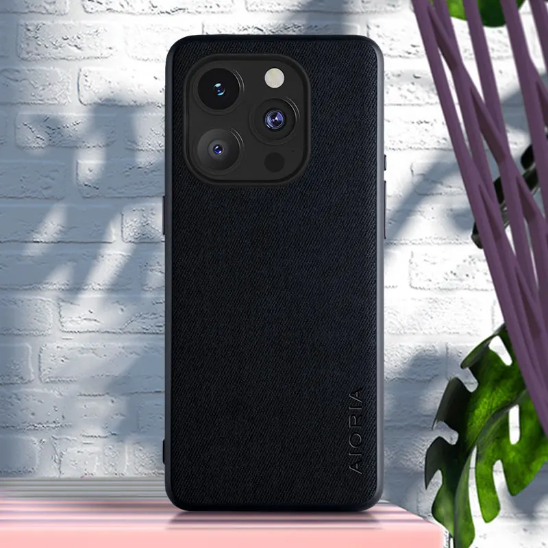 Funda textil iPhone 15 Pro Max Plus 14 pro Max 13 mini 12 mini Soft TPU Hard PC con piel PU material 3 en 1