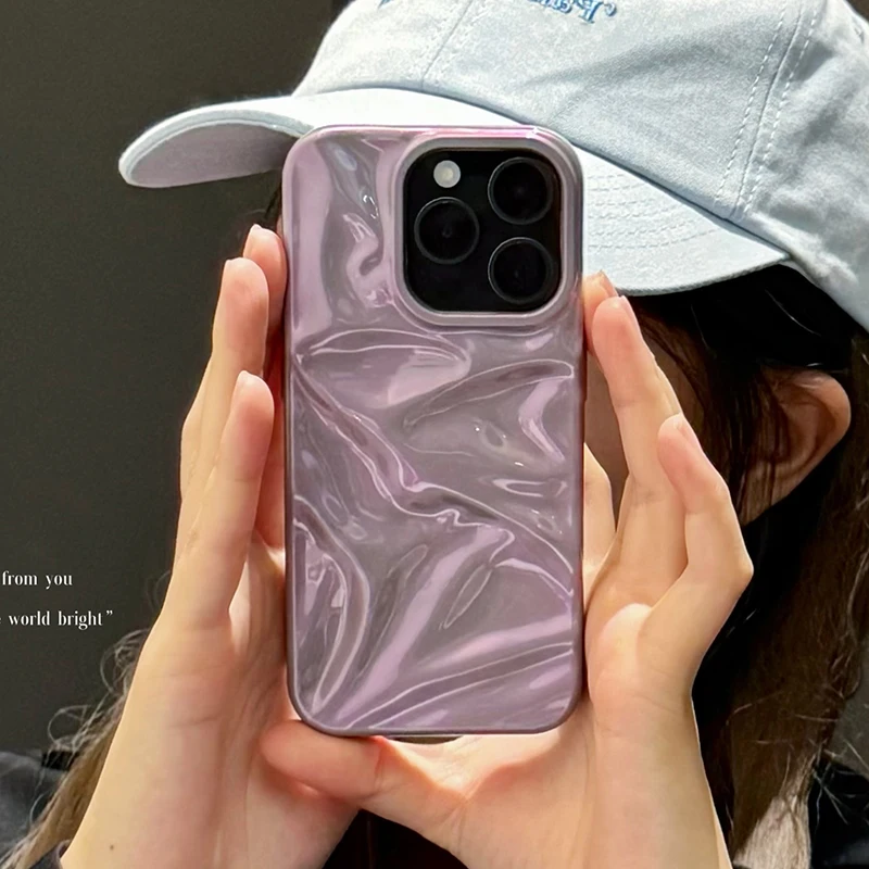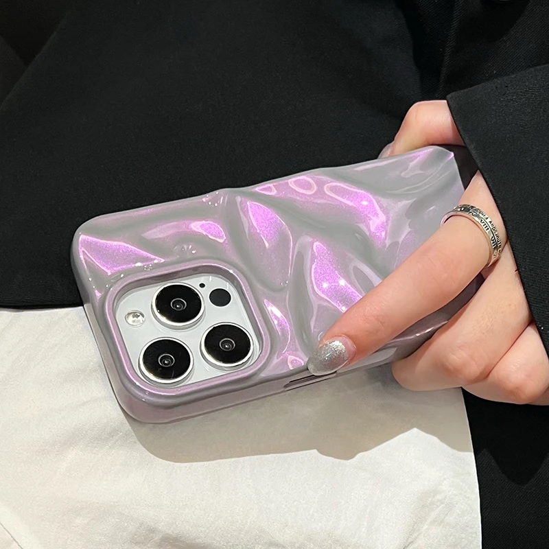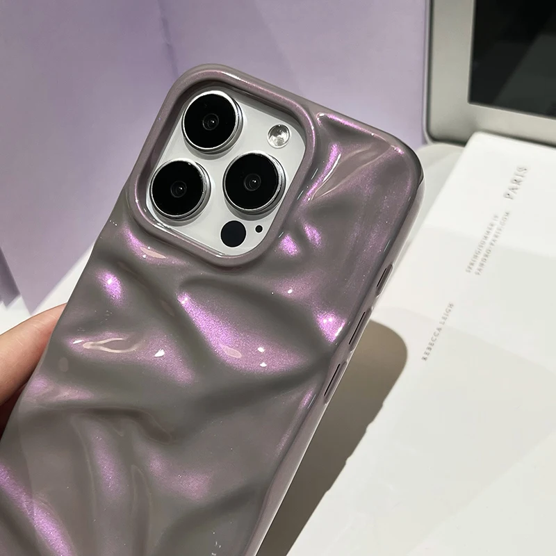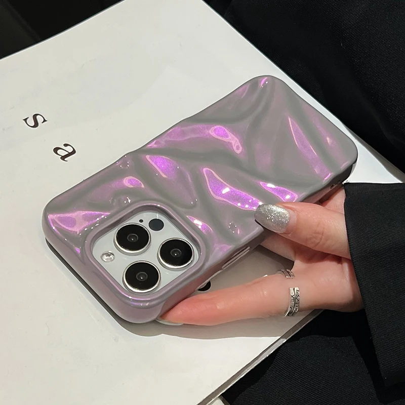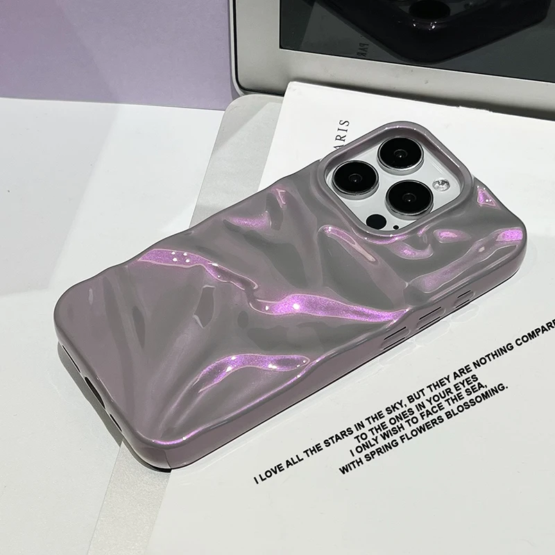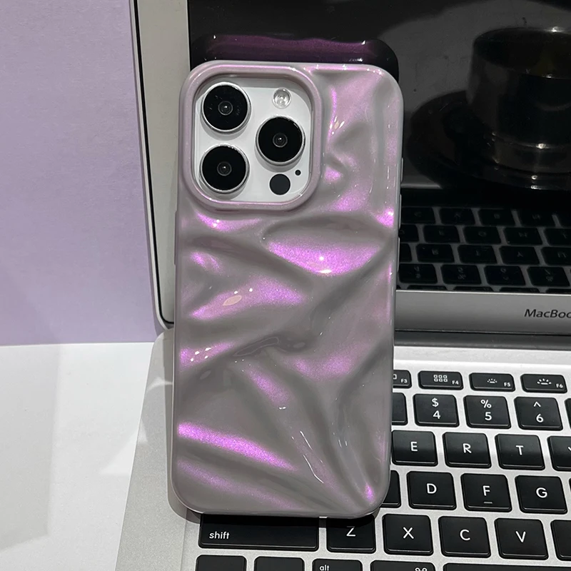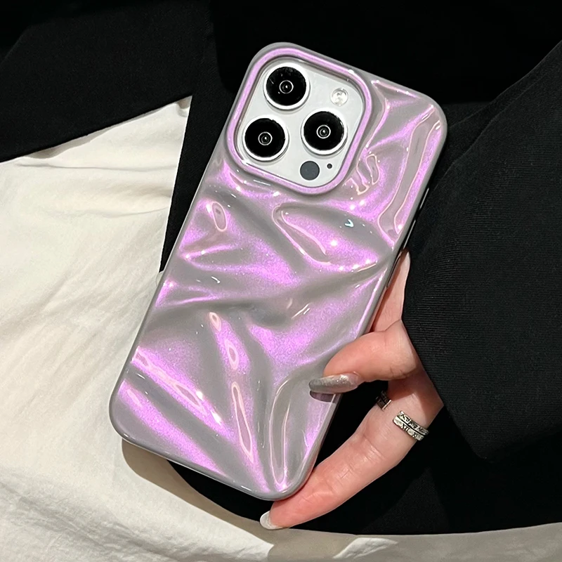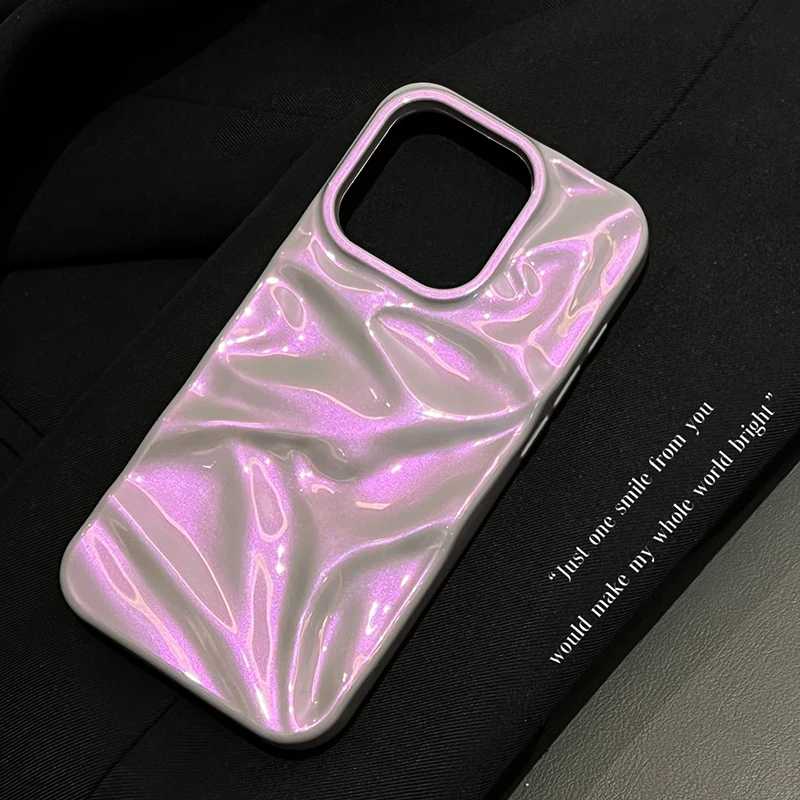 Fashion Dazzling Purple Glossy Wrinkled Texture Case For iPhone 16 Pro Max 15 14 13 12 11 16 Plus Soft Phone Back Cover Shell