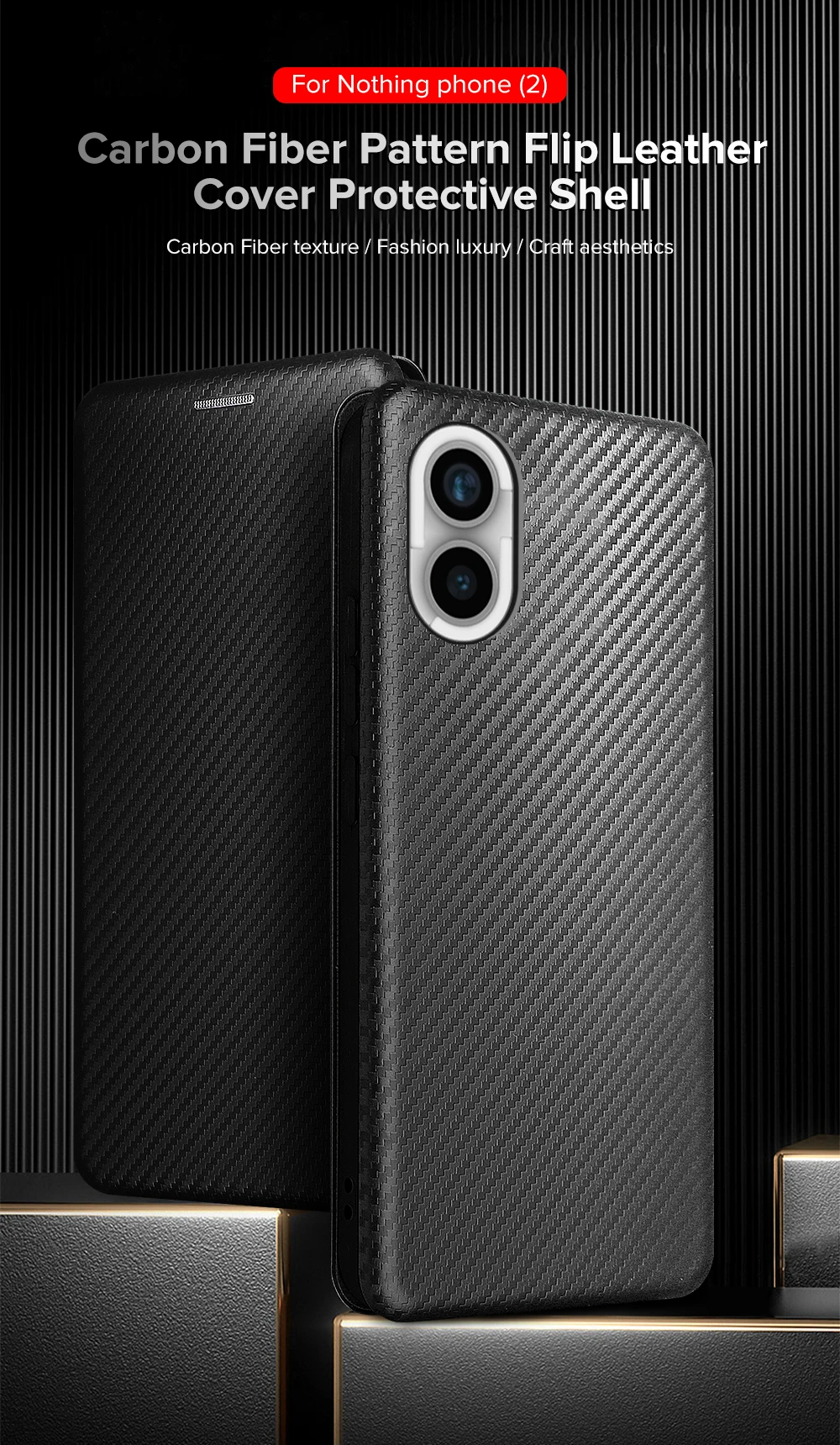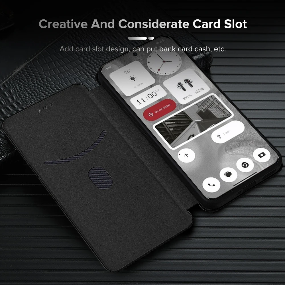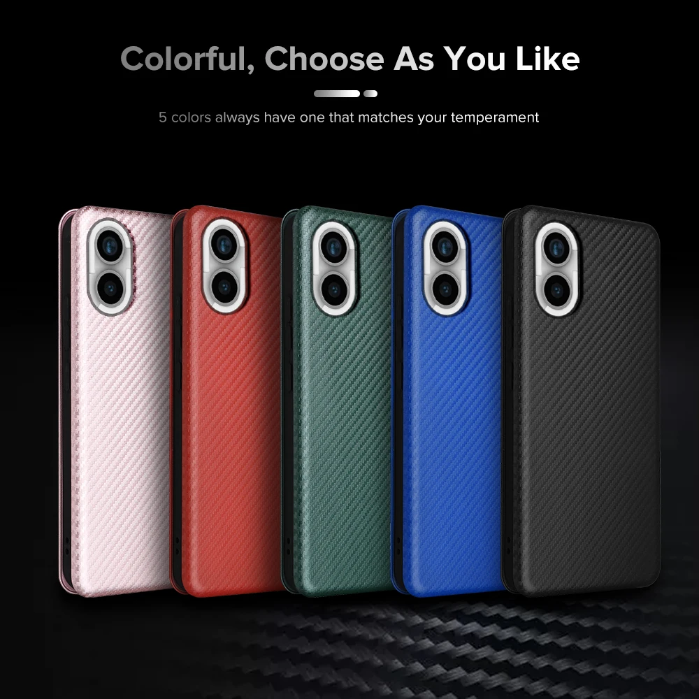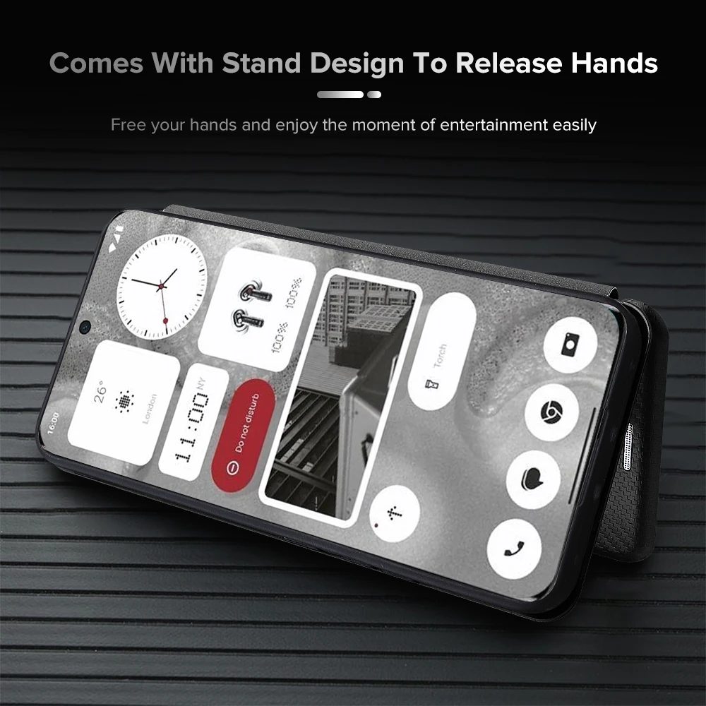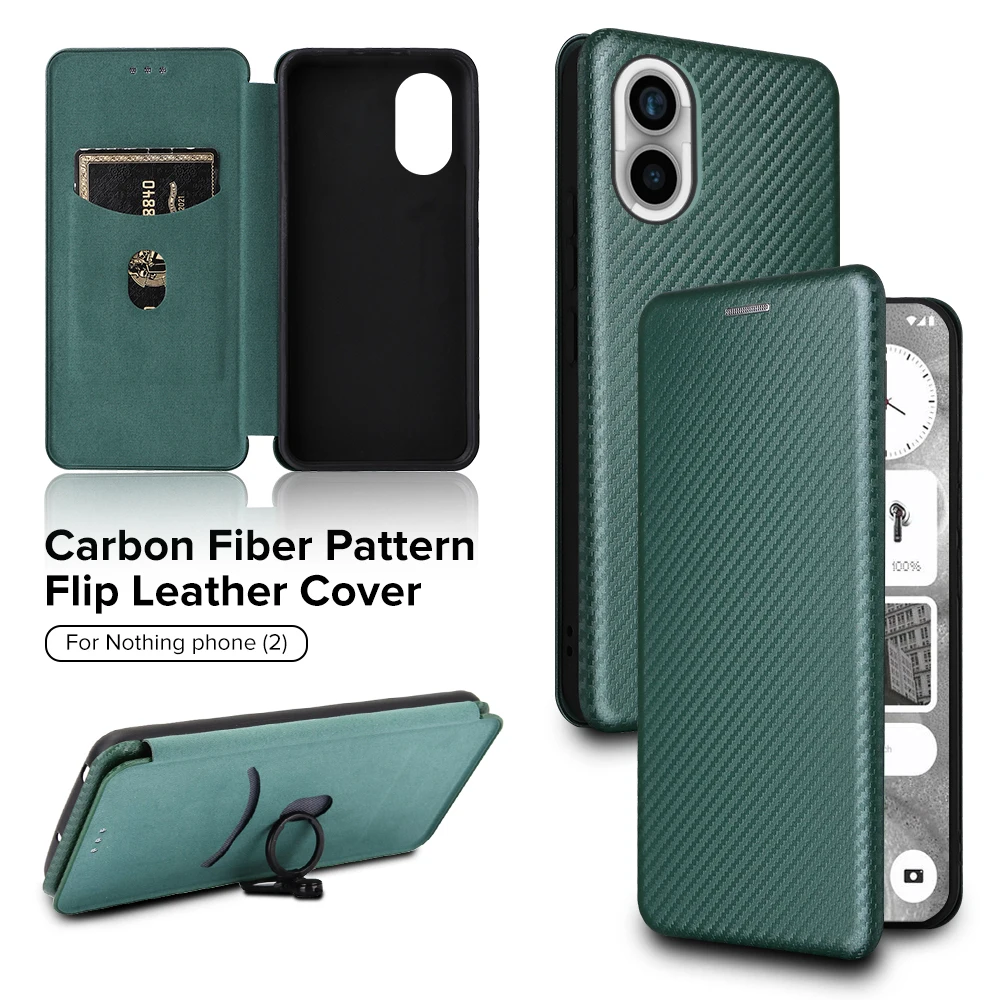 For Nothing Phone (2) Funda 5G Textura de fibra de carbono Funda trasera de cuero con tapa No Thing Phone2 2 Two A065 Ranura para tarjeta Ring Stand Capas