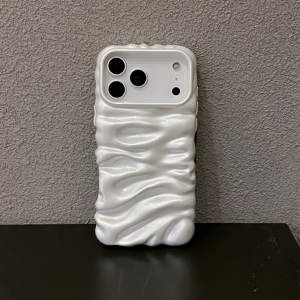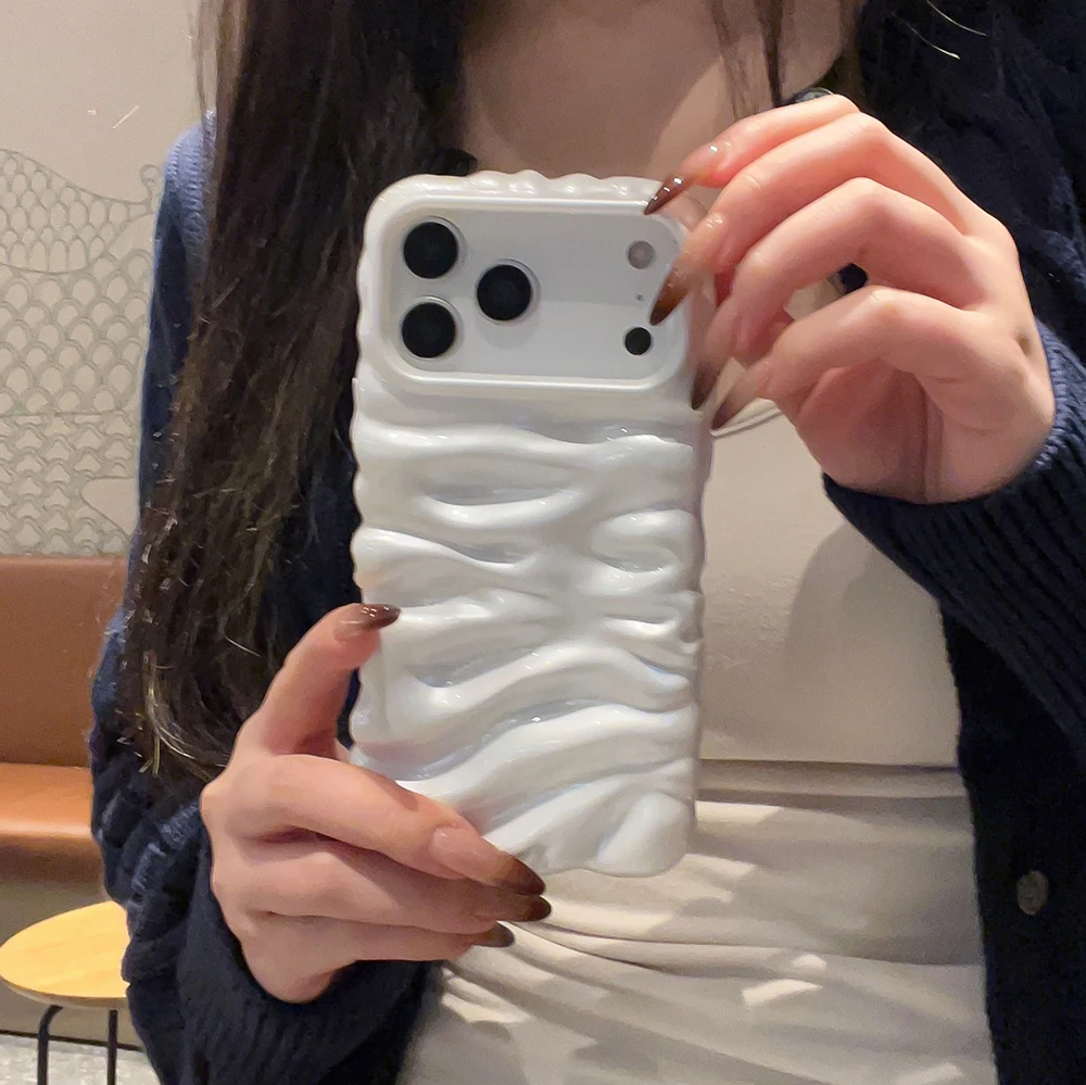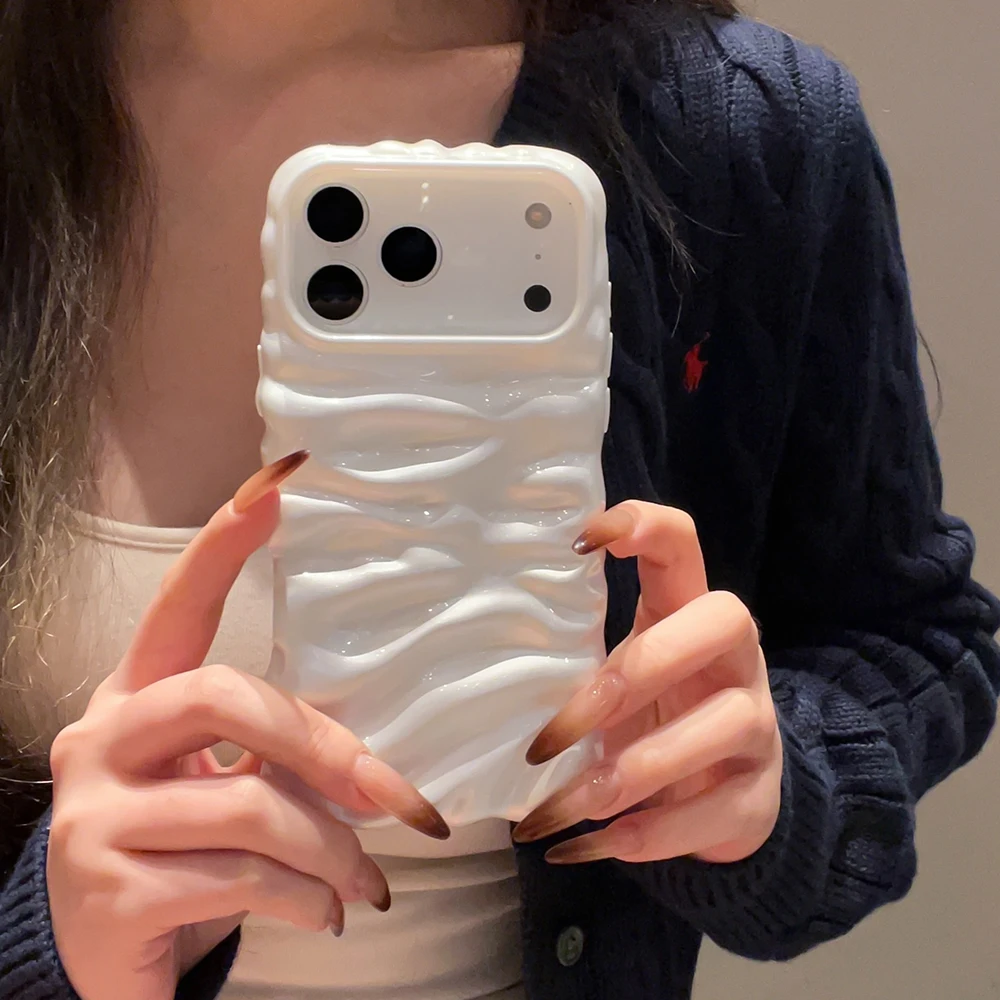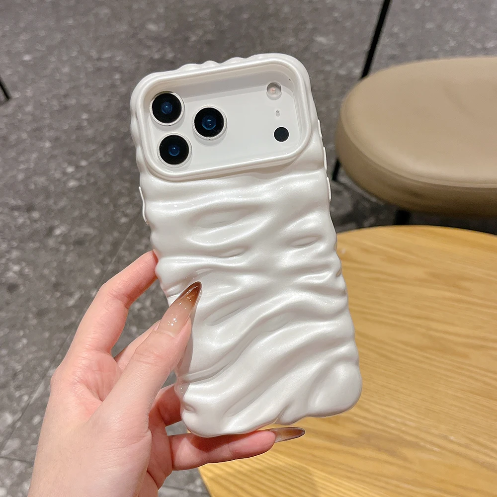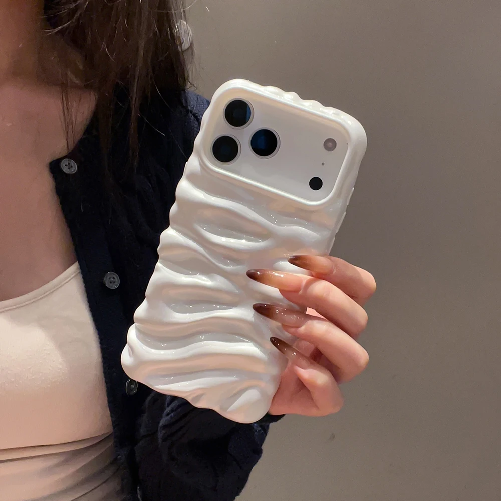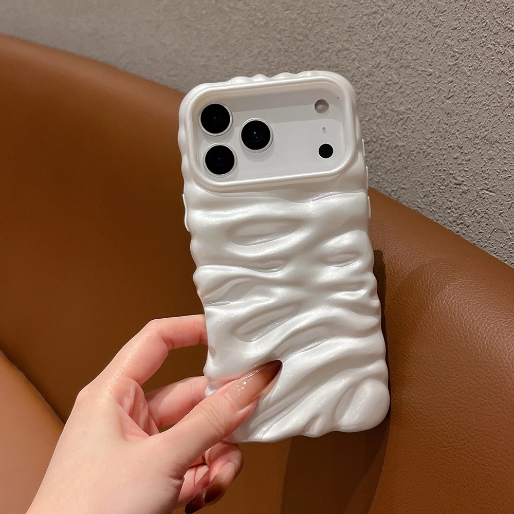 Funda con textura de helado de burbujas 3D blanca perla para iPhone 16 13 14 17 Pro Max 15 Plus, elegante y encantadora funda trasera de teléfono de TPU suave