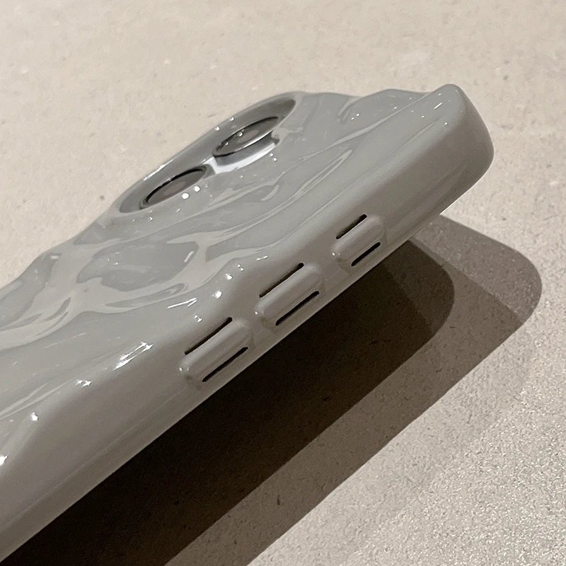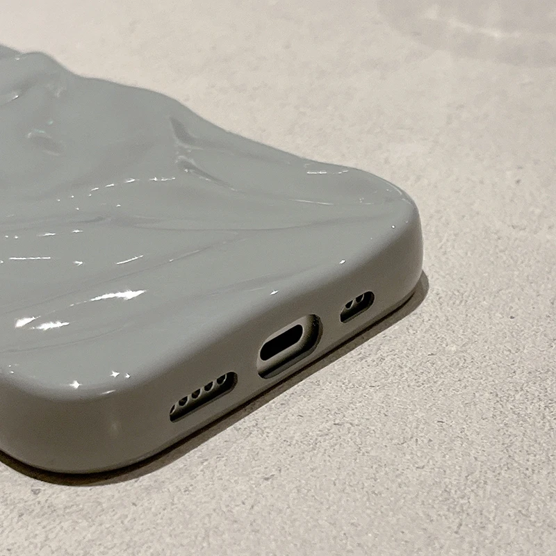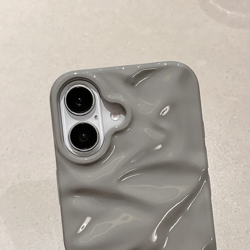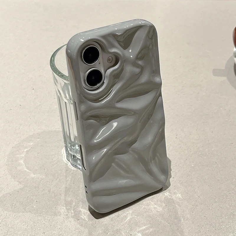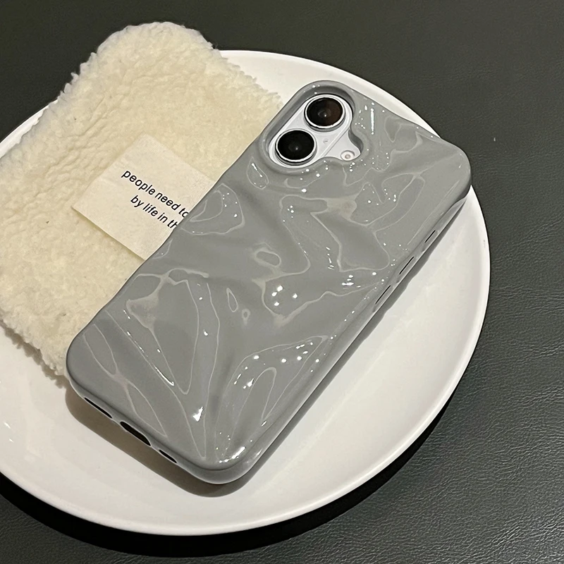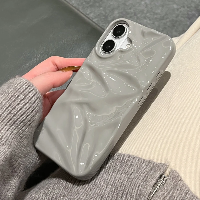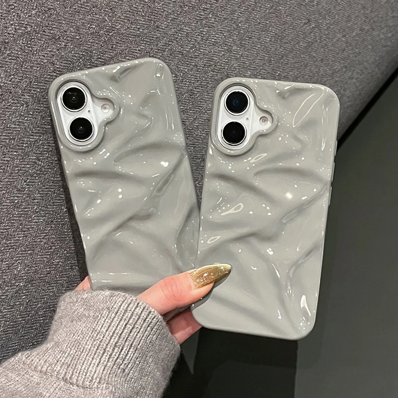 Simple Fashion Glossy Grey 3D Folds Texture Case For iPhone 16 Pro Max 15 13 12 11 14 Plus Shockproof TPU Phone Cover