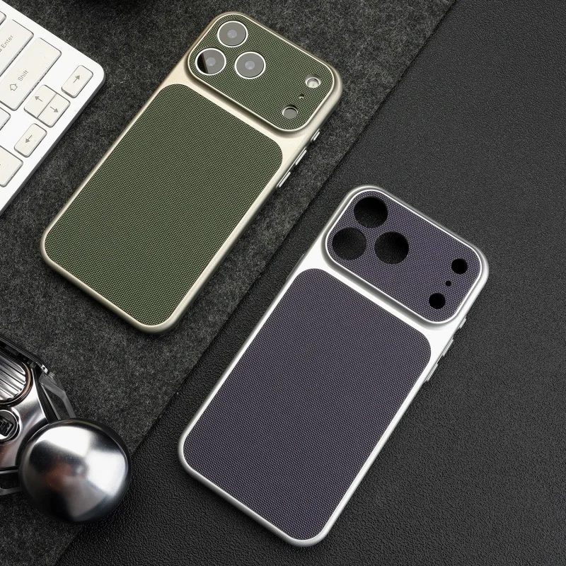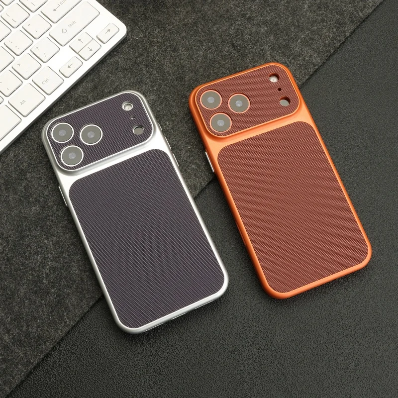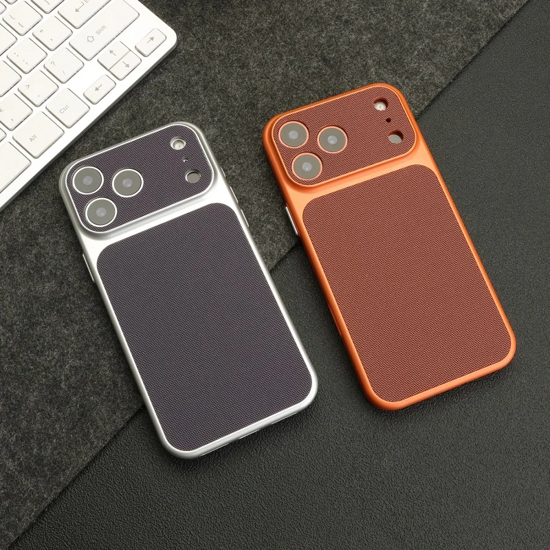 Funda texturizada de cuero tejido Vintage para iPhone 17 Air 16 15 14 13 12 Pro Max, armadura chapada en PC Retro a prueba de golpes, funda dura para teléfono
