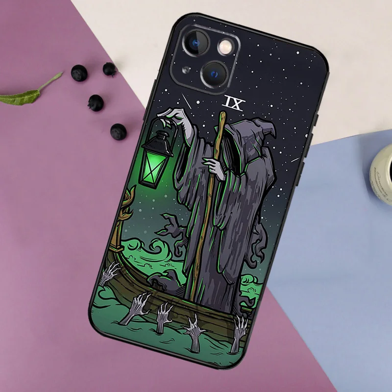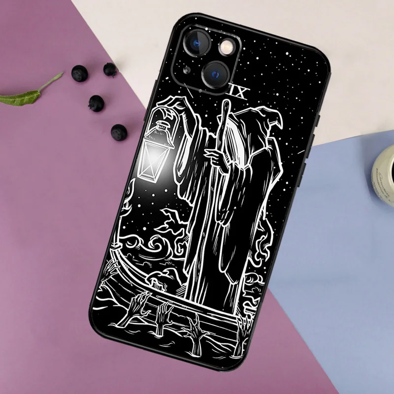 Comprar Funda de The Hermit Tarot Card Grim Reaper para iPhone 16, 15, 14, 13, 12, 11 Pro Max, Mini, X, XR, XS Max, 7, 8 Plus, 2