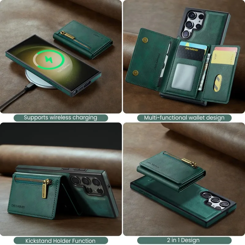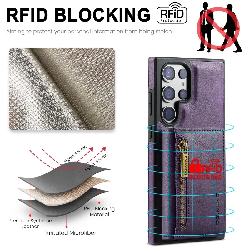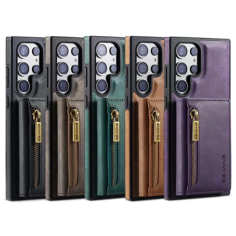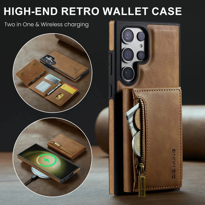 Funda tipo billetera con cremallera RFID de cuero magnético desmontable para Magsafe Samsung Galaxy S24 S21 Ultra S22 Plus S23 Fe funda con soporte de bolsillo