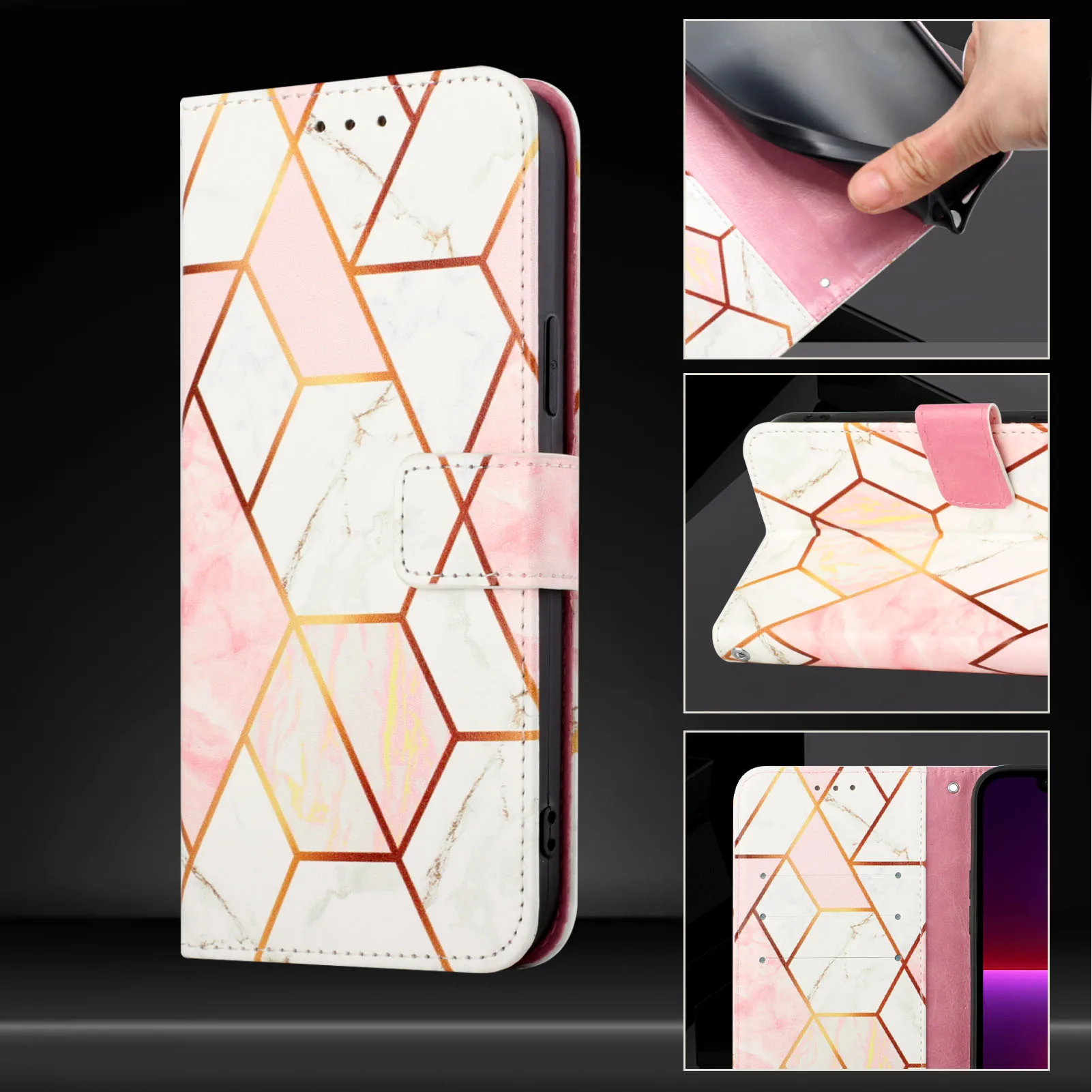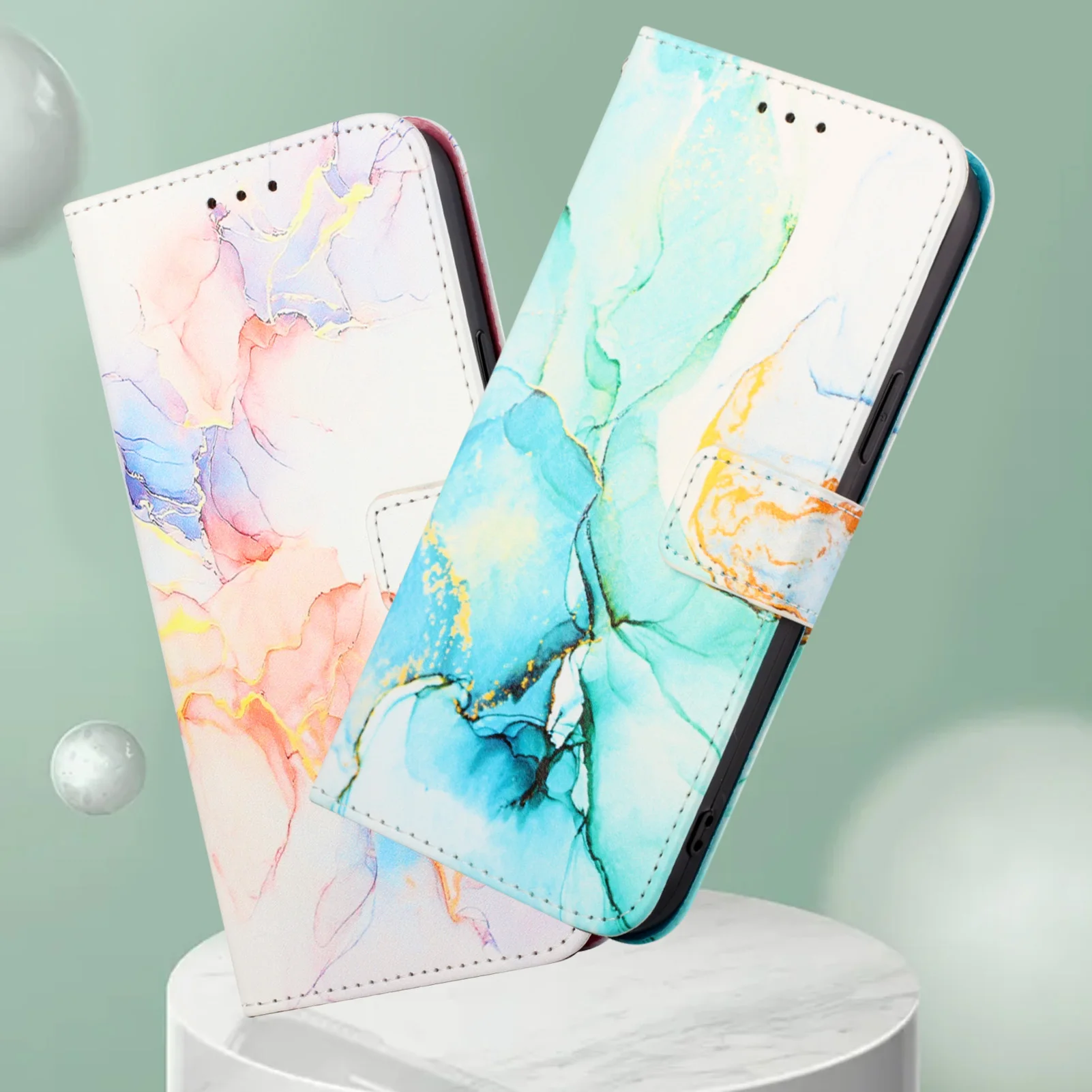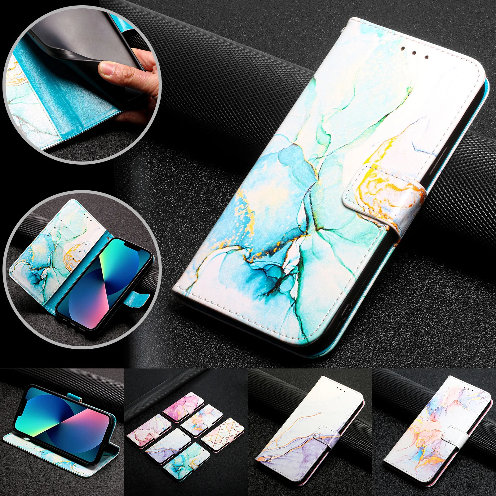 Comprar Funda tipo billetera de cuero con tapa de mármol para iPhone, 13, 12, 11 Pro Max, SE 2020, XR, XS, 6s, 7, 8 Plus