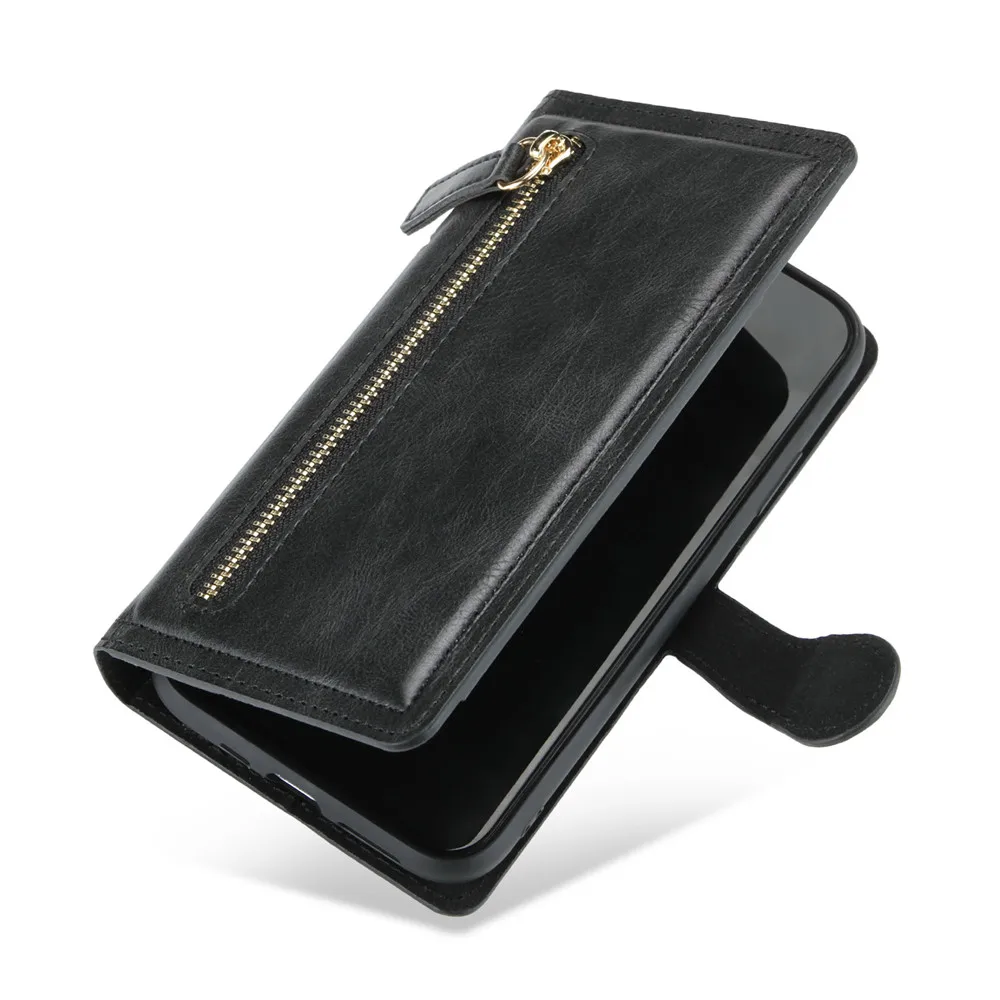 3. 【Diseño de billetera todo en uno】: funda multifuncional + funda para teléfono en uno.Con mini botones, folio flip, incluye tarjetero, bolsillo con cremallera y parte de la carcasa del teléfono, el diseño todo en uno le permite llevar este estuche afuera sin llevar su billetera voluminosa, este estuche es adecuado para mujeres y hombres.Será su compañero perfecto cuando vaya de compras, salga a caminar, viaje de negocios, viaje corto o vaya a trabajar.