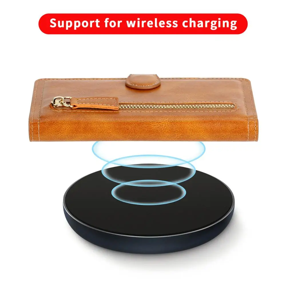 3. 【Diseño de billetera todo en uno】: funda multifuncional + funda para teléfono en uno.Con mini botones, folio flip, incluye tarjetero, bolsillo con cremallera y parte de la carcasa del teléfono, el diseño todo en uno le permite llevar este estuche afuera sin llevar su billetera voluminosa, este estuche es adecuado para mujeres y hombres.Será su compañero perfecto cuando vaya de compras, salga a caminar, viaje de negocios, viaje corto o vaya a trabajar.