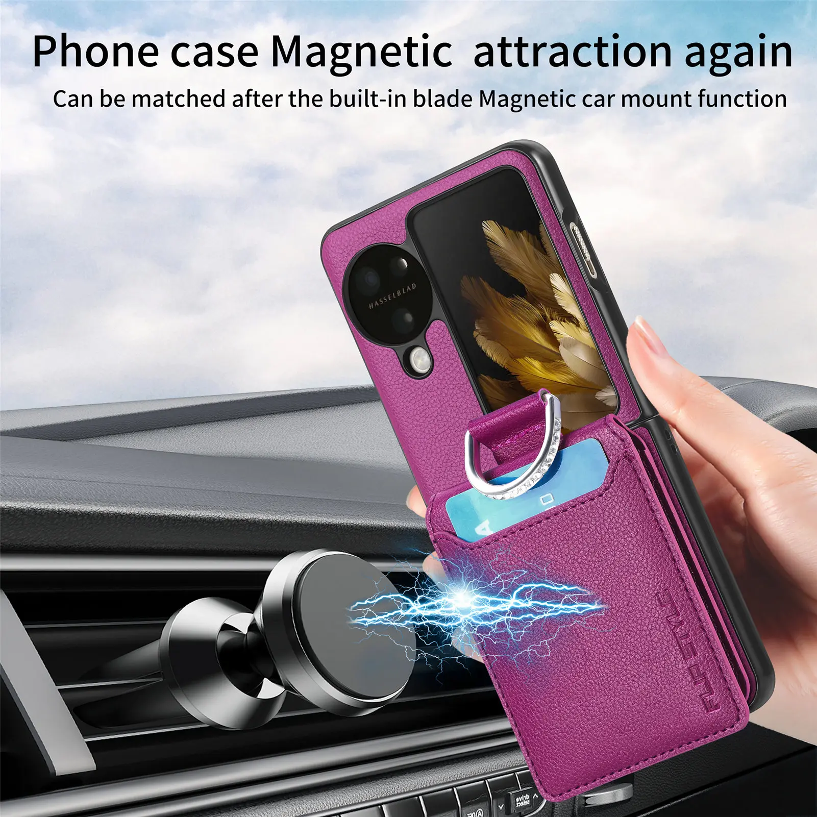 Funda tipo billetera Solt con soporte para anillo de dedo para OPPO Find N2 Flip N3Flip N3 5G, funda Vertical magnética para tarjetas, funda anticaída