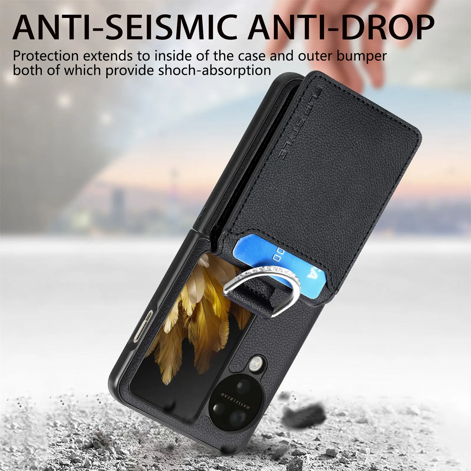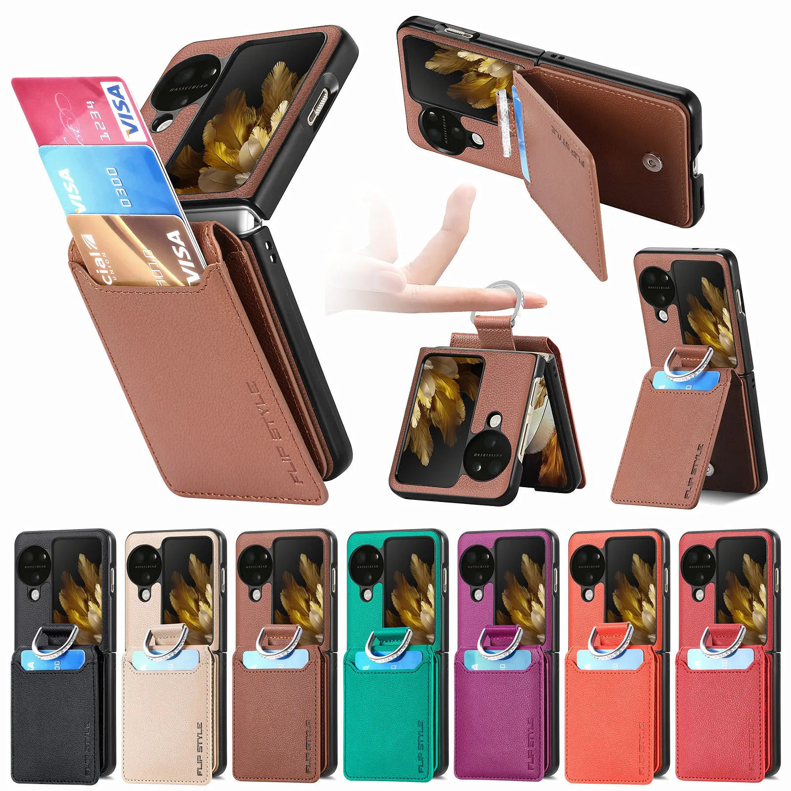 Comprar Funda tipo billetera Solt con soporte para anillo de dedo para OPPO Find N2 Flip N3Flip N3 5G, bolsa para tarjetas Vertical magnética, funda anticaída