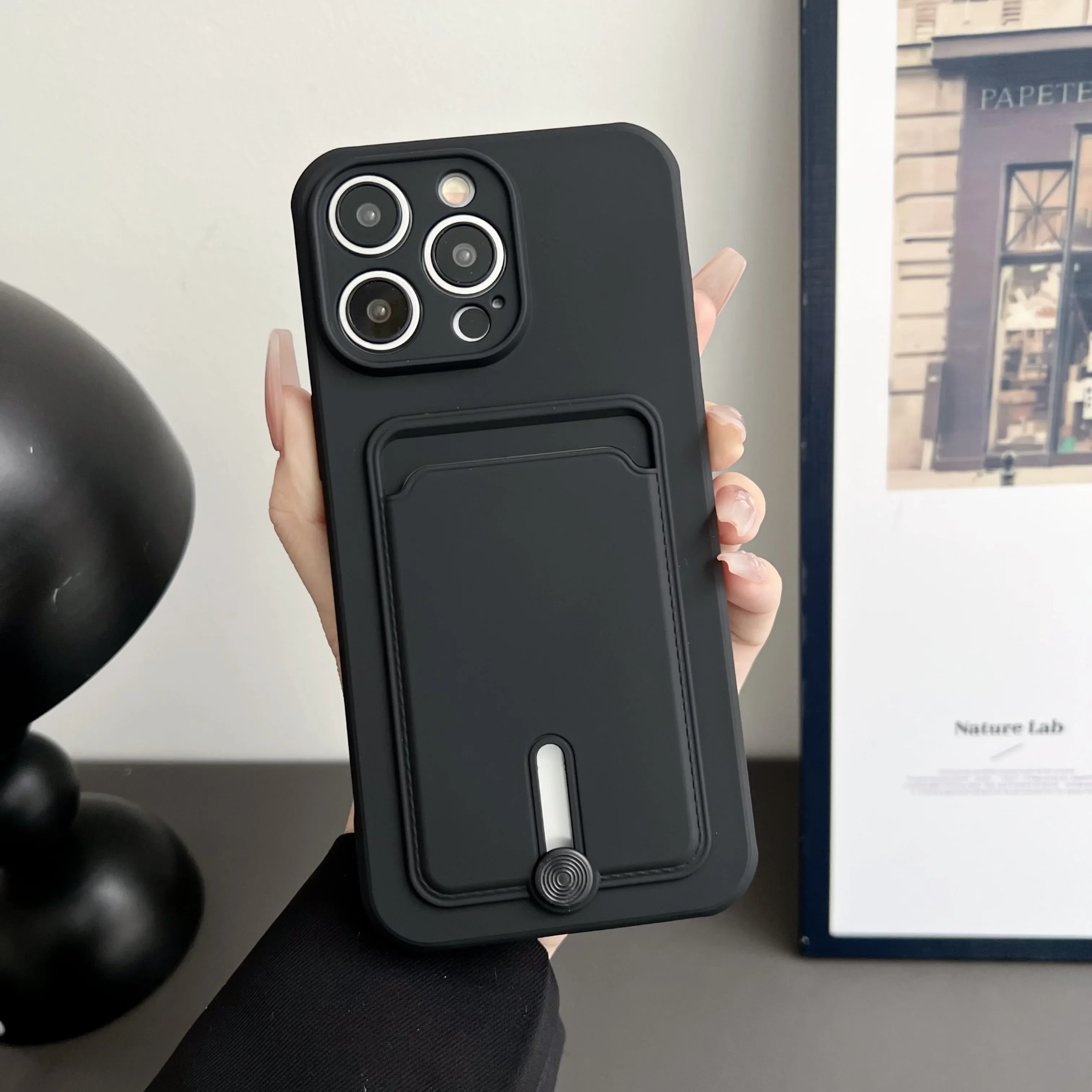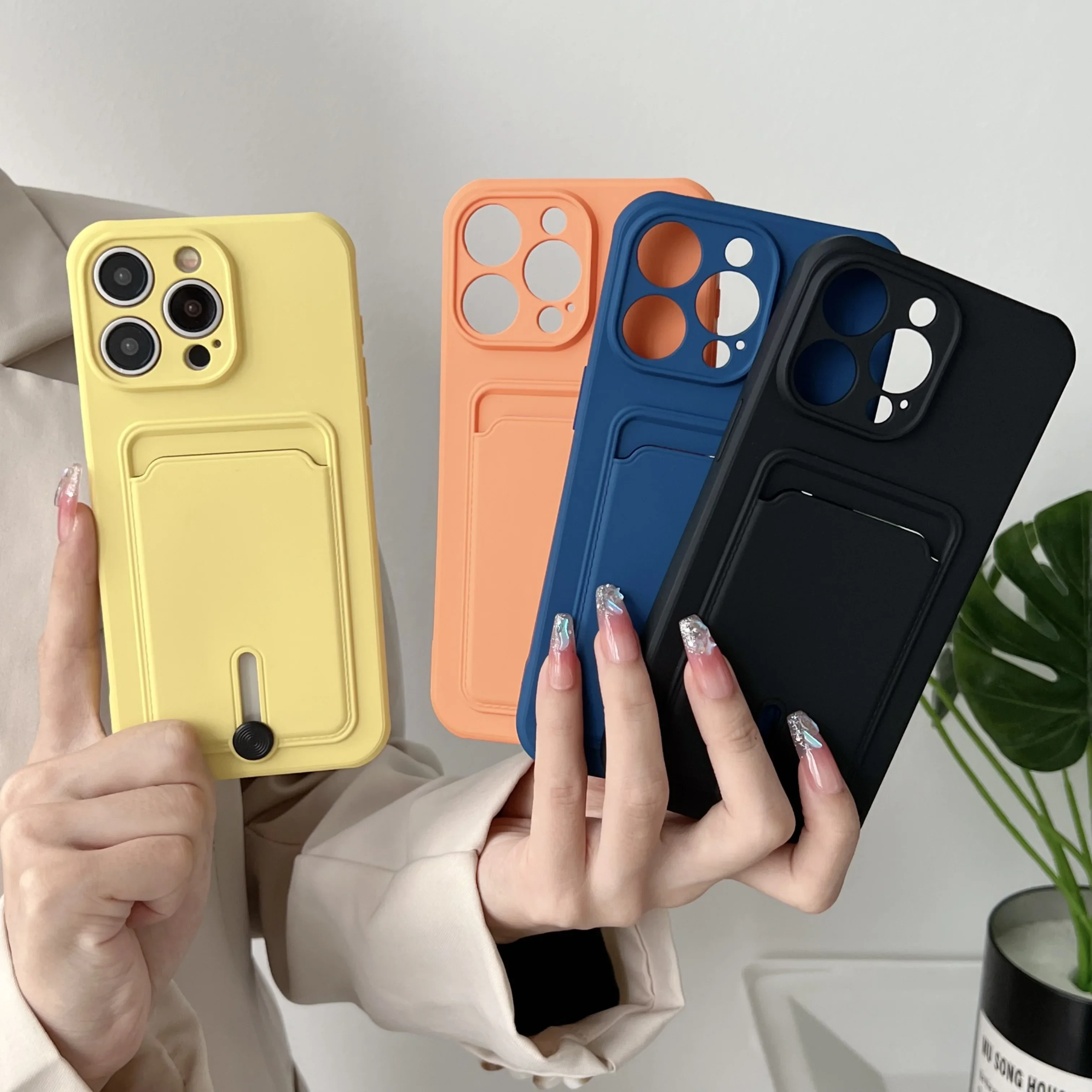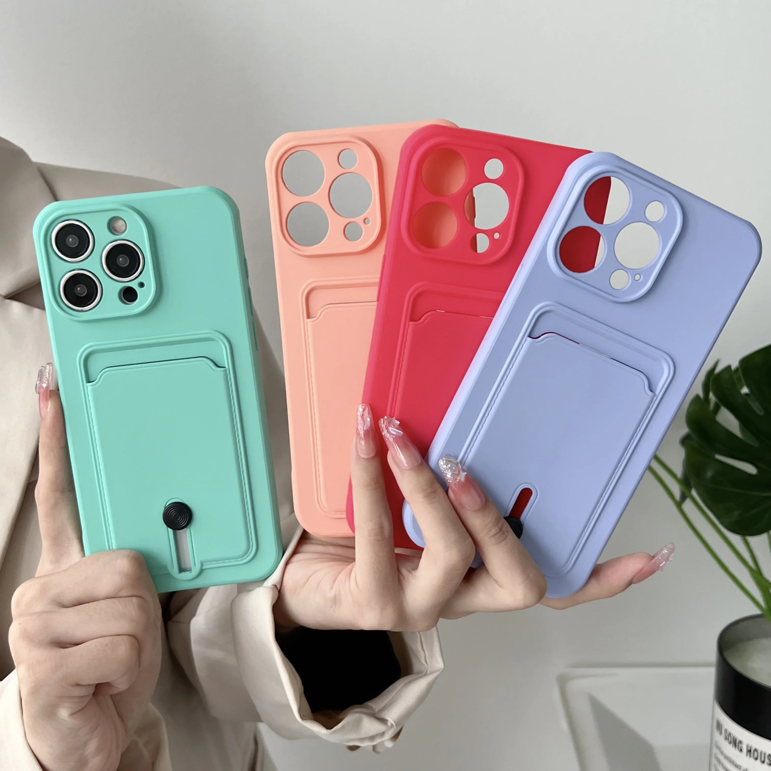 Push Card Bag Slot Holder Wallet Case para iPhone 15 Pro Max 14 11 12 13 Plus 7 8 SE 2022 Funda de silicona mate suave a prueba de golpes