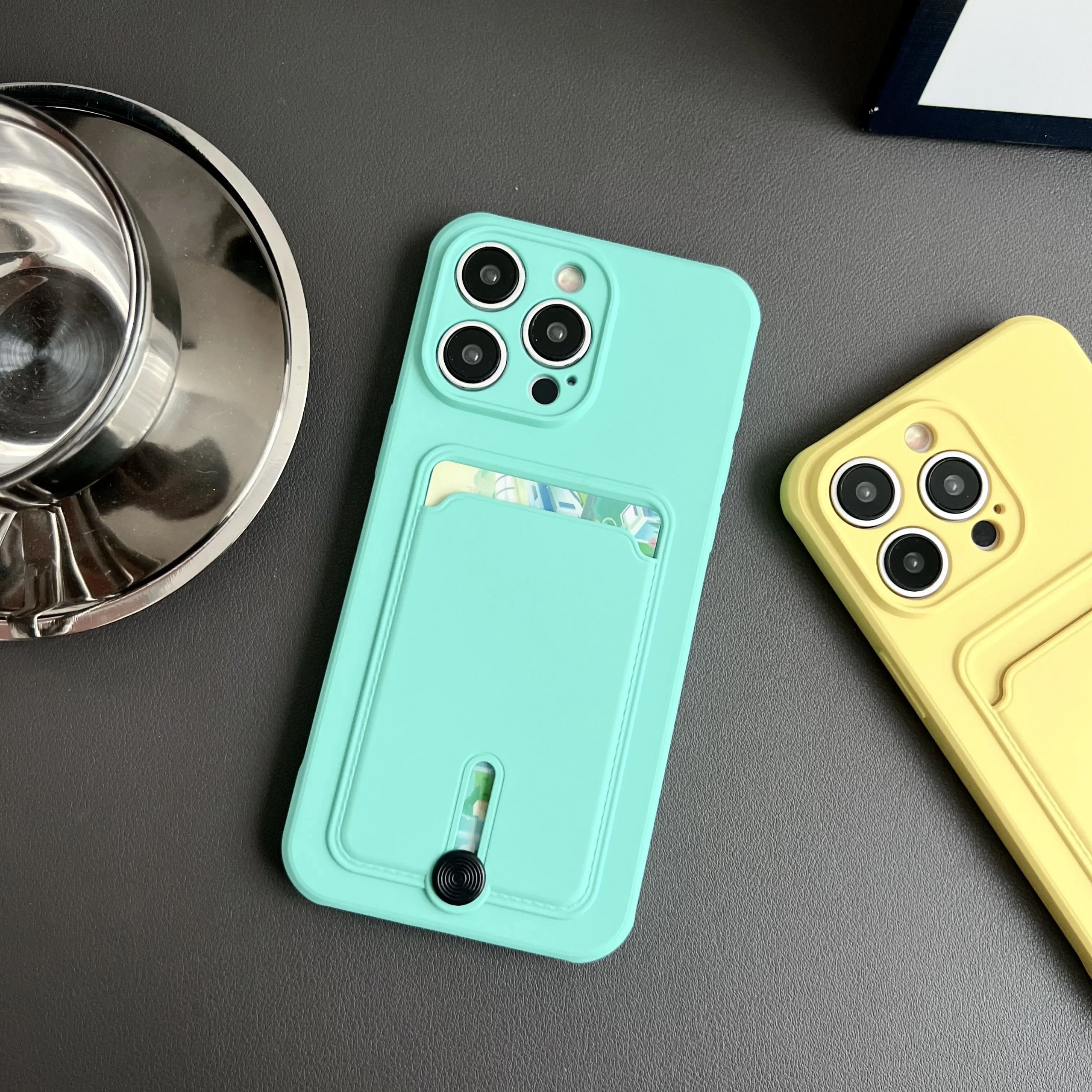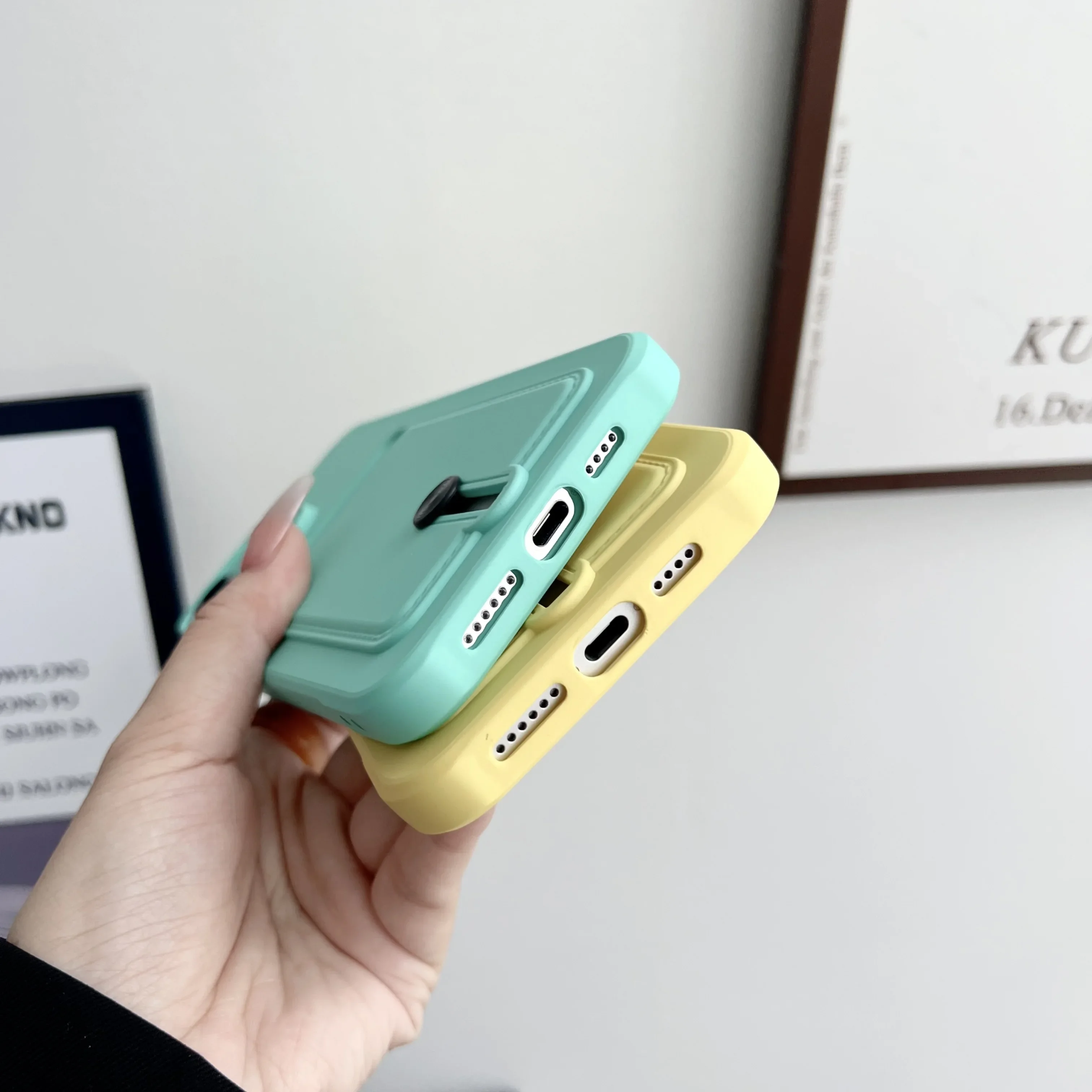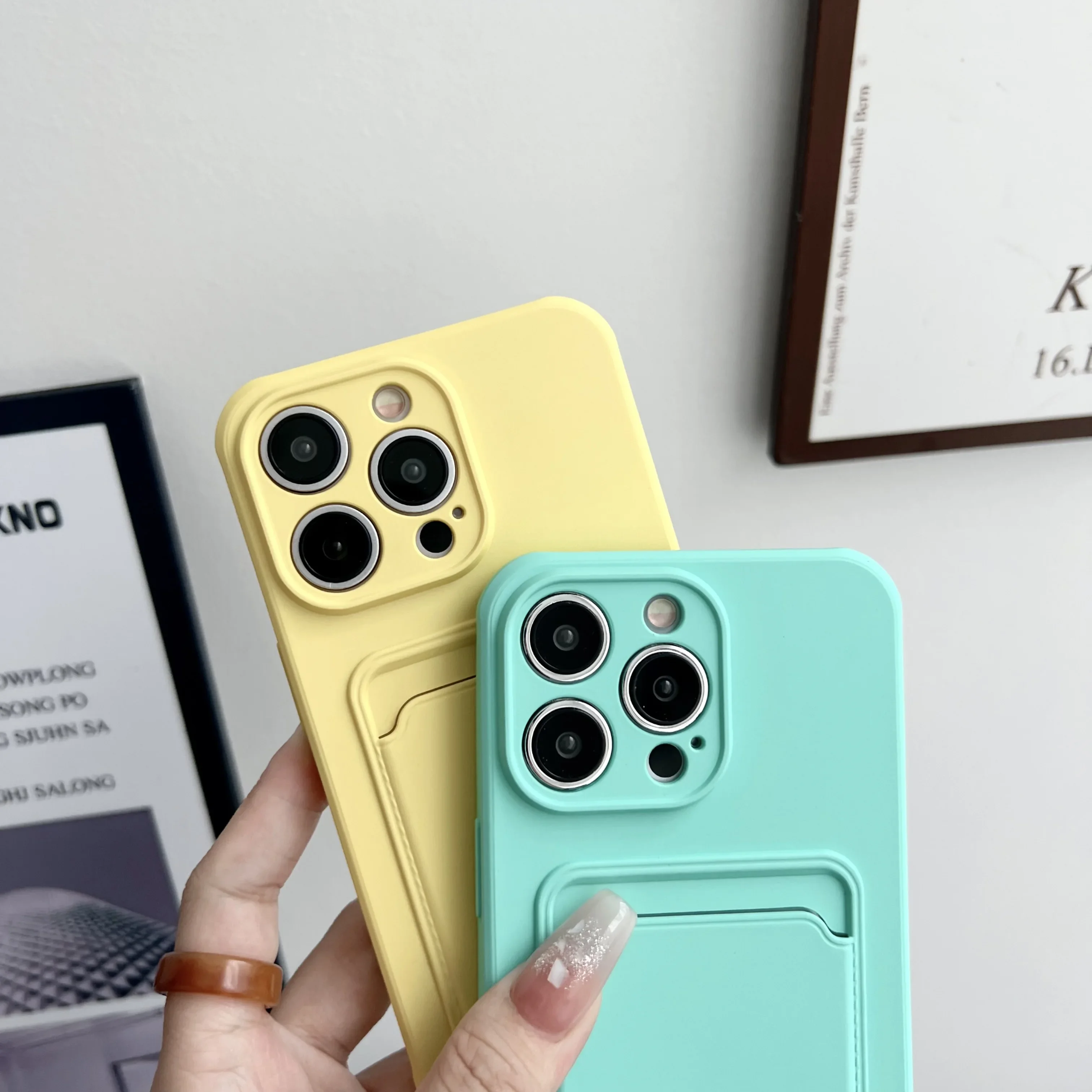Push Card Bag Slot Holder Wallet Case para iPhone 15 Pro Max 14 11 12 13 Plus 7 8 SE 2022 Funda de silicona mate suave a prueba de golpes