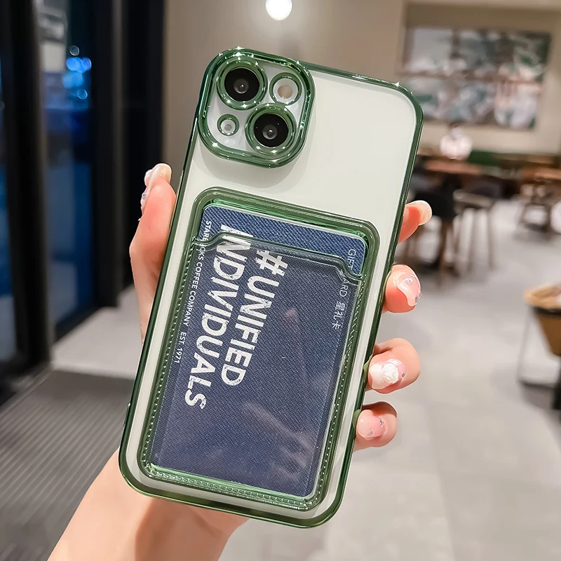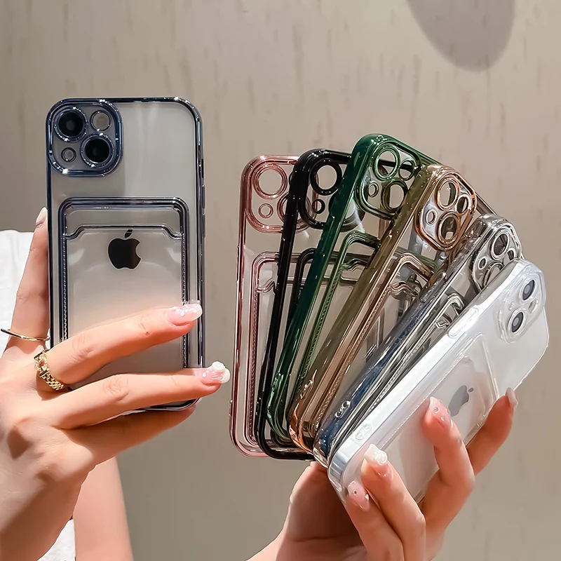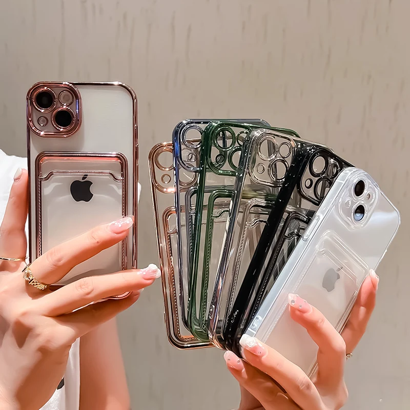 Funda tipo billetera con tarjetero transparente galvanizado para iPhone 13 11 12 14 15 Pro Max 14 Plus, funda de silicona a prueba de golpes con bolsillo para fotos