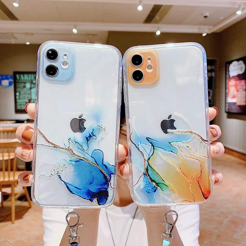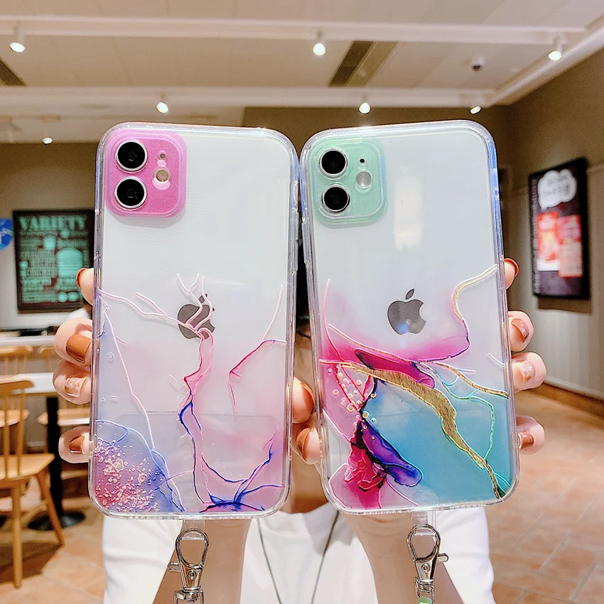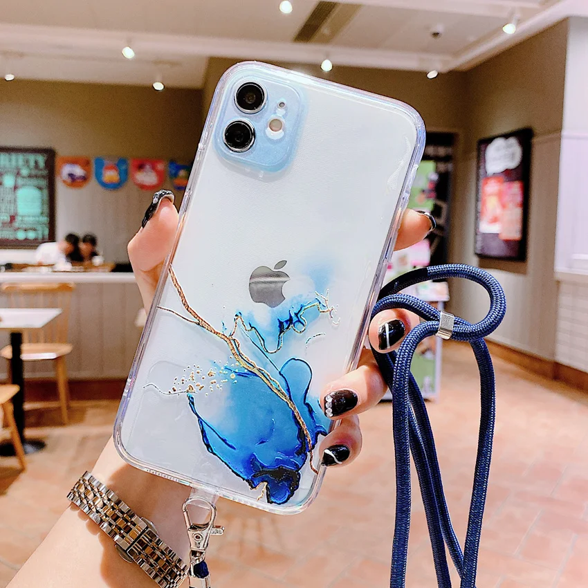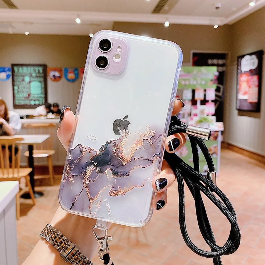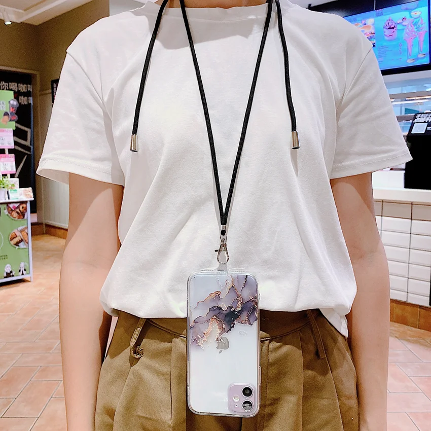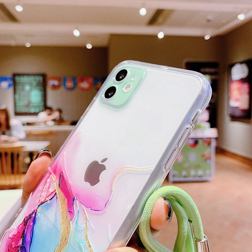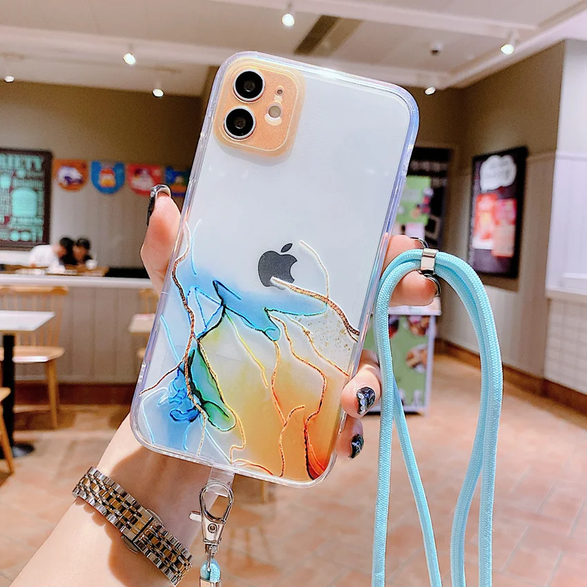 Funda de TPU con correa para el hombro para iPhone, carcasa trasera suave con collar para modelos 12 Mini, 11 Pro, XR, XS Max, X, 7, 8, 6S, 6 Plus, SE, 2020