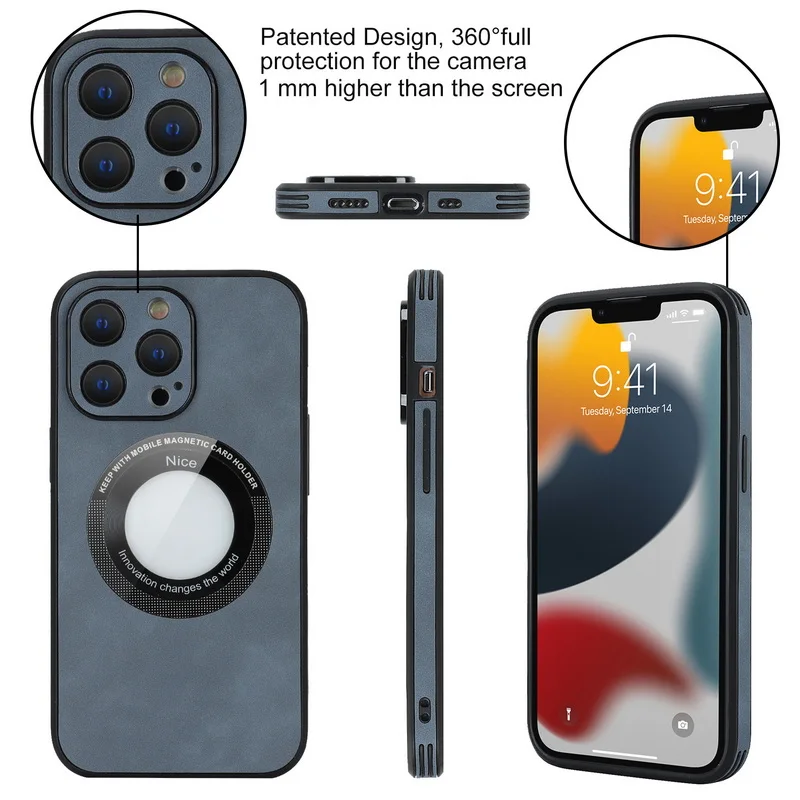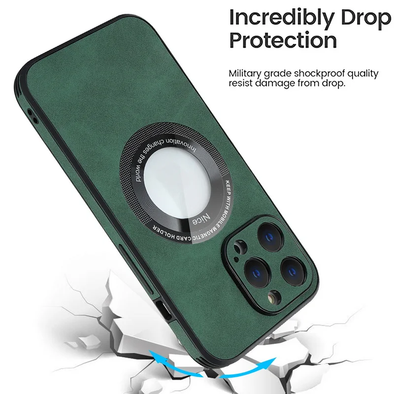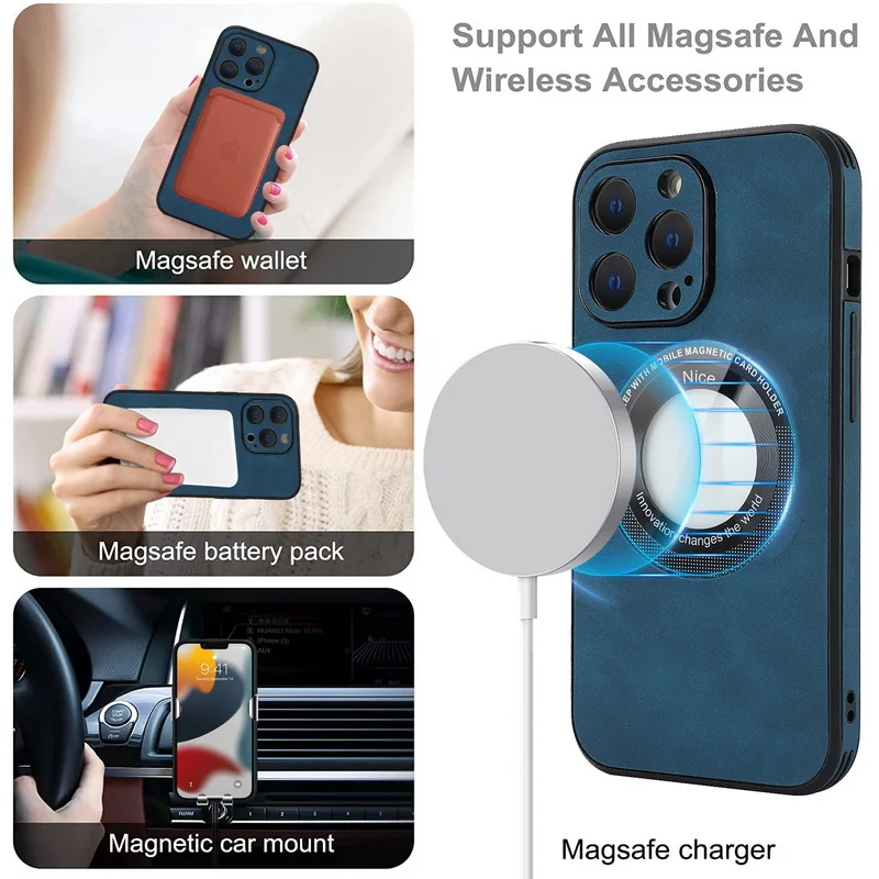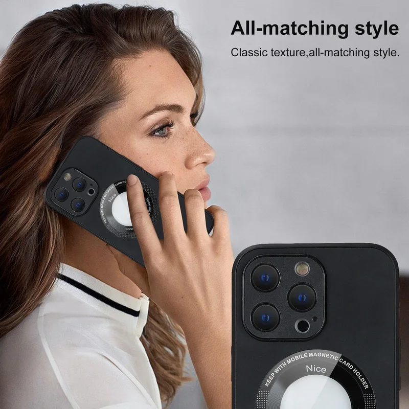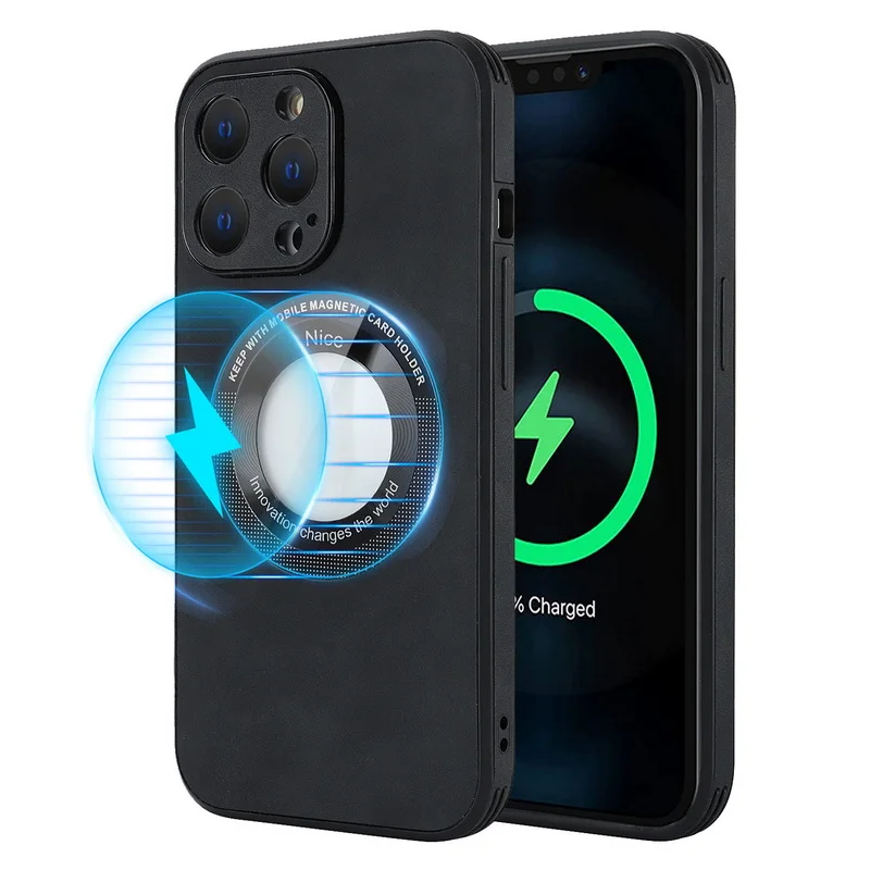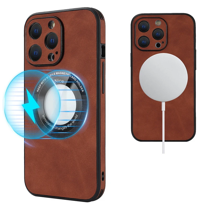 Comprar Funda de TPU híbrida de cuero de lujo para iPhone 14 13 12 Pro Max 11, protección de lente de carga inalámbrica magnética, cubierta de Color sólido