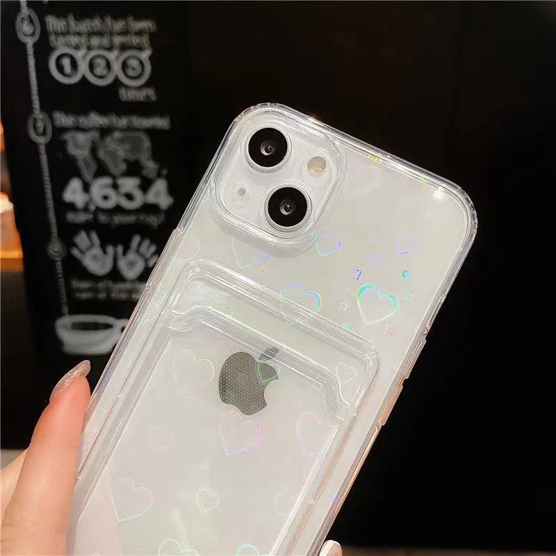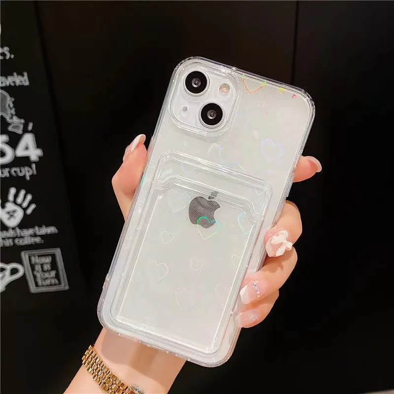 Comprar Funda de TPU transparente con láser de corazón de amor para Redmi Note 9 9S 9A 9C 9T Note 10s 10 Pro 11S 8 Poco X3 X4 M4 F3 Mi 11 Lite 11T ranura para tarjeta